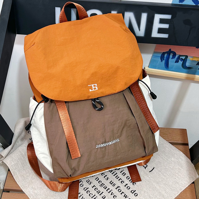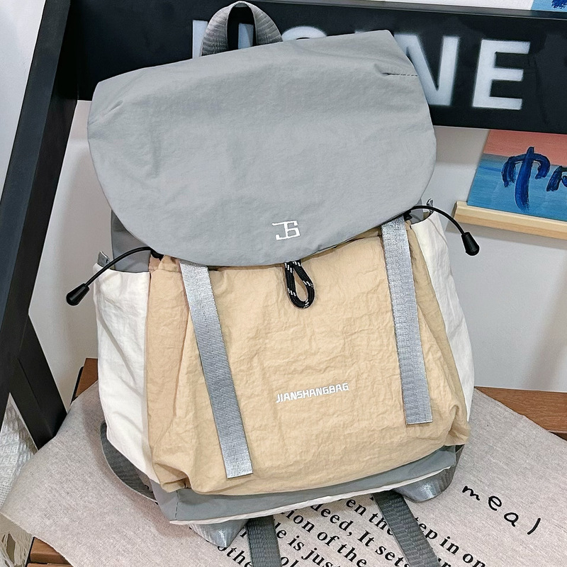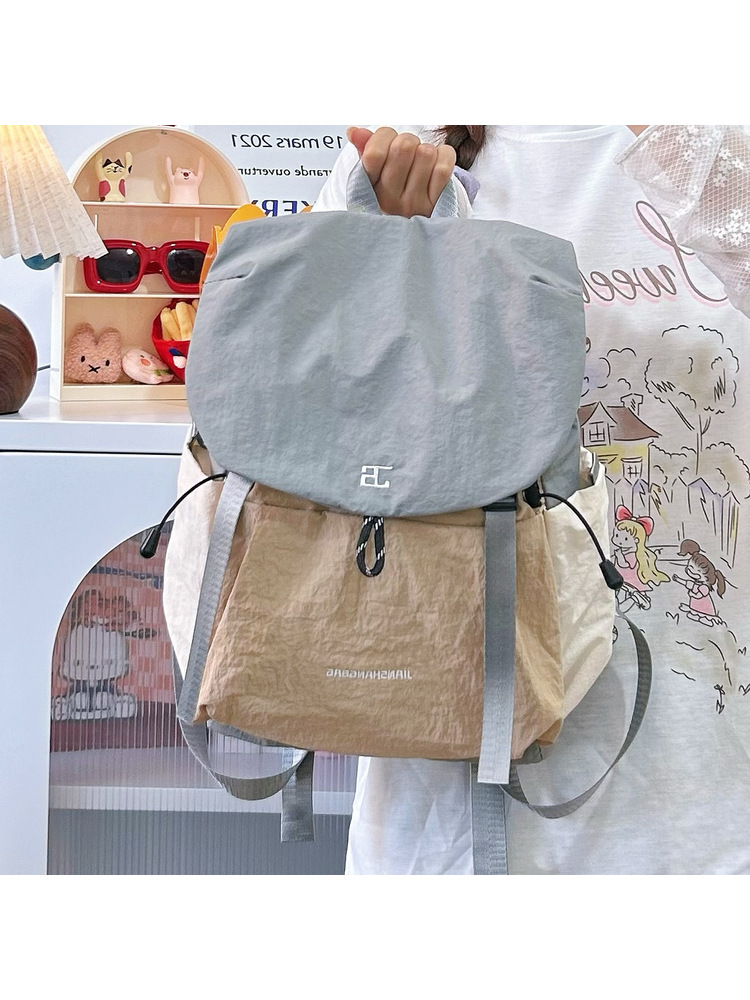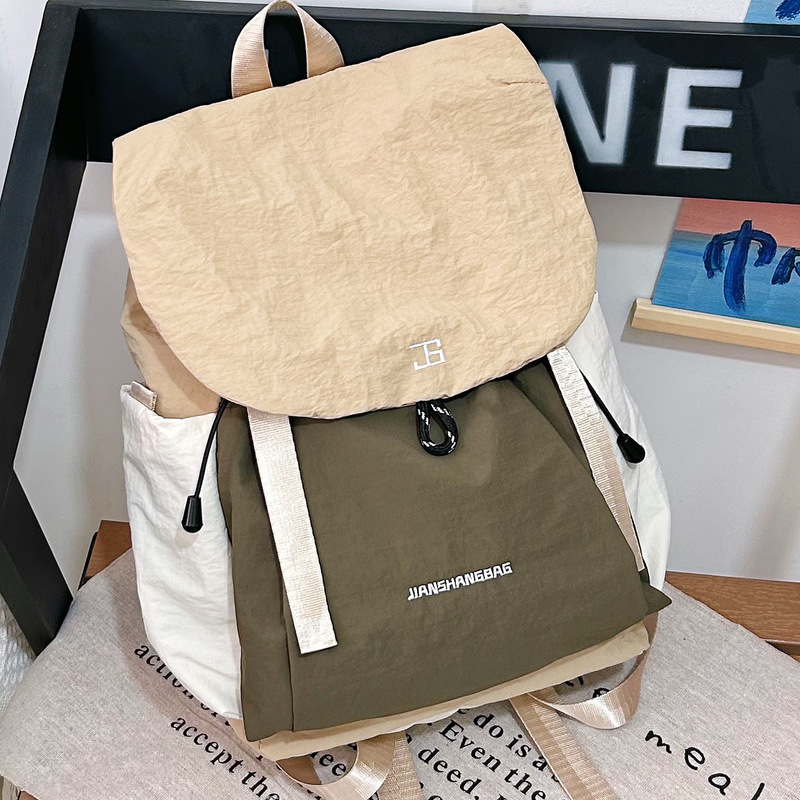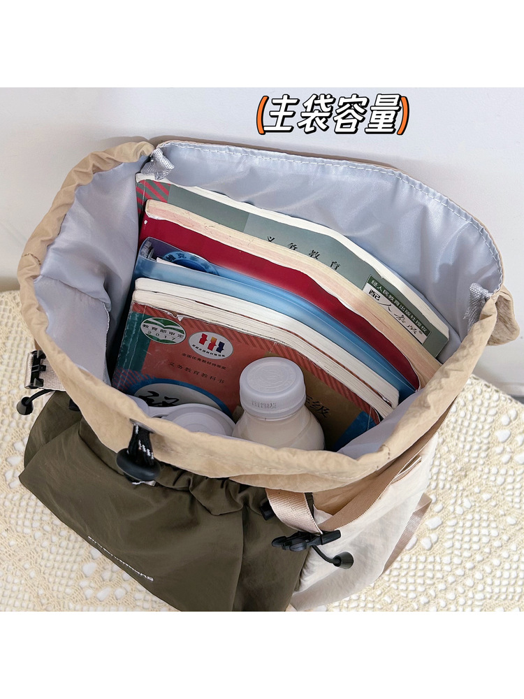 국경 간 새로운 경량 여행 배낭 트렌디 한 대비 색상 캡이있는 드로스트링 배낭 여성용 대용량 캐주얼 등산 가방스토어 가기