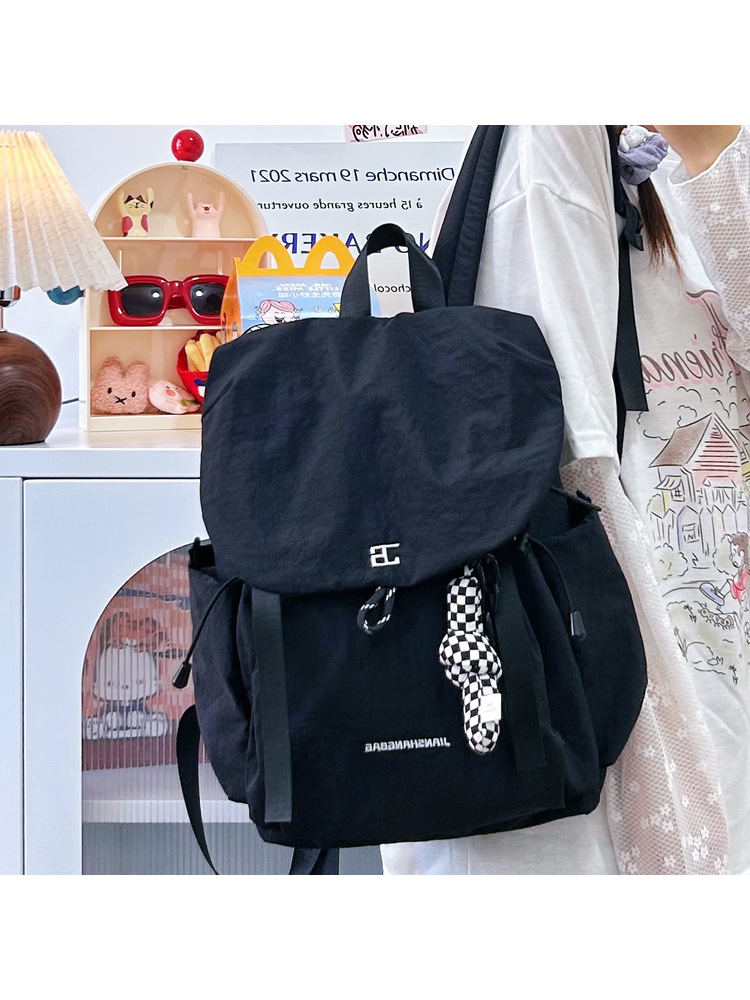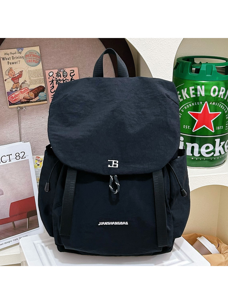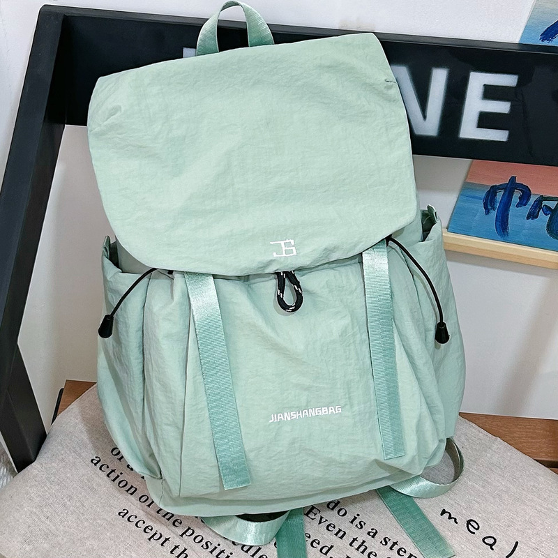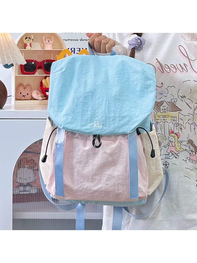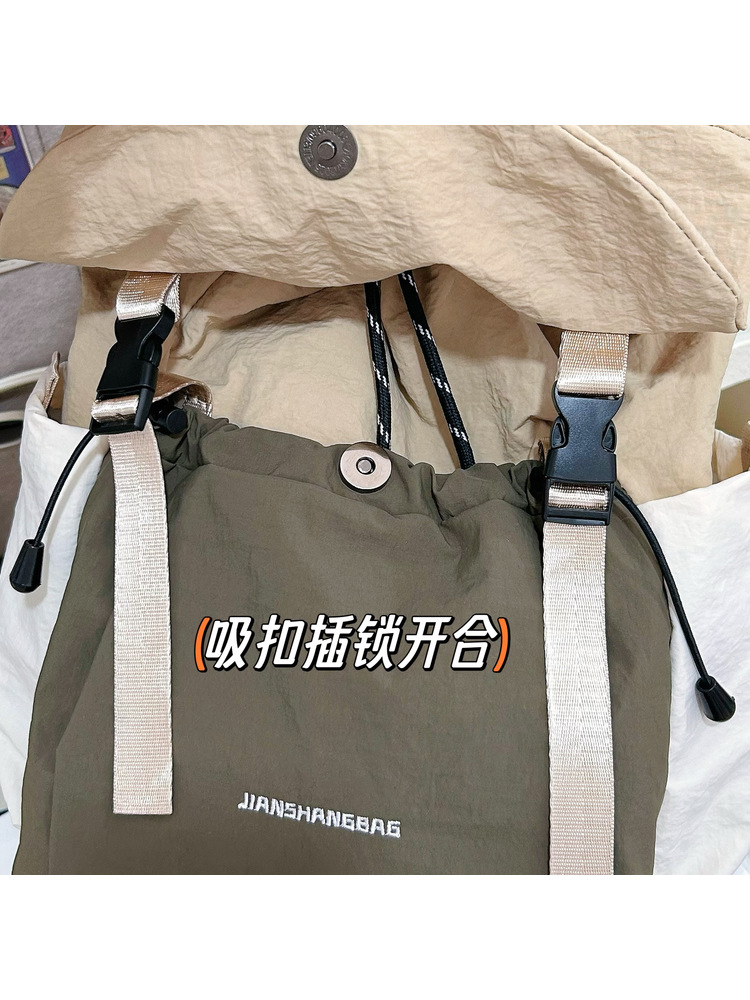 국경 간 새로운 경량 여행 배낭 트렌디 한 대비 색상 캡이있는 드로스트링 배낭 여성용 대용량 캐주얼 등산 가방스토어 가기