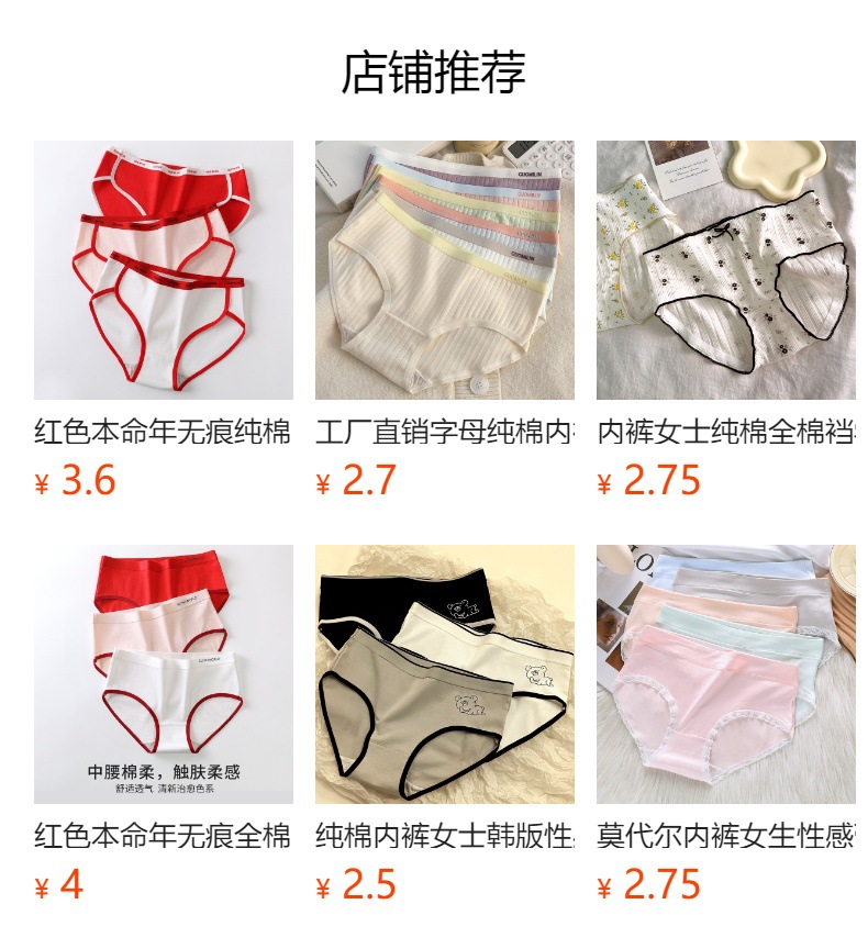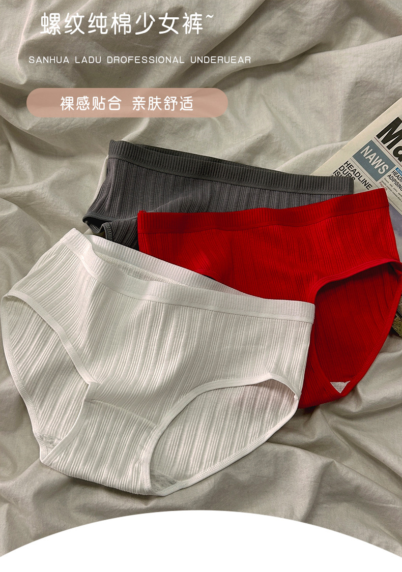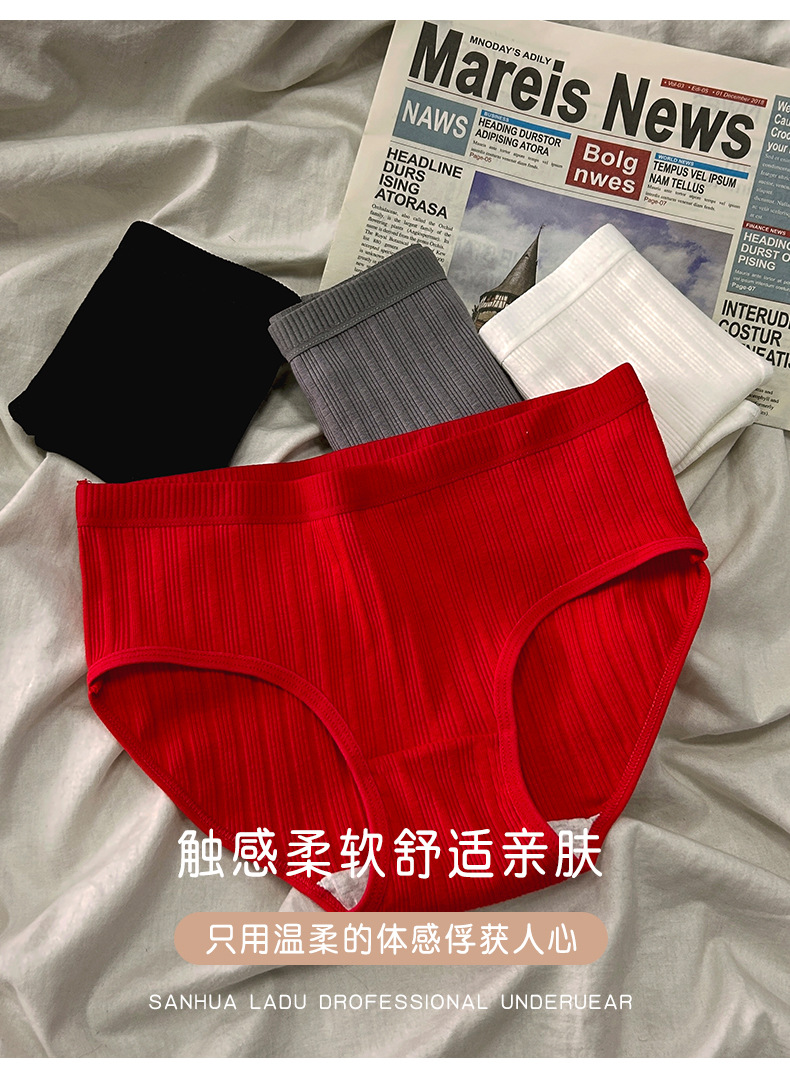 생년의 해에 입는 빨간색 순면 여성용 속옷, 학생용 일본식 중간 허리 심플 통기성 소녀용 대형 삼각팬티스토어 가기