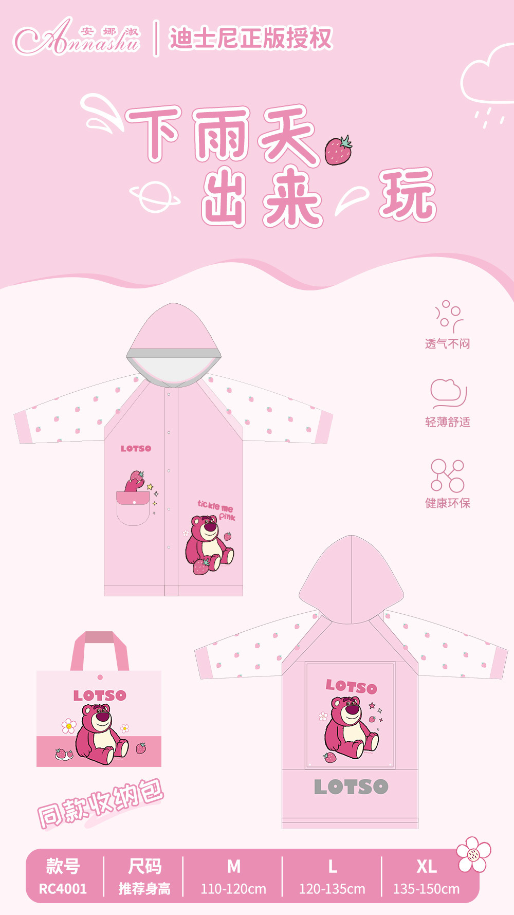 정품 딸기 베어 스틸 웰 비옷 빅 햇 브림 방수 의상 가방 학생들을위한 야외 전신 방수 판초스토어 가기