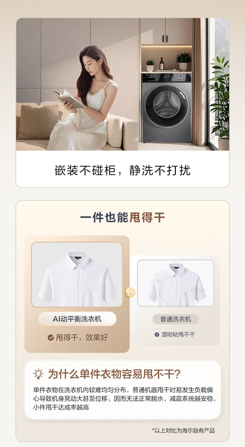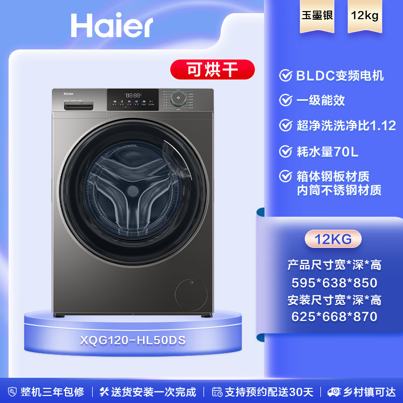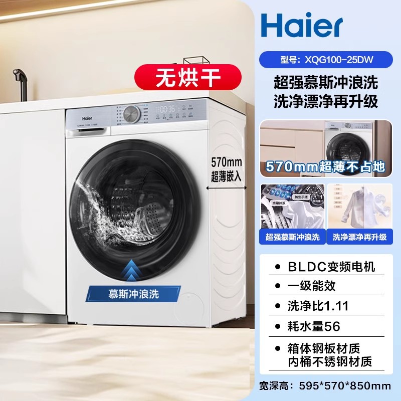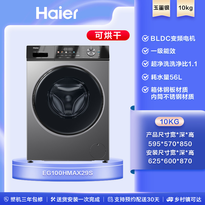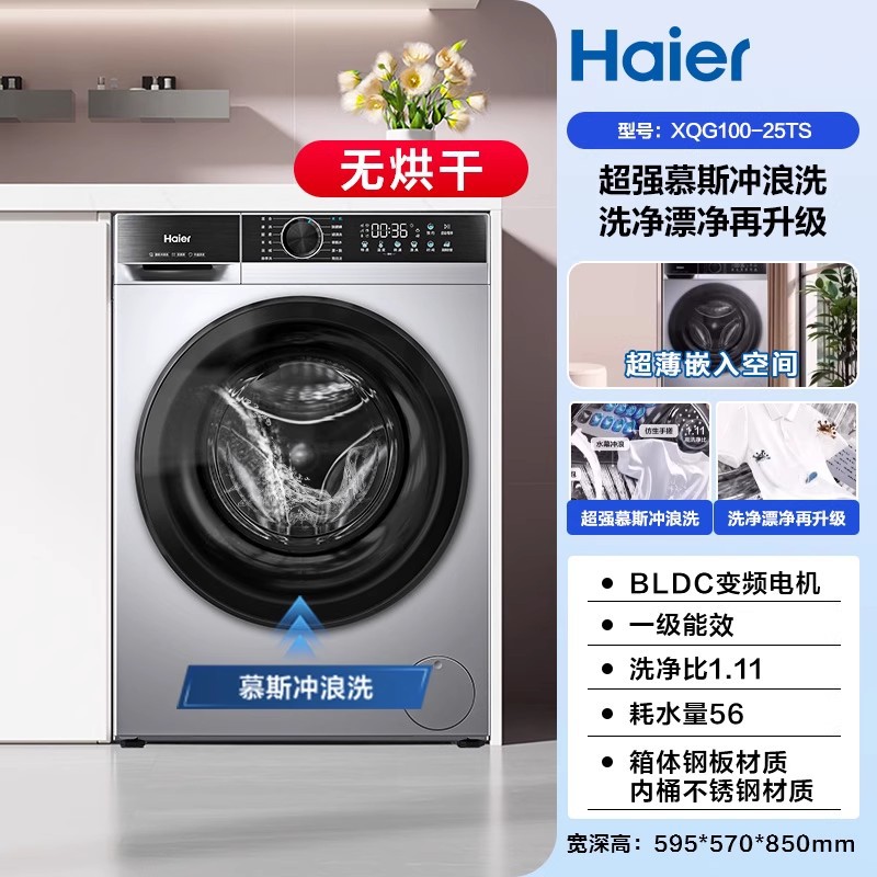 엄선된-하이얼 드럼세탁기 초박형 전자동 10kg 대용량 가정용 1급 에너지 절약 살균스토어 가기