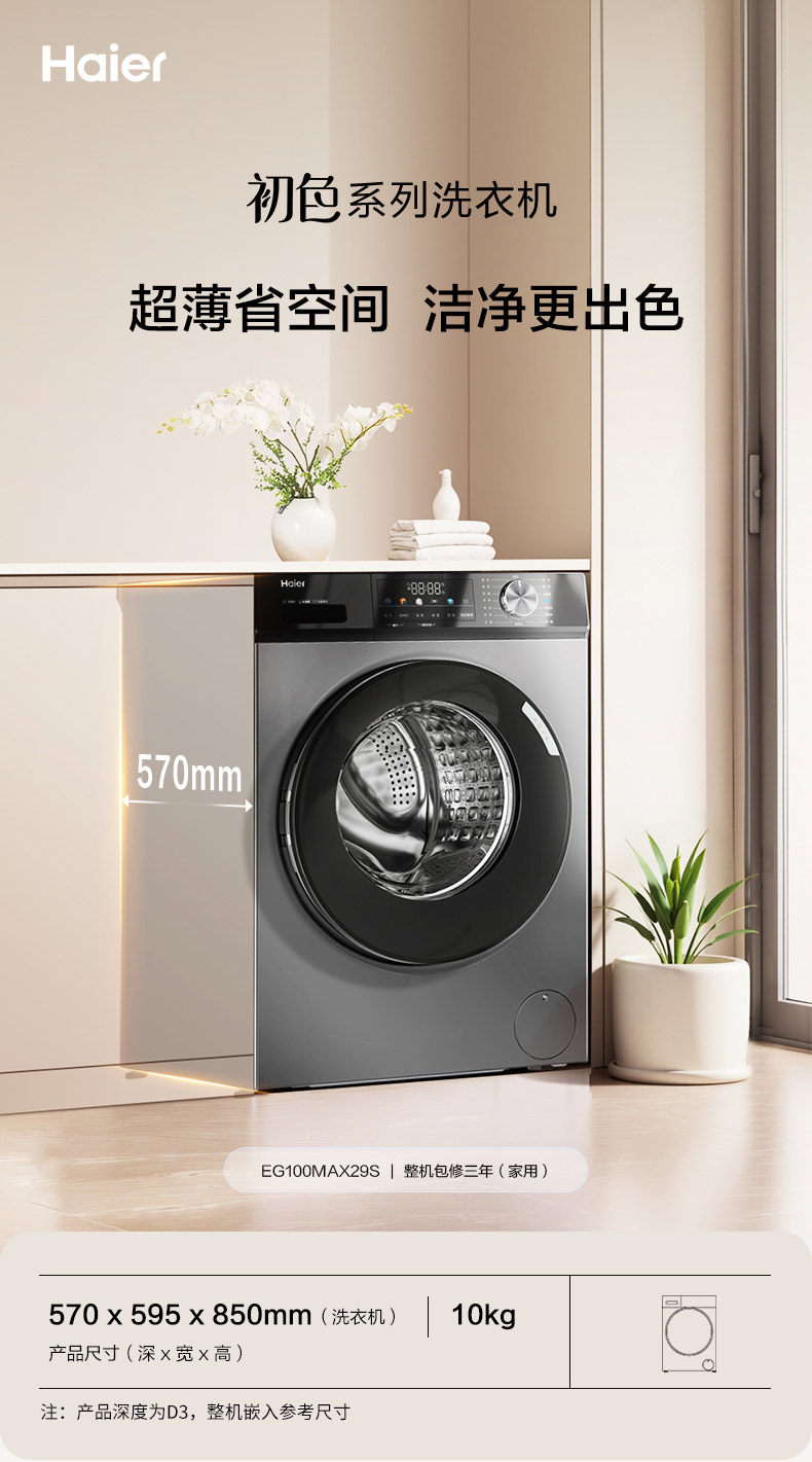 엄선된-하이얼 드럼세탁기 초박형 전자동 10kg 대용량 가정용 1급 에너지 절약 살균