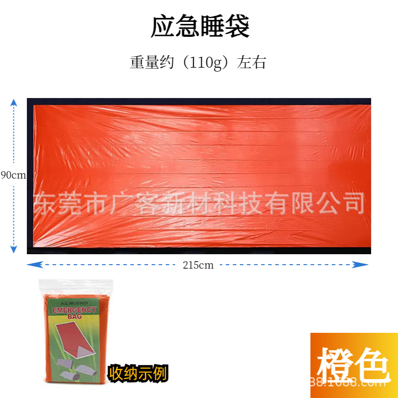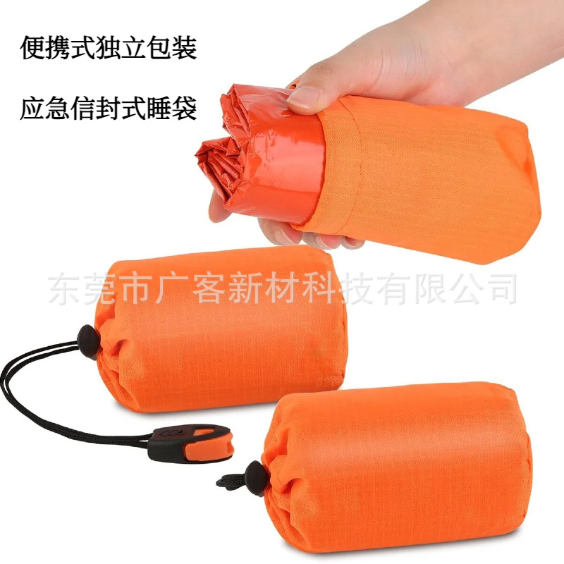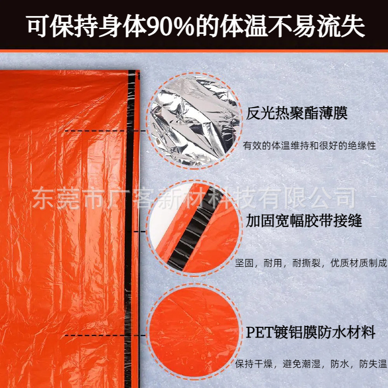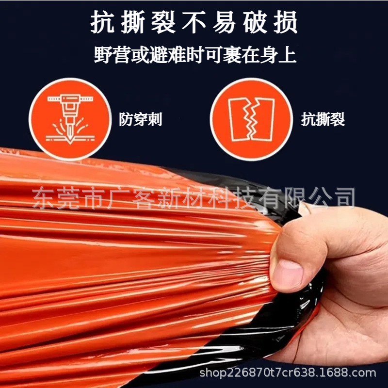 국경 간 야외 열 손실 방지 접착제 침낭 PE 알루미늄 필름 스포츠 응급 처치 텐트 따뜻한 오렌지 열 프레스 비상 침낭