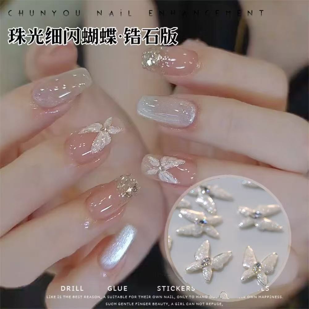 인터넷 연예인 진주 빛 고급 반짝이 나비 합금 네일 아트 액세서리 가을, 겨울 새로운 흰색 절묘한 다이아몬드 럭셔리 네일 액세서리