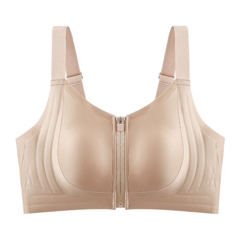 여름용 여성용 룬통 스타일 마이크로 원 풀 얇은 가슴 리프팅 리퀴드 파우더 속옷 얇은 앞면 버클 지퍼 리프팅 브라