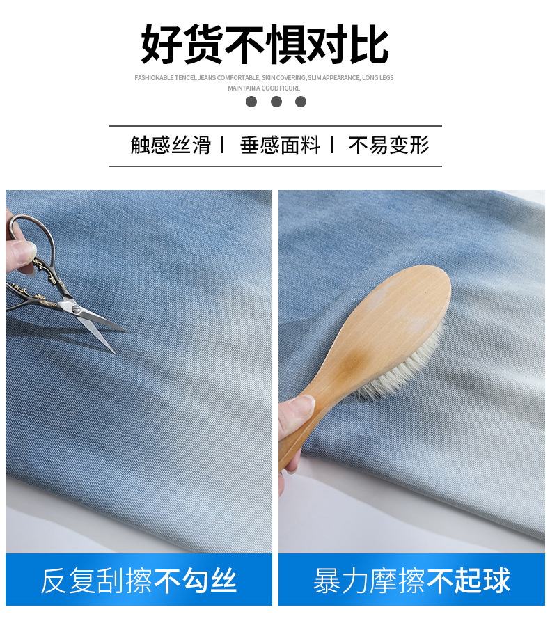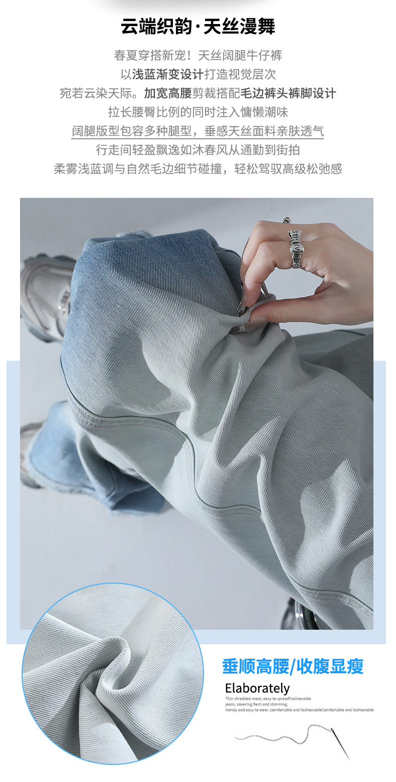 5599 텐셀 그라데이션 라이트 블루 와이드 레그 청바지 여성 여름 로우 엣지 디자인 하이 웨이스트 드레이프 루즈 팬츠스토어 가기
