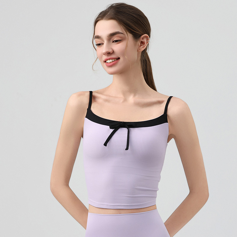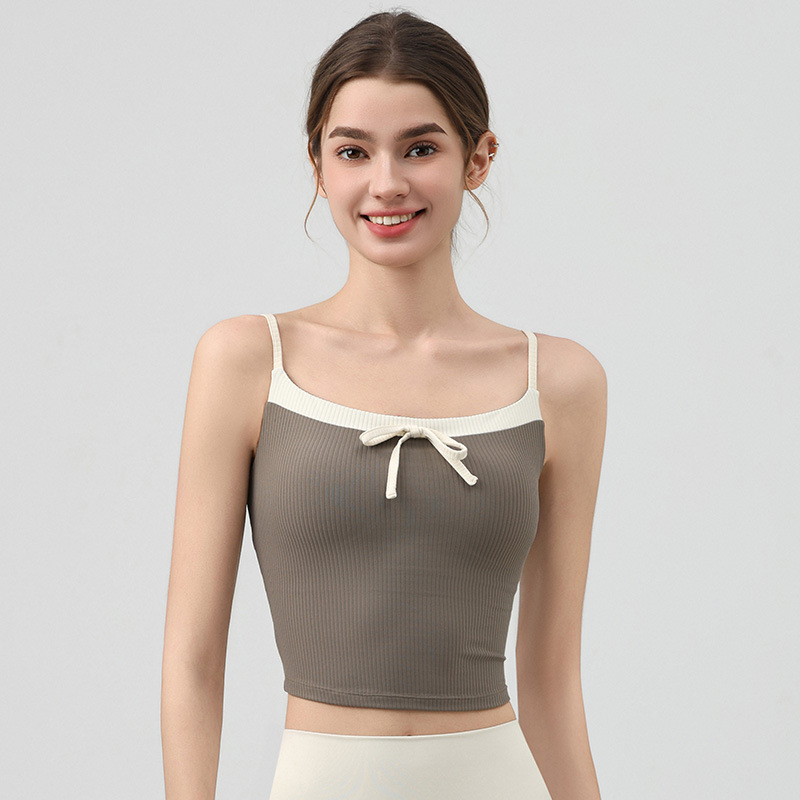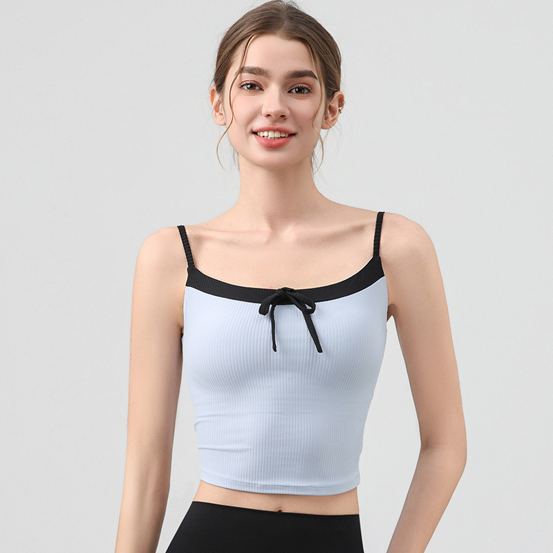 요가 의류 활 타이 슬링 스포츠 조끼 여자 여름 외부 소매 탑 피트니스 속옷 가슴 패드
