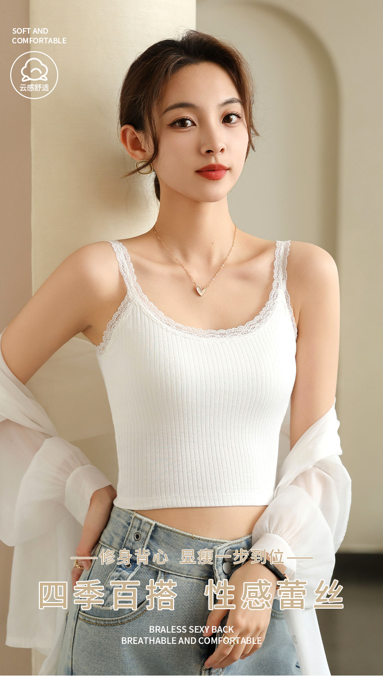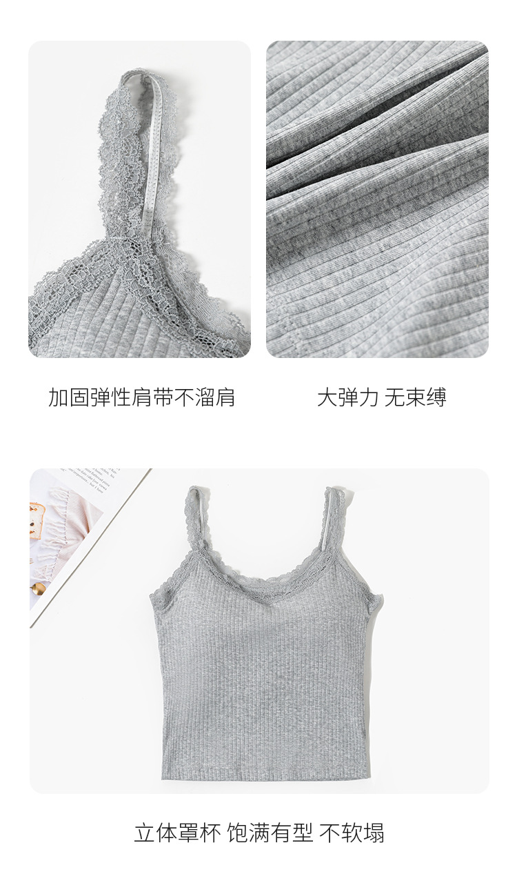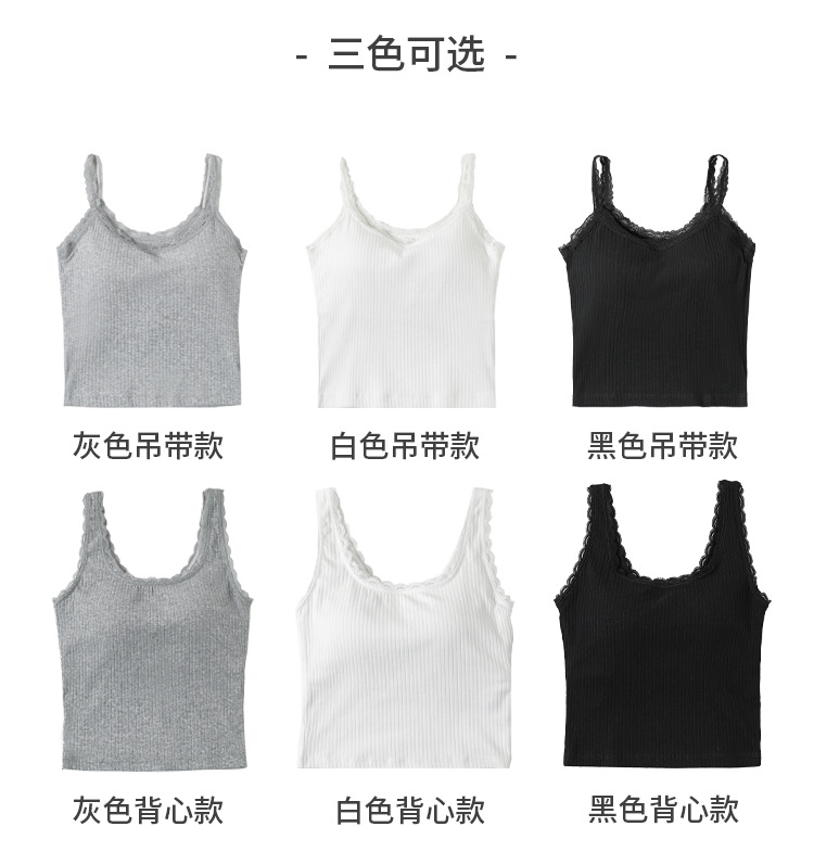 여성용 가슴 패드가 있는 순면 캐미솔, 슬림핏, 솔리드 컬러, 여성용 푸쉬업 밑단 탑스토어 가기