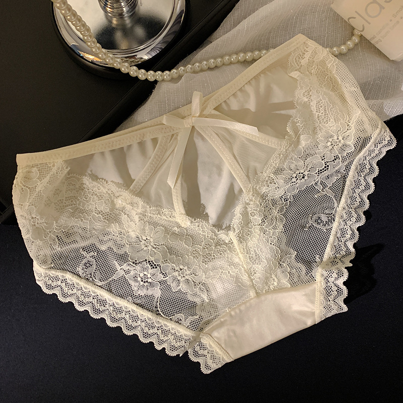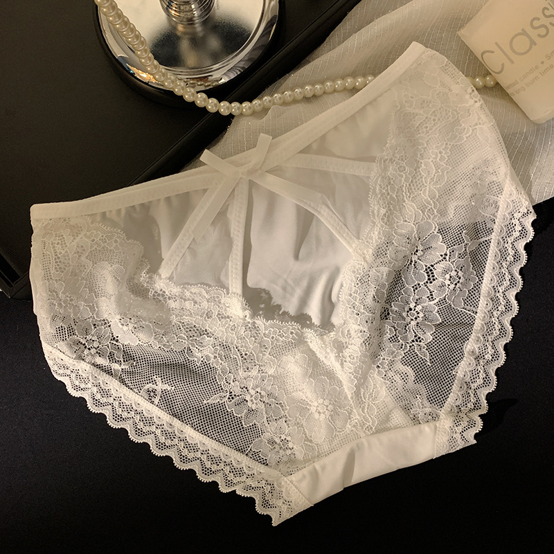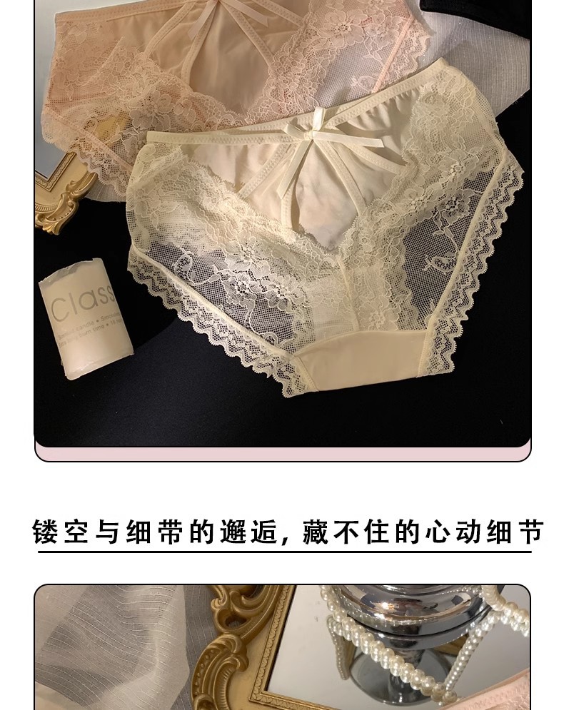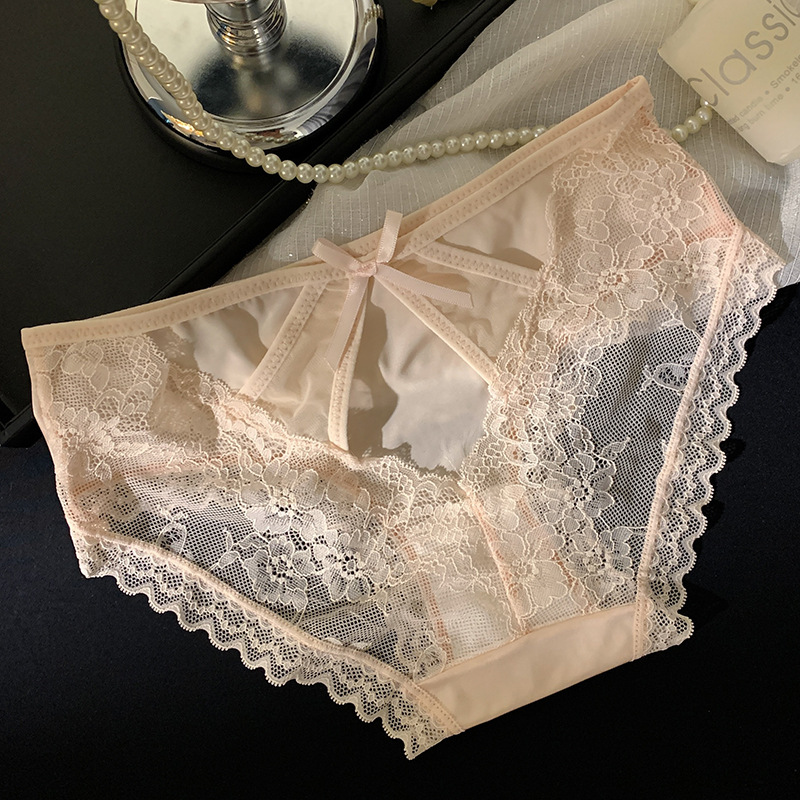 레이스 중공 순수한 욕망 스타일 속옷 여성의 섹시한 2025 새로운 투명 메쉬 소녀의 감성 중간 허리 팬티스토어 가기