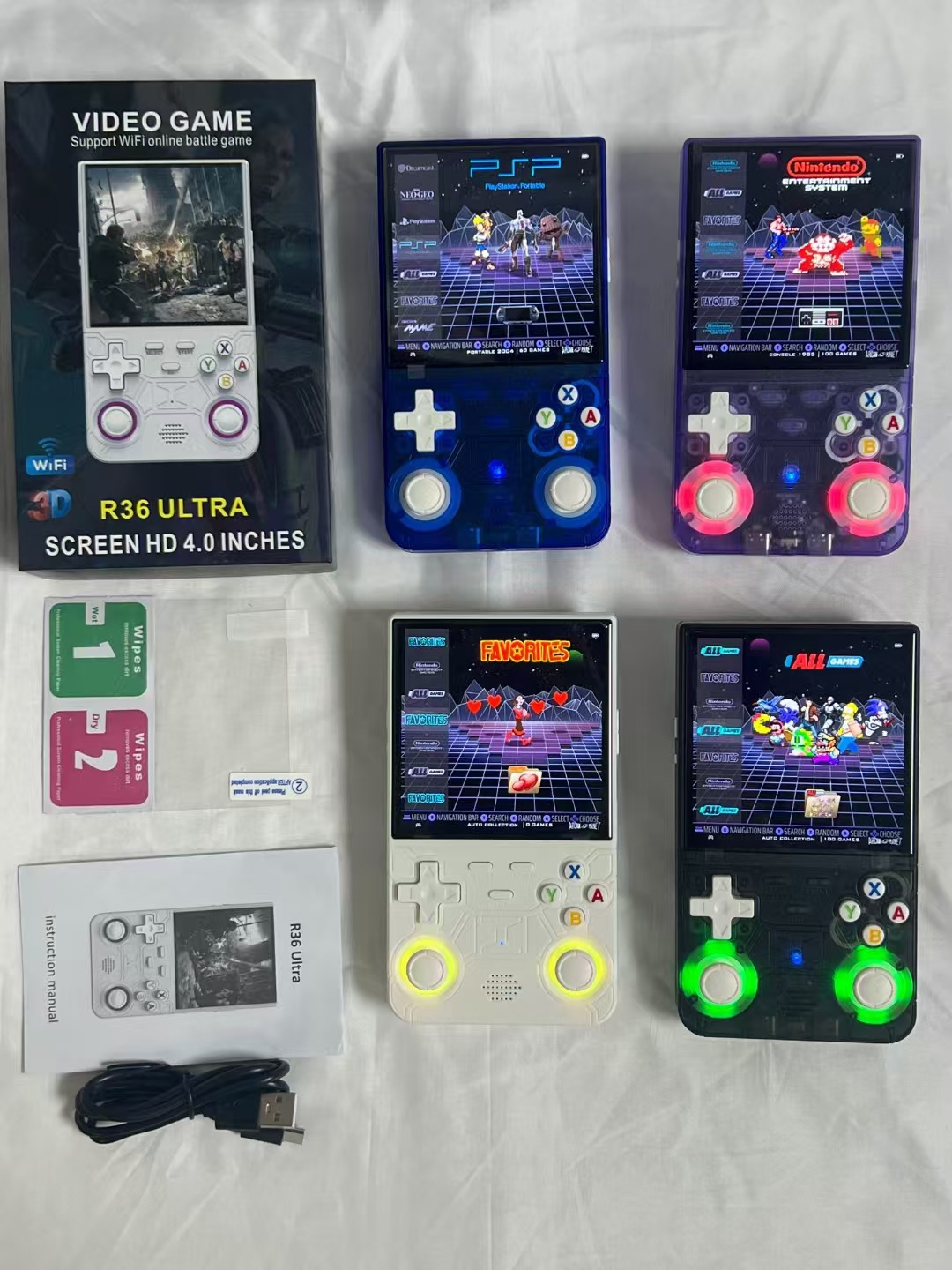 국경 간 새로운 R36 울트라 오픈 소스 핸드 헬드 게임기 4.0 HD 화면 휴대용 레트로 핸드 헬드 향수 아케이드