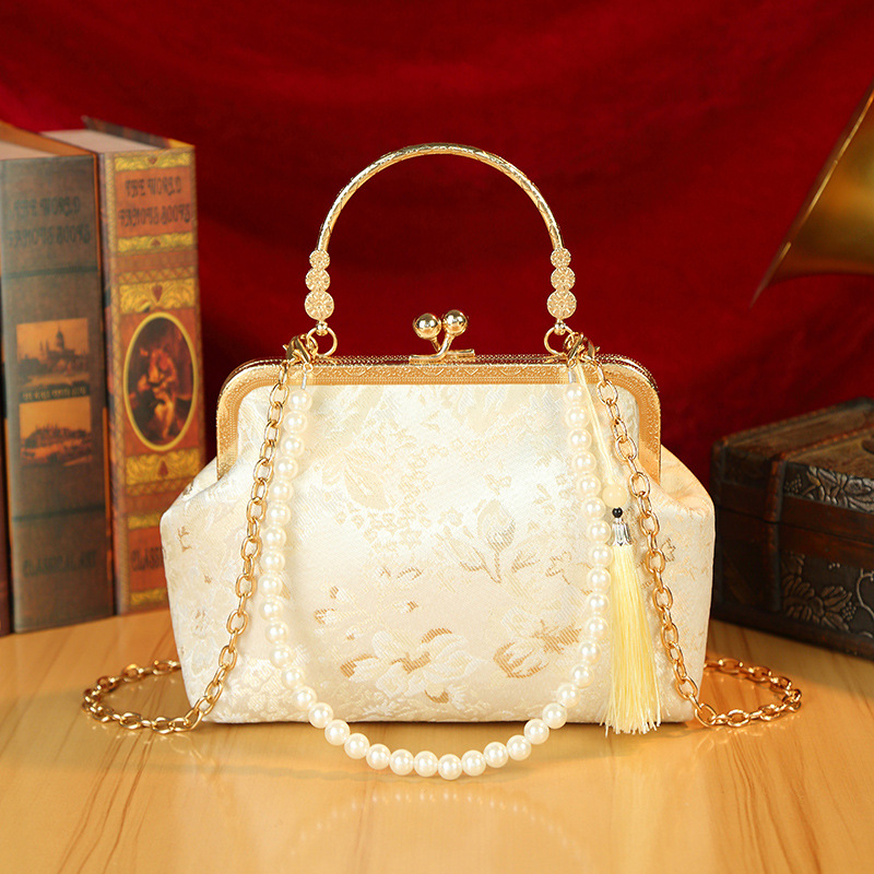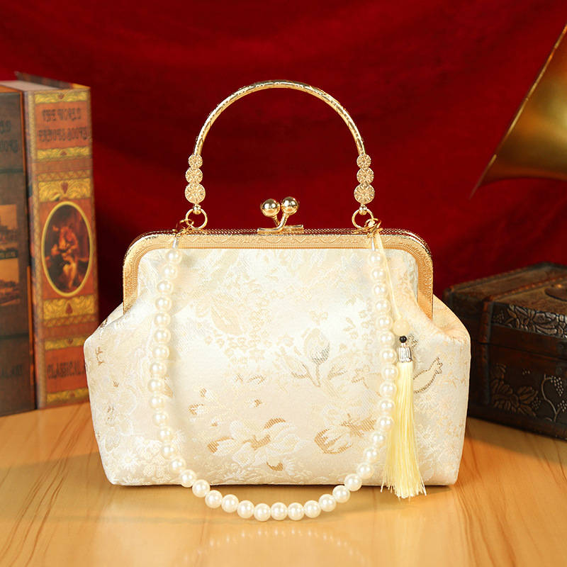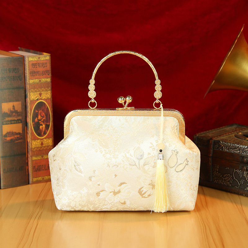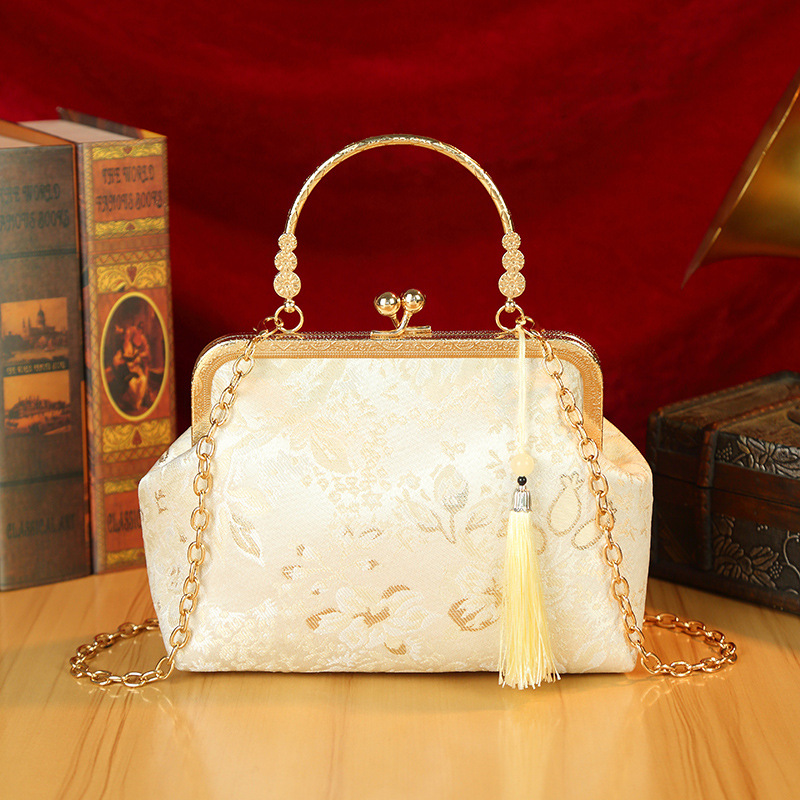 새로운 골동품 가방 일반 우아한 청삼 중국 한푸 어깨 입 골드 가방 Xiaozhong 국가 스타일 자수 골드 가방 핸드백