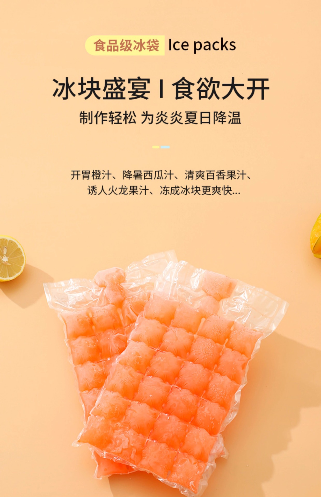 일회용 얼음 가방, 창의적인 자체 밀봉 플라스틱 얼음 트레이, 여름용 제빙기, 물이 채워진 얼음 가방, 수박 얼음 가방