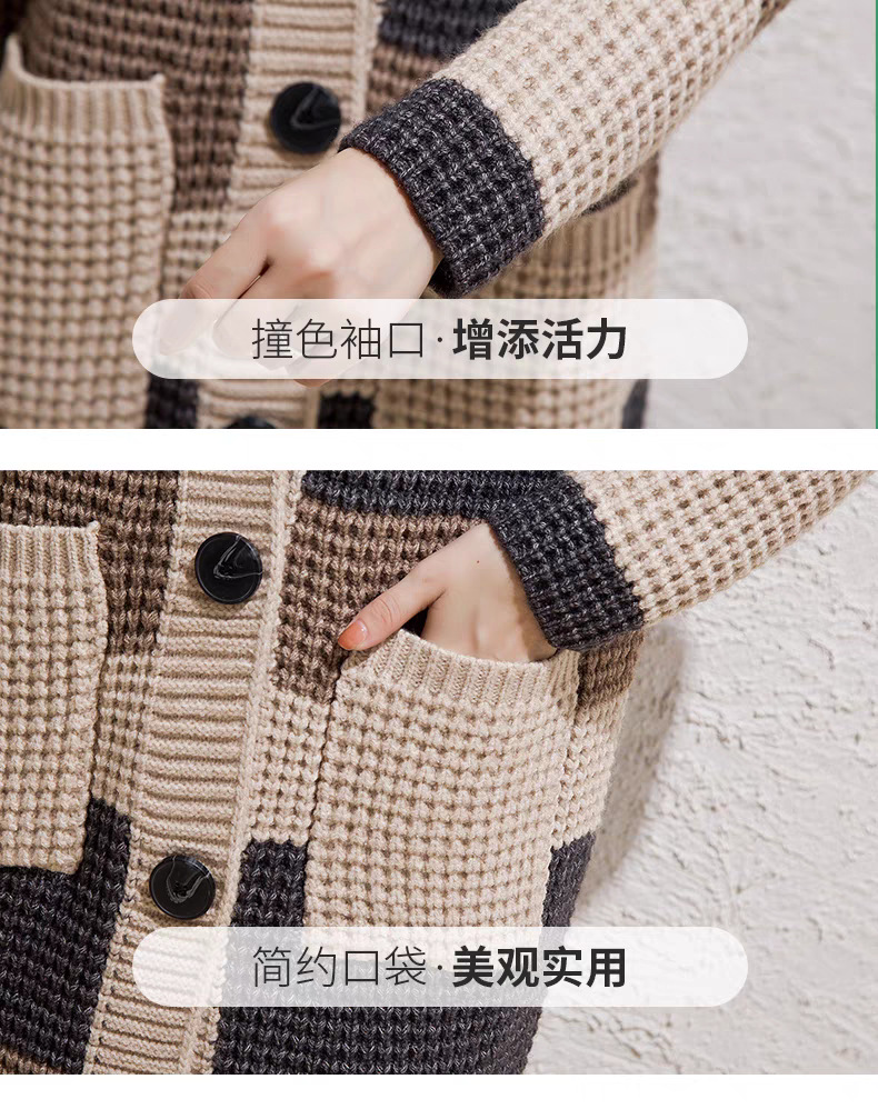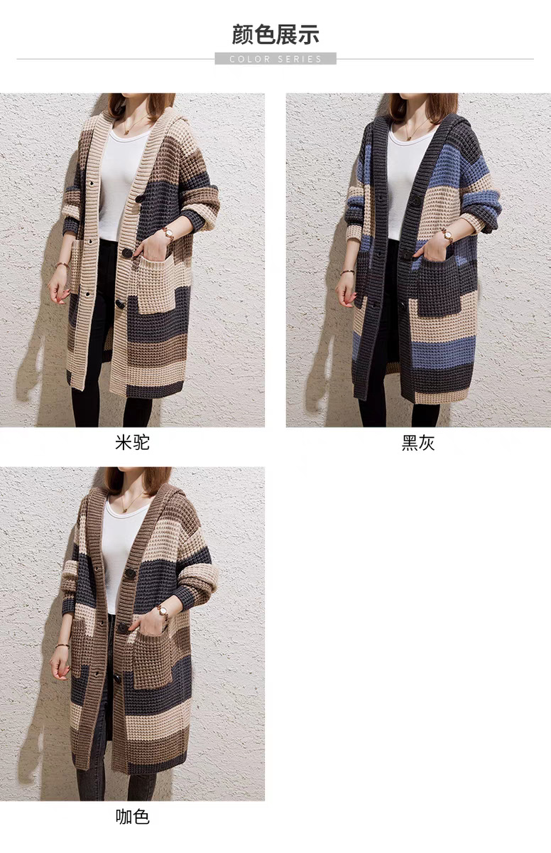 여성을위한 게으른 스타일 느슨한 두꺼운 양모 중간 길이 후드 두꺼운 니트 카디건 2025 봄 새 스웨터 재킷