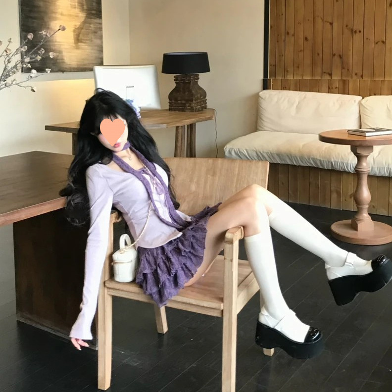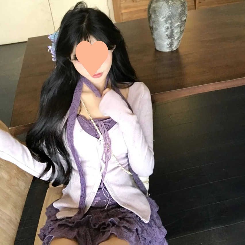 2025 봄 여름 신작 달콤하고 매콤한 슬림 디자인 니트 가디건 + 스커트 퍼플 투피스 세트스토어 가기