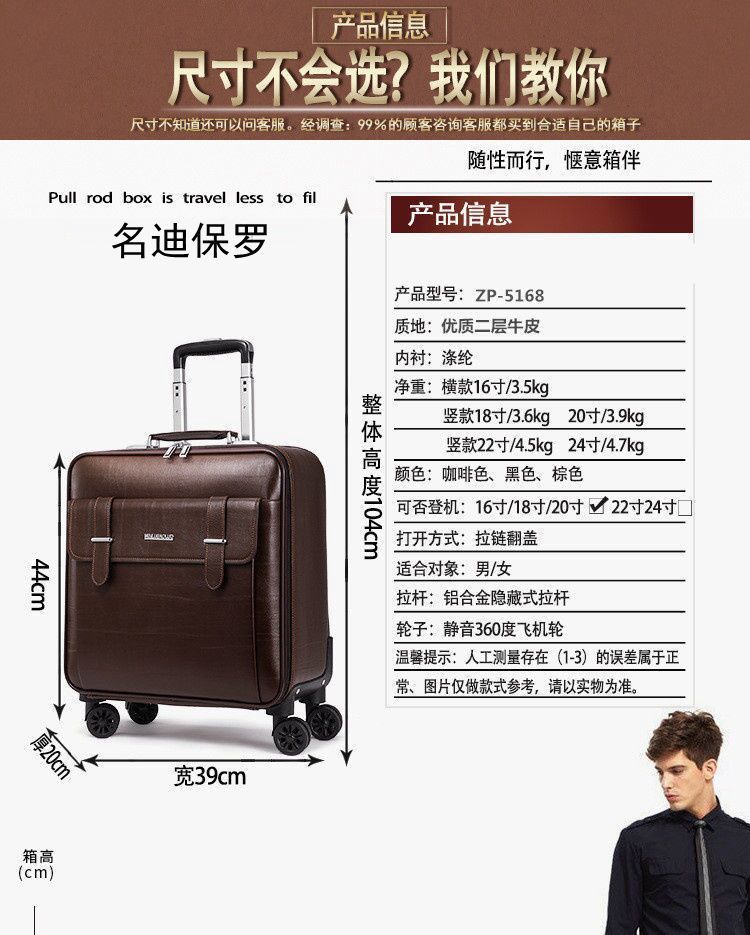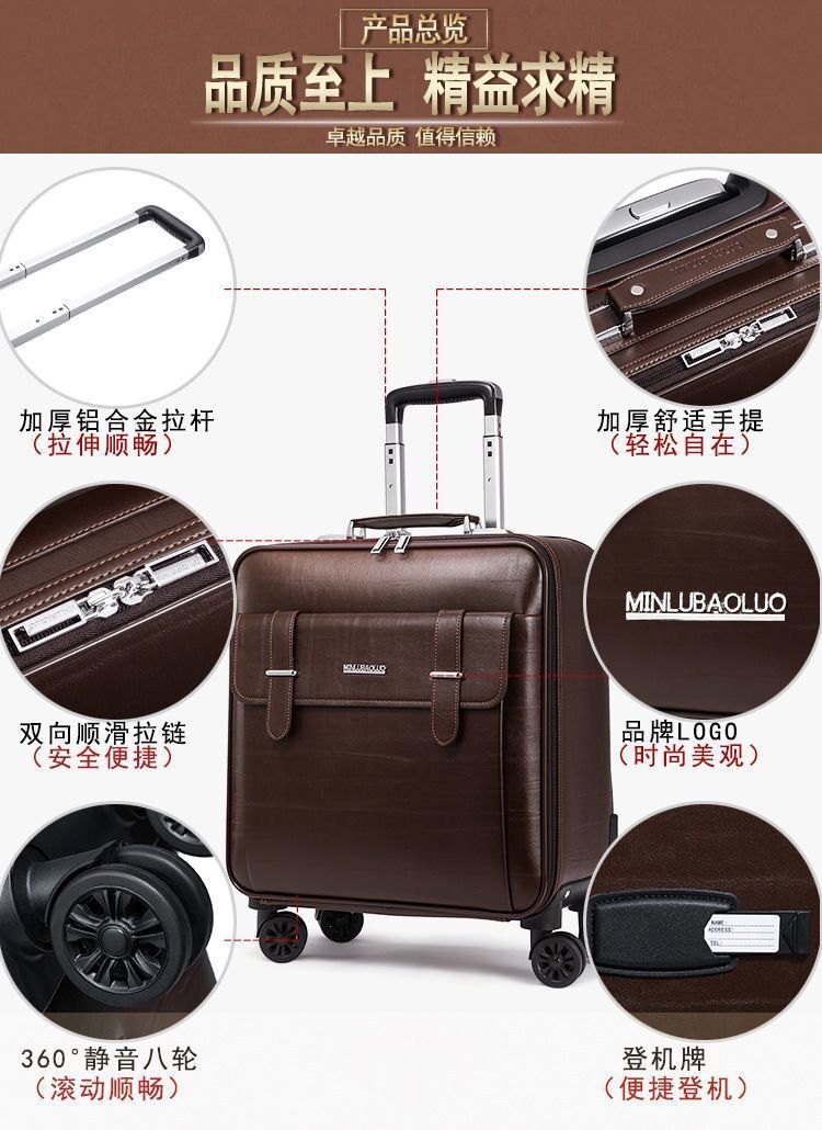 가죽 트롤리 가방 범용 바퀴가 달린 여행 가방 16inch 비즈니스 탑승 가방 20inch 남성용 및 여성용 가방 레트로 가죽 가방 22스토어 가기