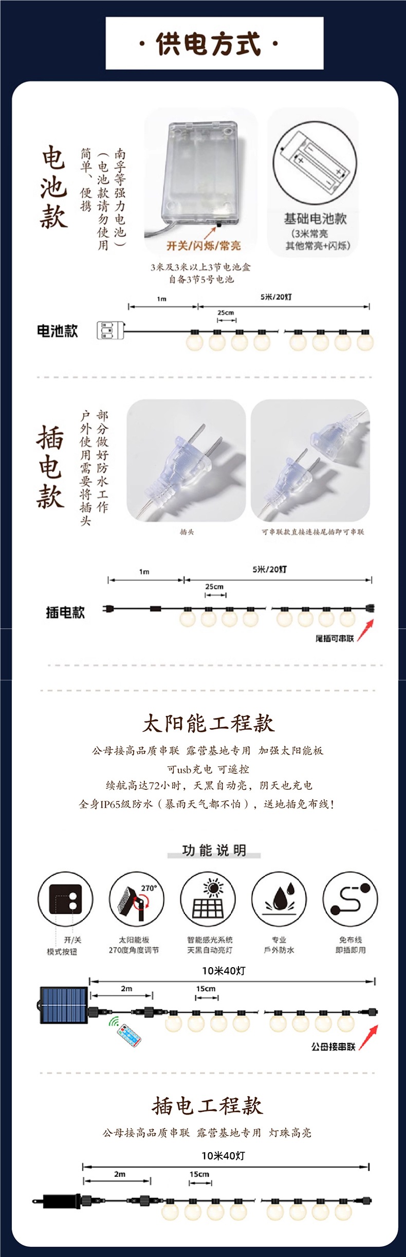 • 【5cm 큰 공】방수 쉘-색상-【캠프 레이아웃】플러그인 모델-25.1m 조명
