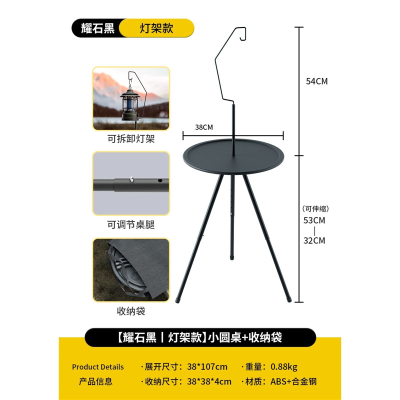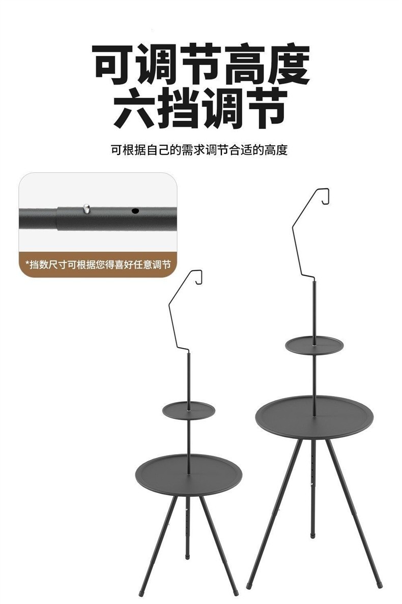야외 접이식 캠핑 테이블, 휴대용 소형 원형 테이블, 피크닉 캠핑 장비, 커피 테이블, 조명 스탠드가 있는 이중층 리프팅 테이블
