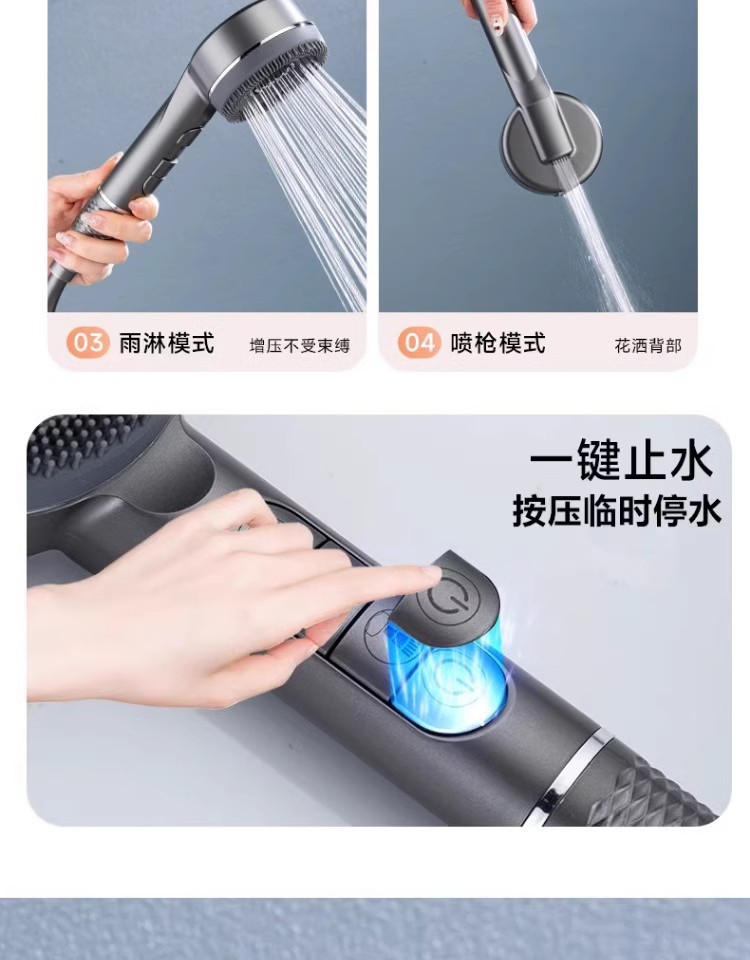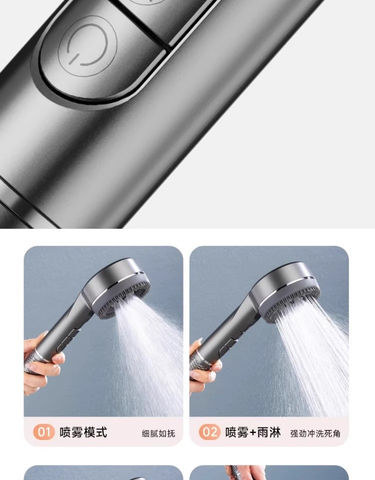 • 피아노 슈퍼차지 샤워헤드 - 별이 빛나는 밤 그레이 + 1.5m 그레이 튜브 + 브래킷