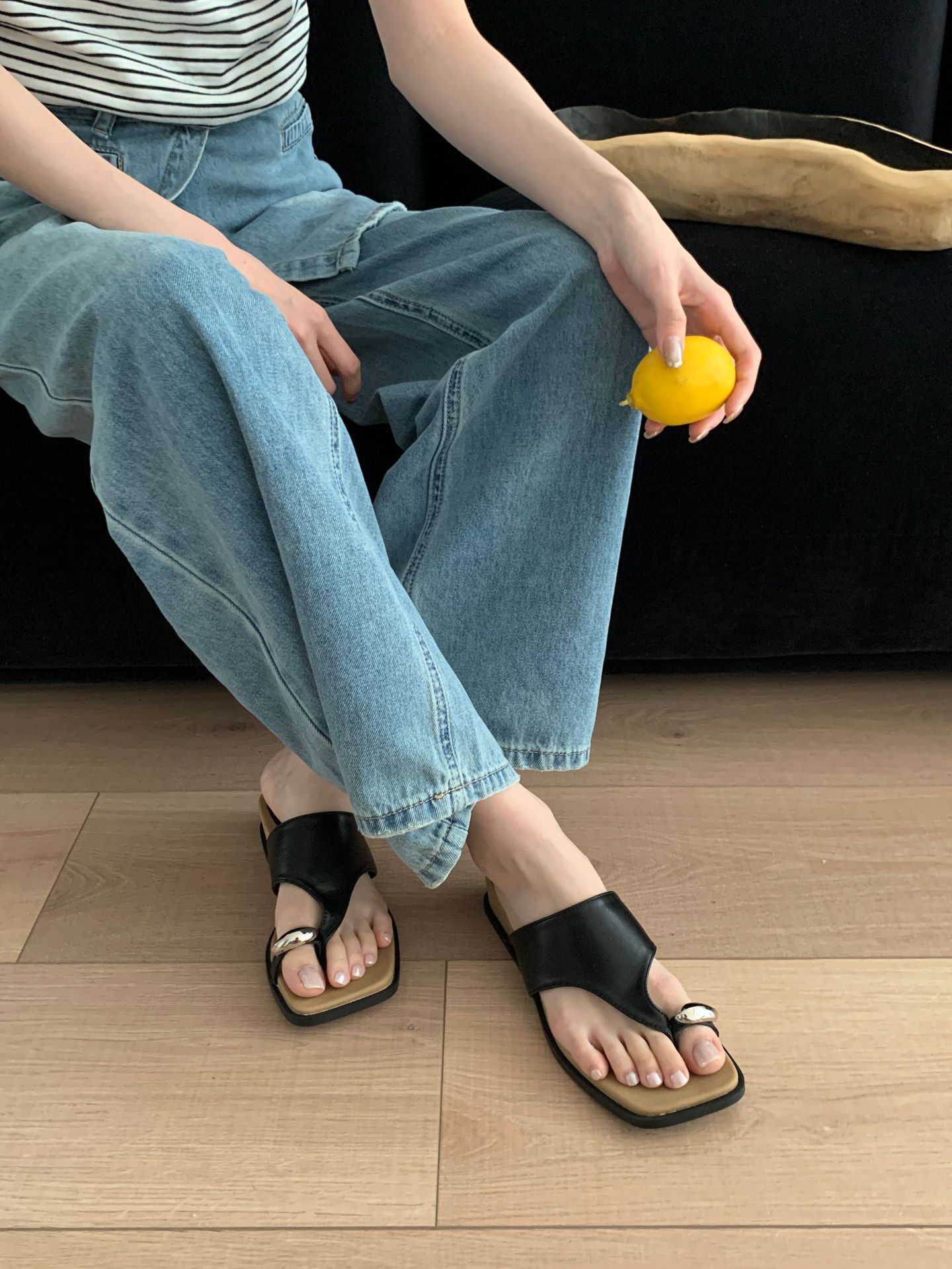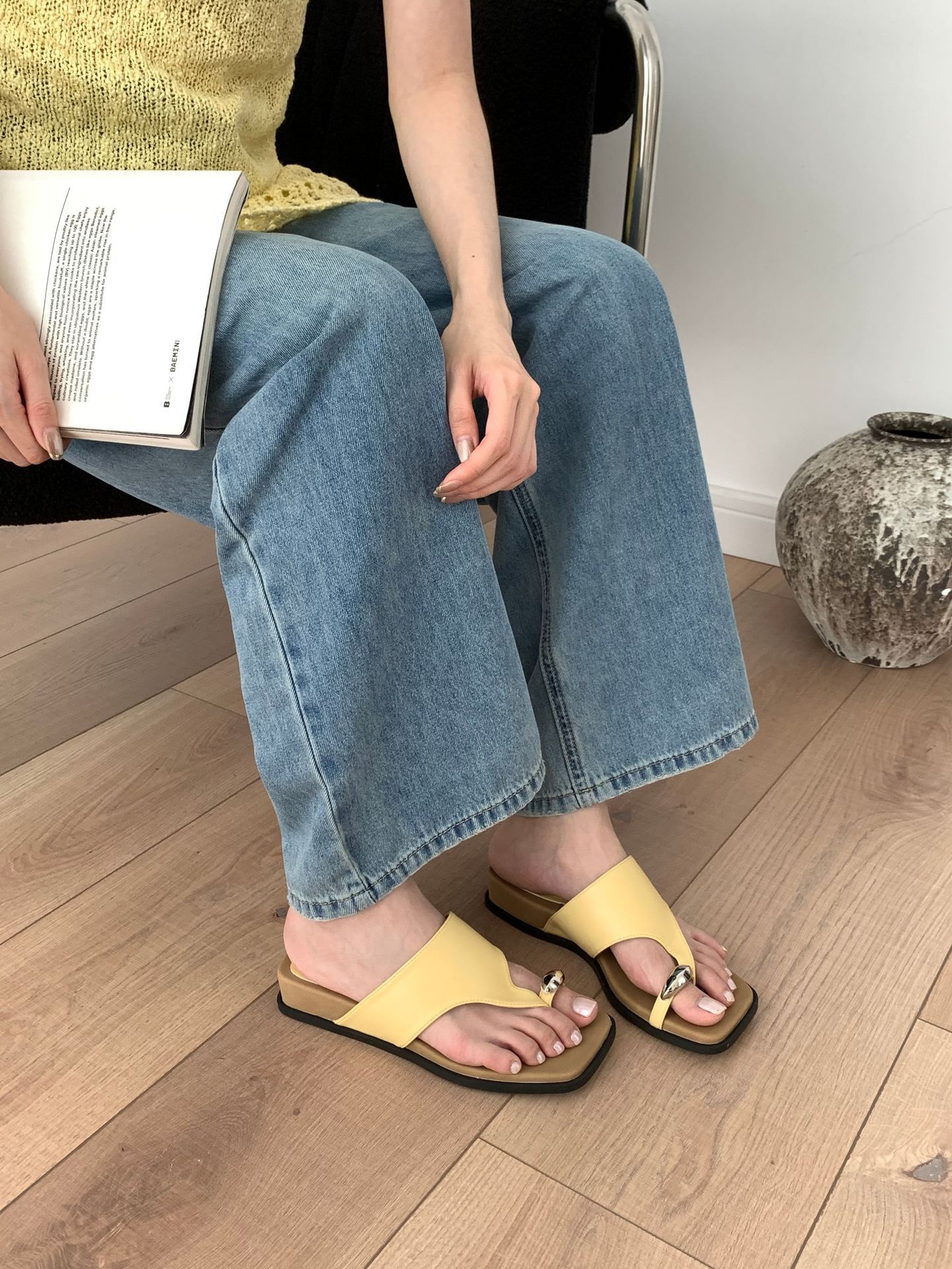 휴가철 메탈 플립플롭, 여성스러운 스퀘어토 밀짚 샌들, 새로운 플랫솔 니치 디자인 샌들