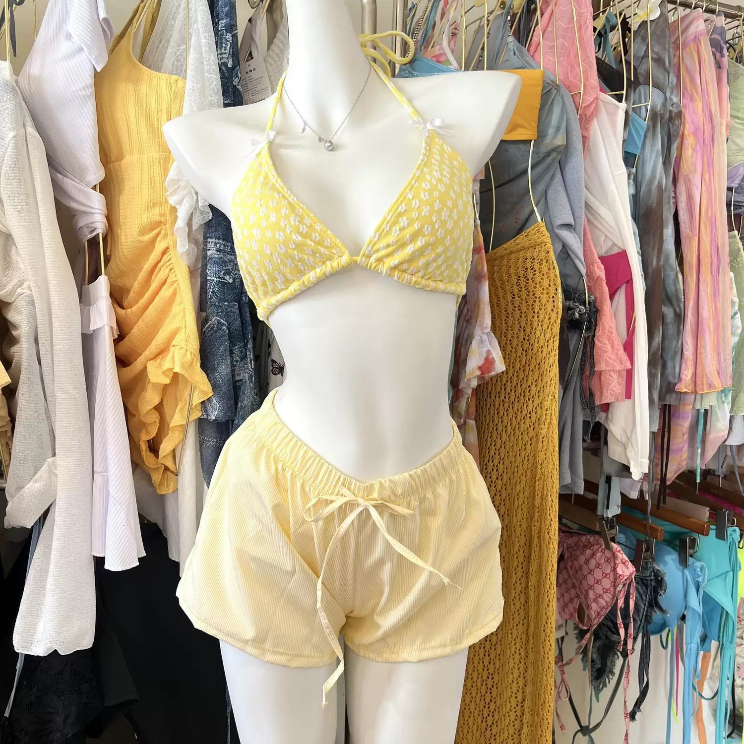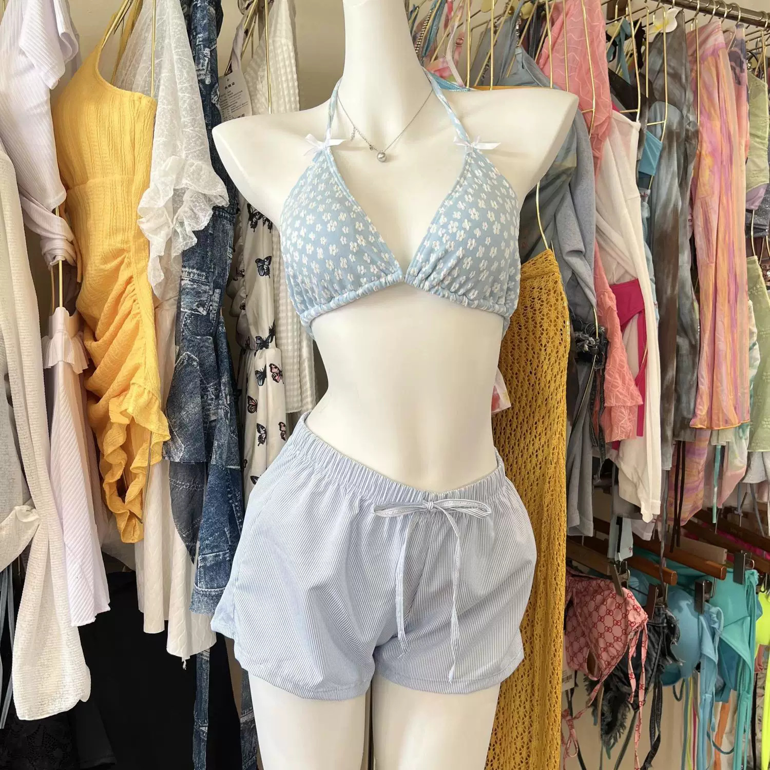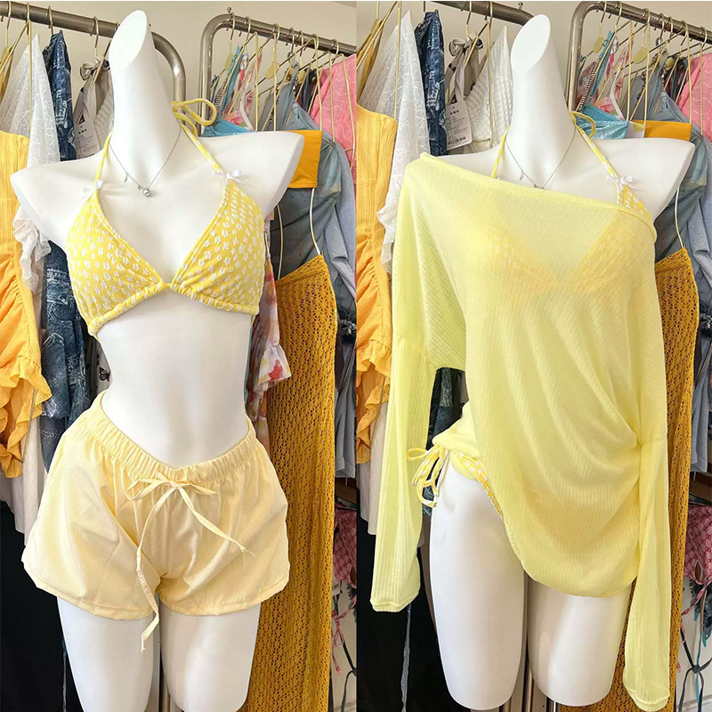 수영복 여성용 스플릿 4 피스 비키니 긴팔 신선한 스타일 꽃 온천 순수 섹시한 휴가 수영복스토어 가기