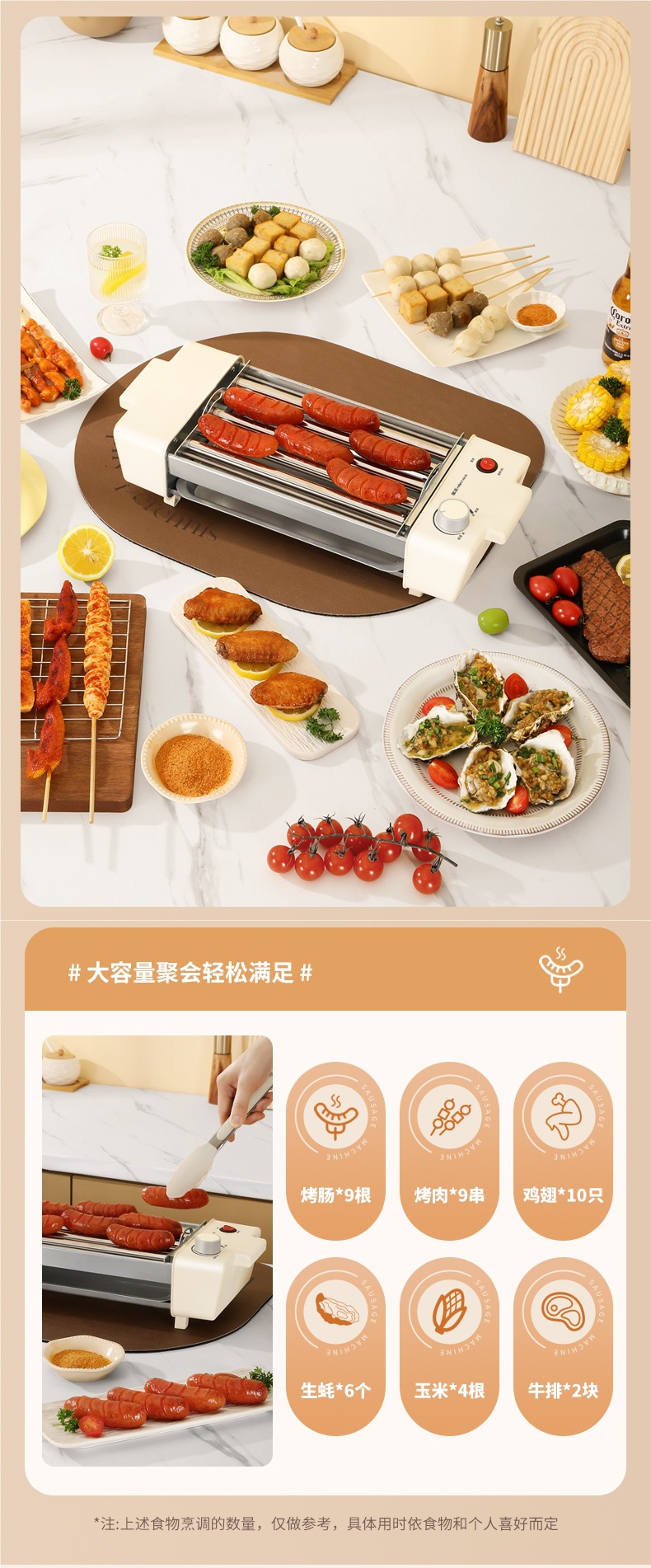 • 베이지색 튜브 5개[소시지 스탠드 + 기름받이 포함] + 바비큐 꼬치 100개
