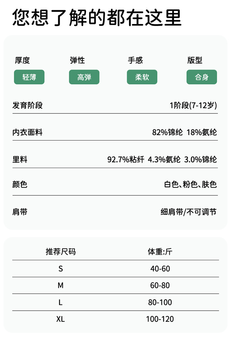 발달기 7-12세 여학생을 위한 작은 조끼, 여아 속옷, 중학교 더블 숄더 스트랩 조끼 스타일 여아 브라 맞춤 제작스토어 가기