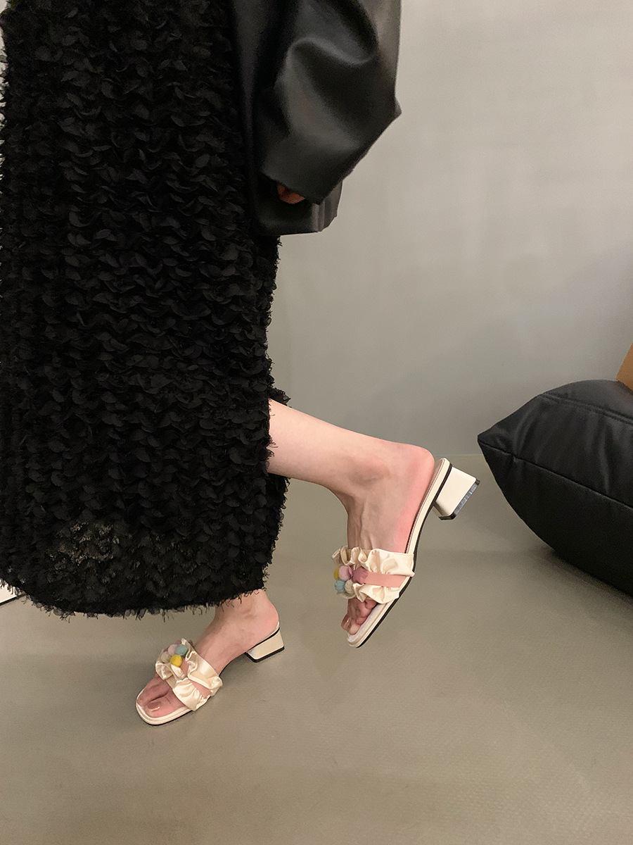 두꺼운 굽 핑크 요정 스커트 여성용 스퀘어 토 두꺼운 굽 샌들 2025 새로운 여름 새로운 중국 스타일 샌들