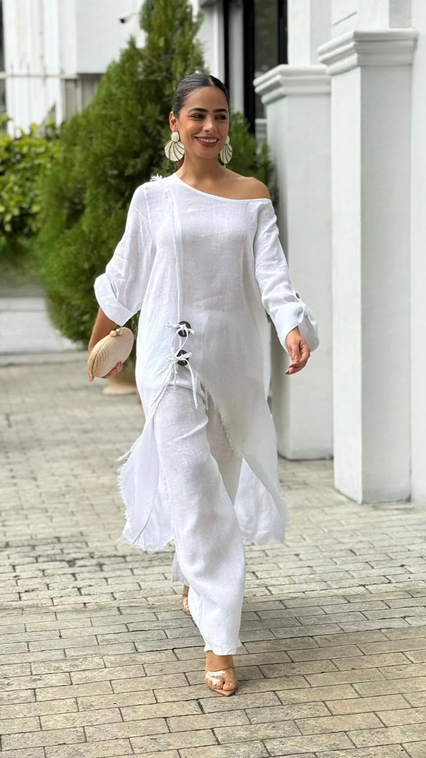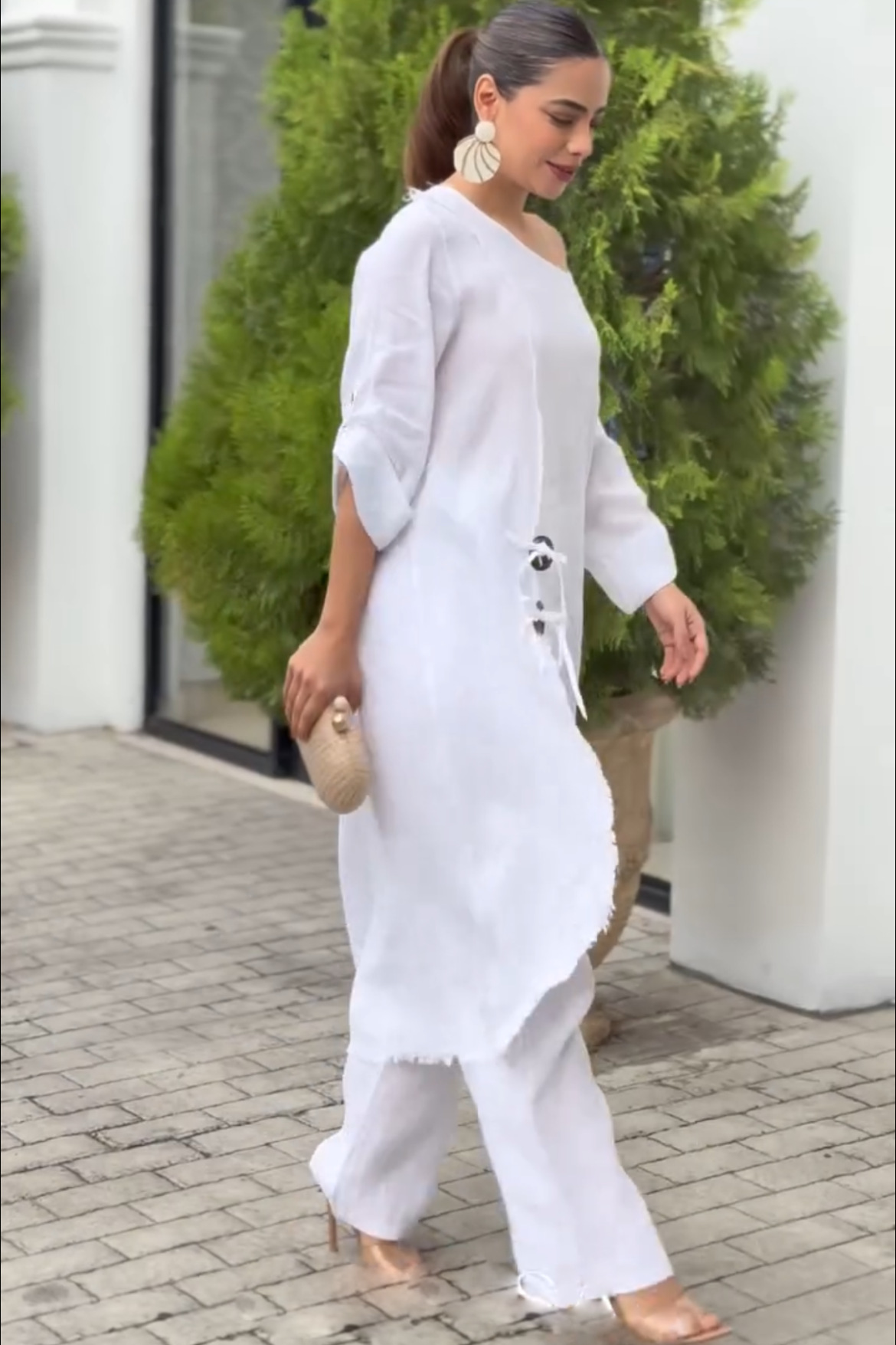 2025년 크로스보더 독립스테이션 봄 여름 나무 버튼 루즈한 불규칙한 로브 슈트 바지 유럽과 미국 패션 여성복.