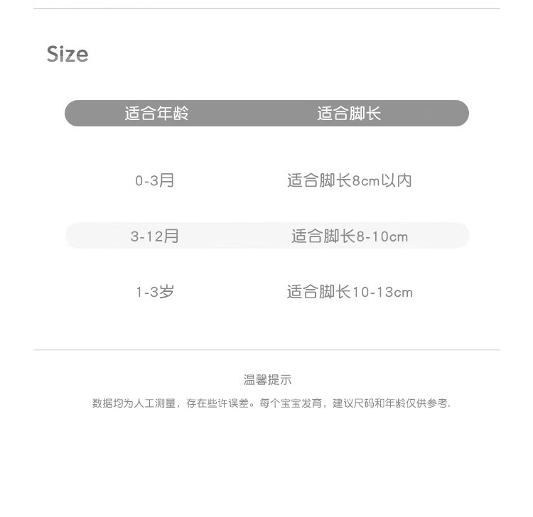 • 3~12개월(발 길이 8~10cm에 적합)