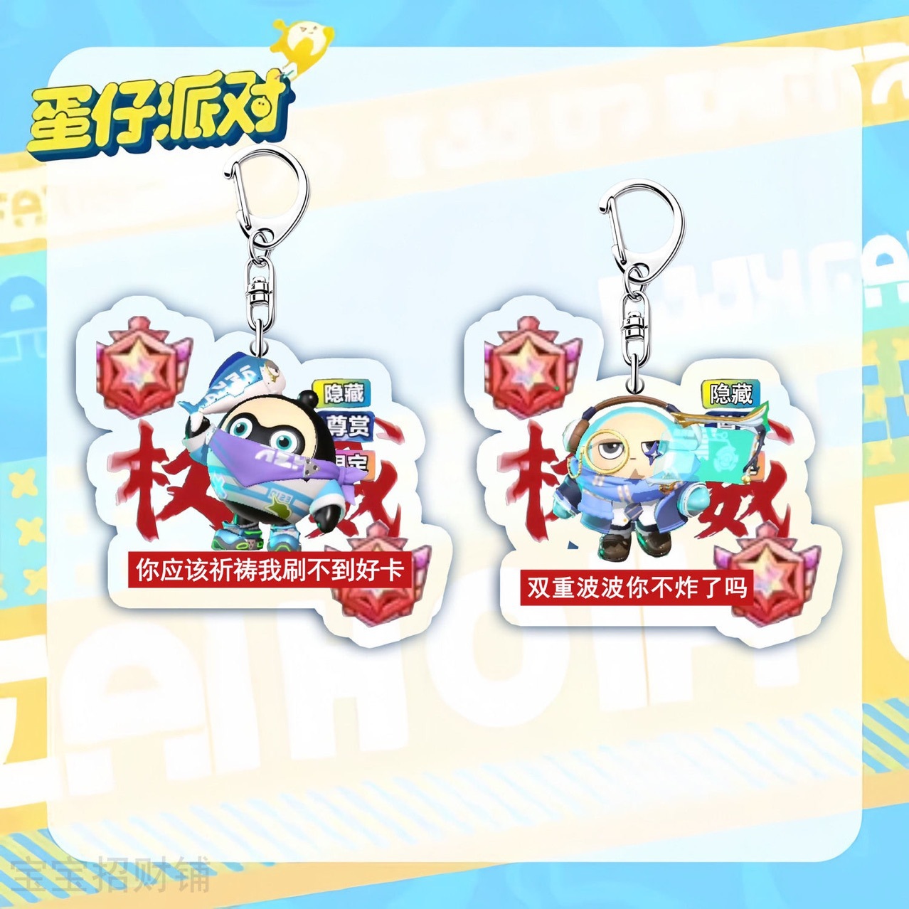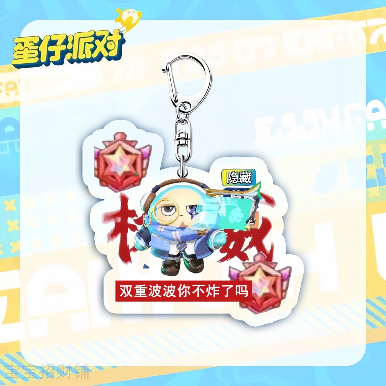 계란 파티 슈퍼 연소 아레나 키 체인 새로운 작은 검은 파란색 권위있는 주변 아크릴 만화 펜던트 선물