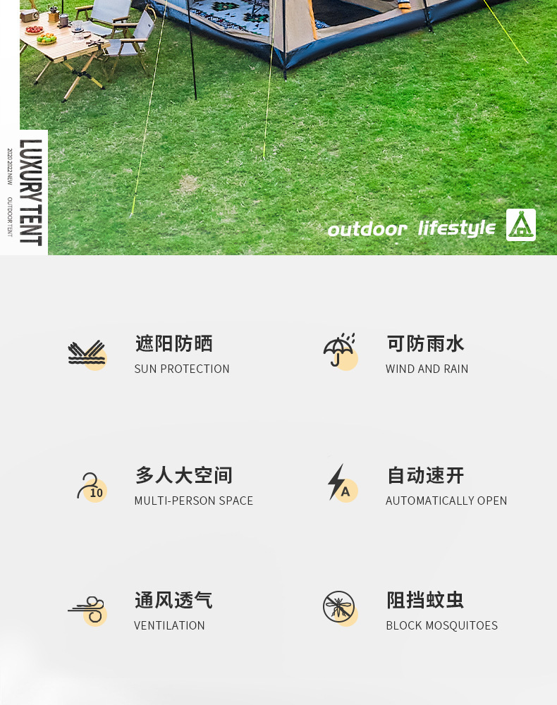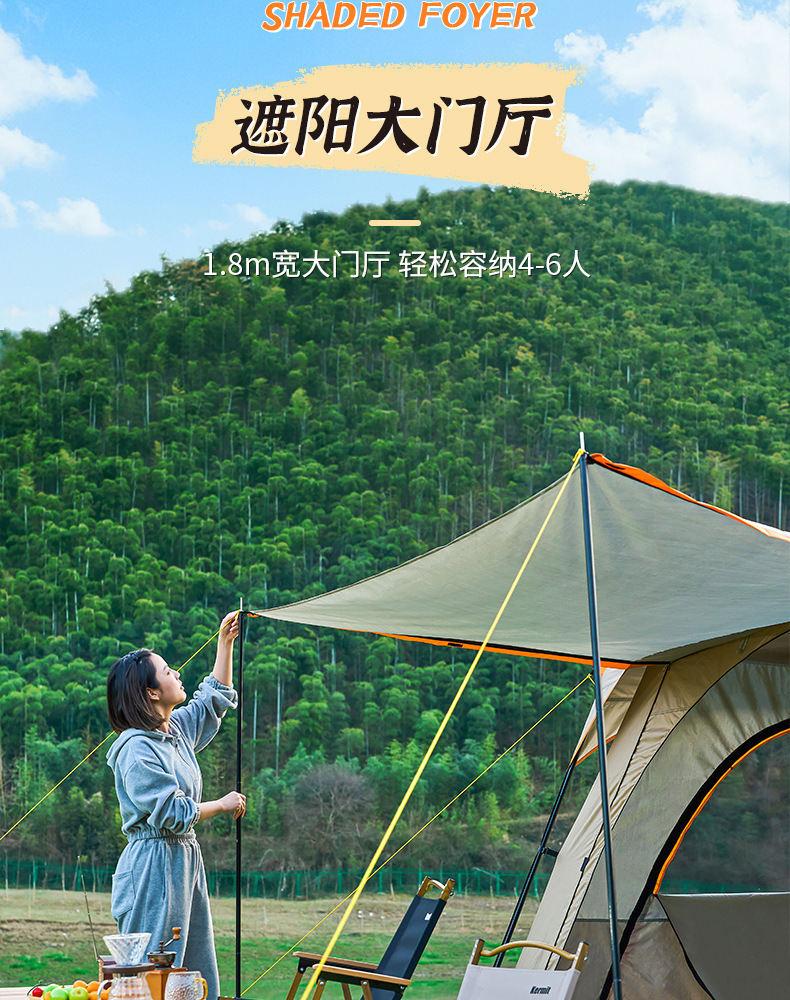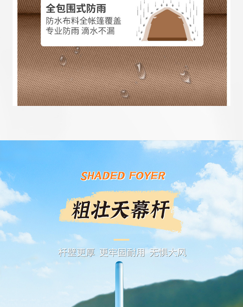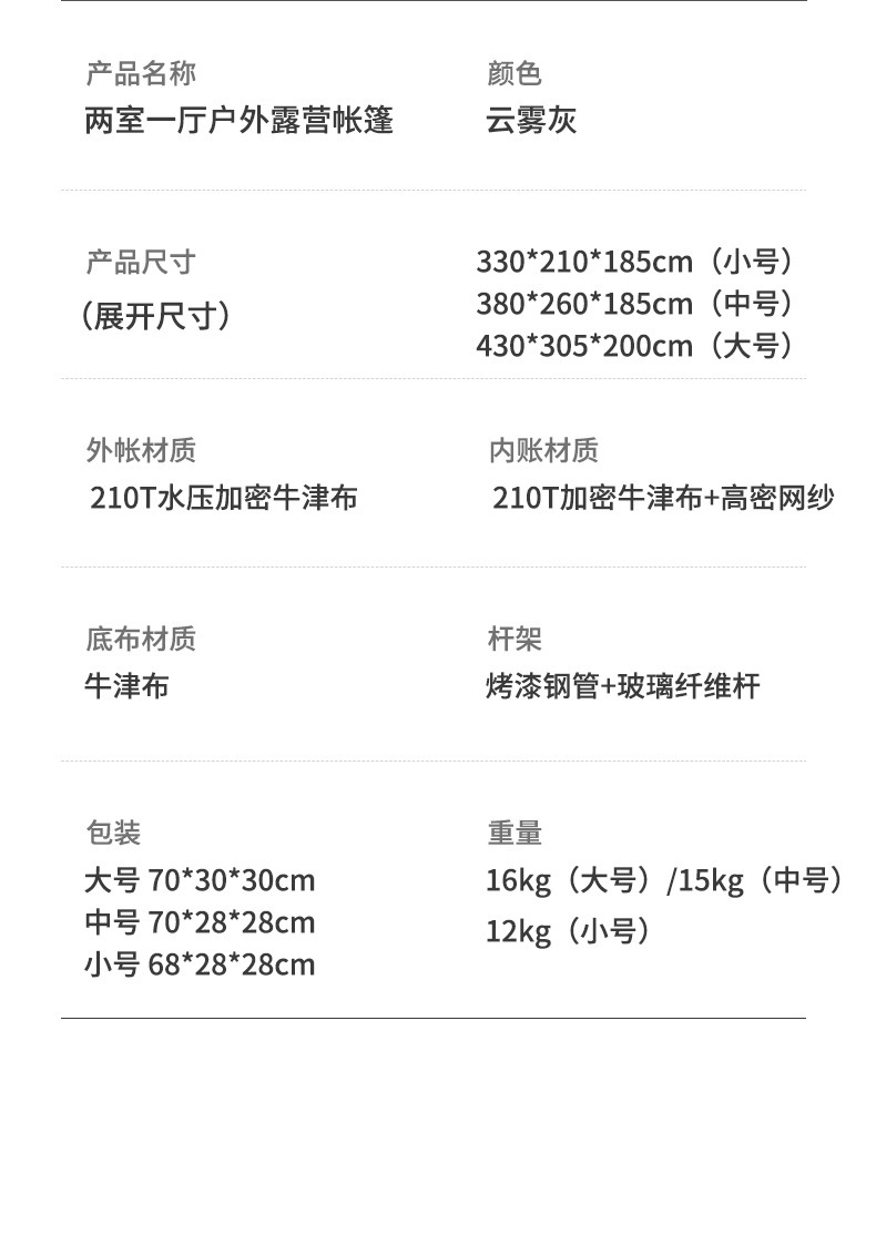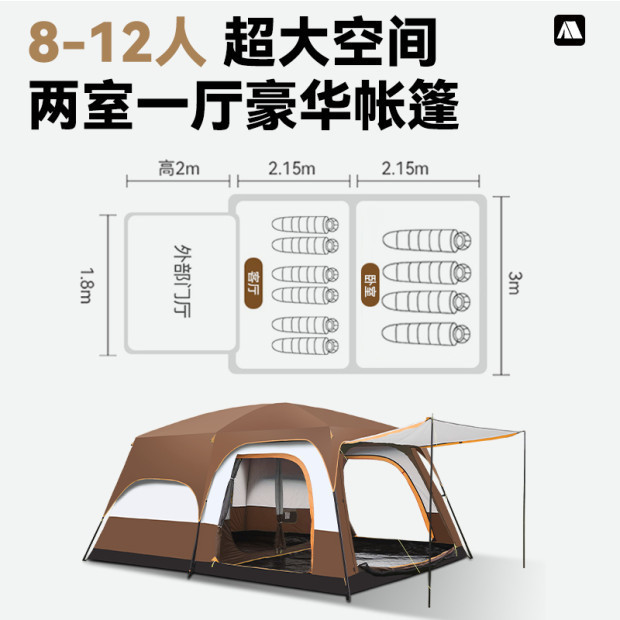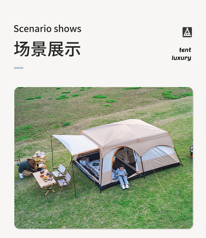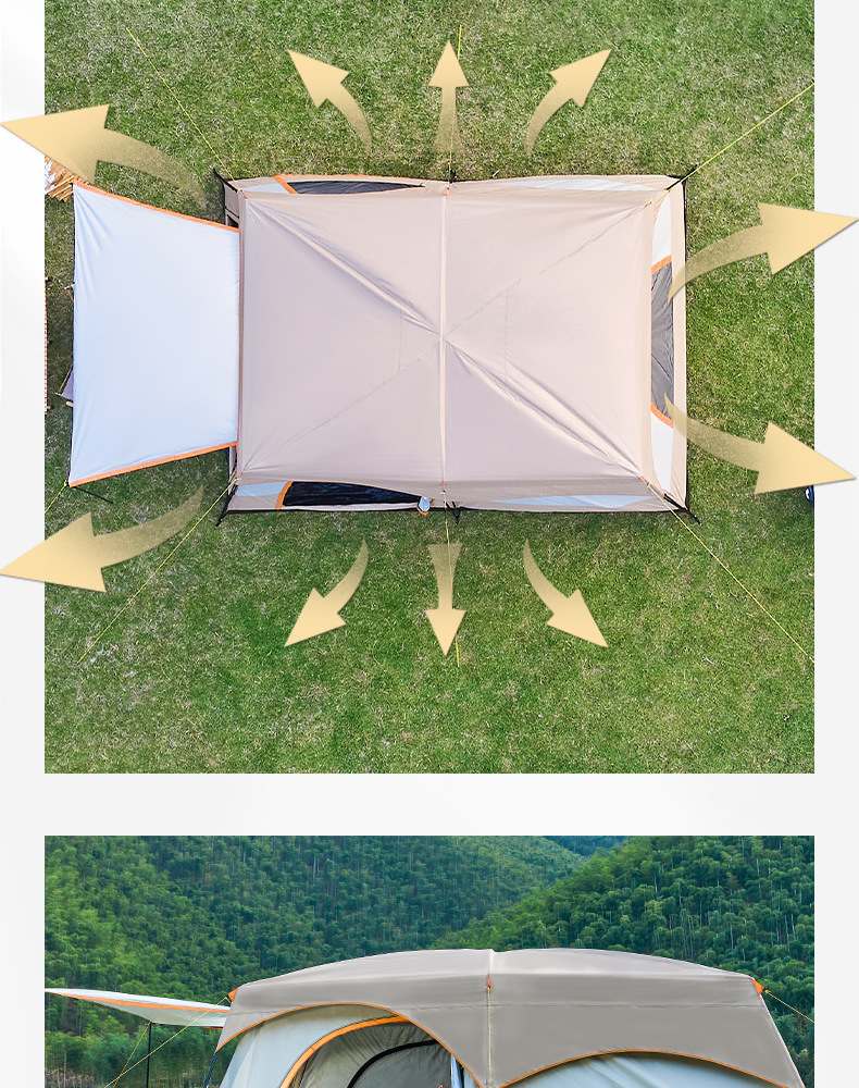 2개의 방과 1개의 거실이 있는 대형 텐트, 야외 접이식 휴대용 방풍 캠핑 바베큐, 두꺼운 RV, 비 방지 야외스토어 가기