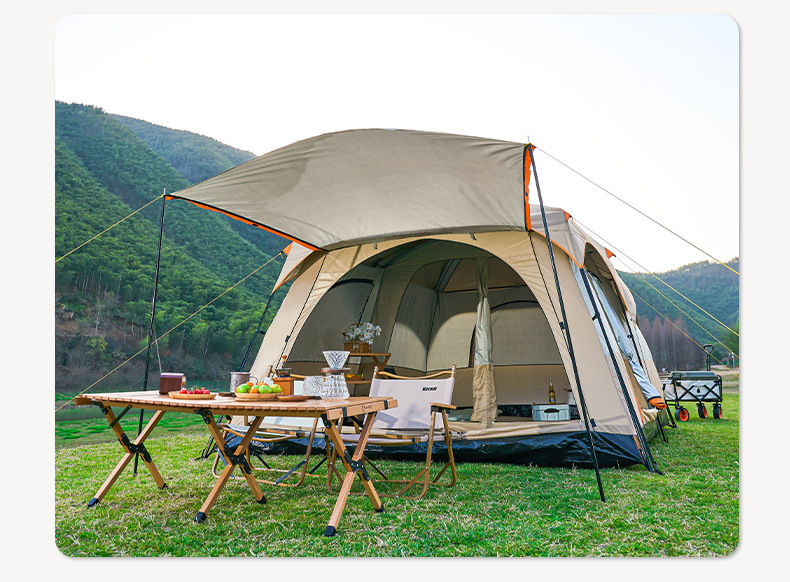 2개의 방과 1개의 거실이 있는 대형 텐트, 야외 접이식 휴대용 방풍 캠핑 바베큐, 두꺼운 RV, 비 방지 야외