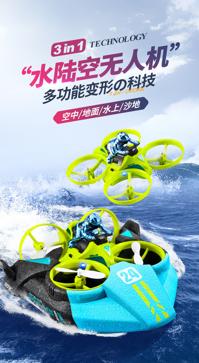 【产品名称:】水陆空3合1变形无人机气垫船
