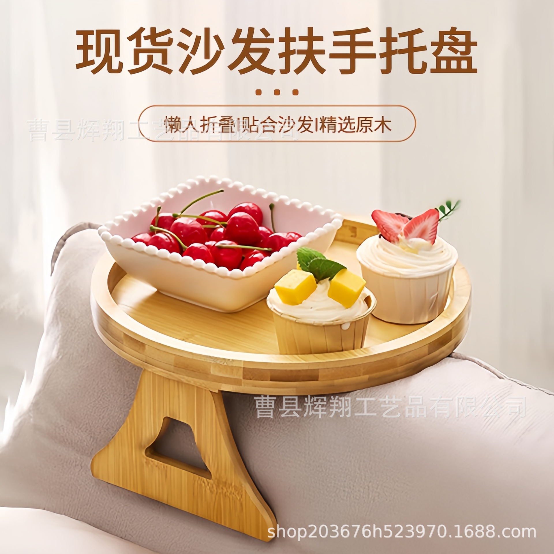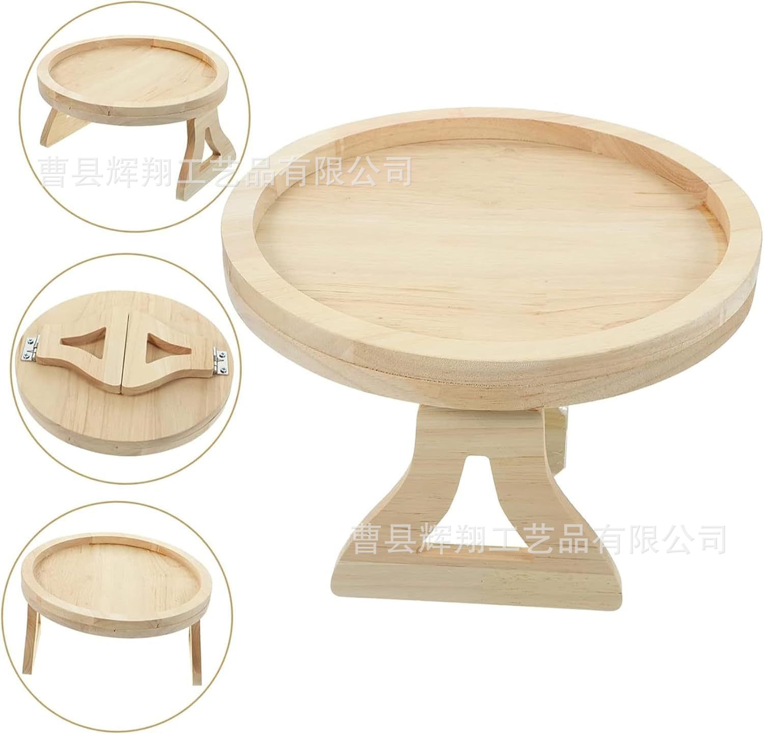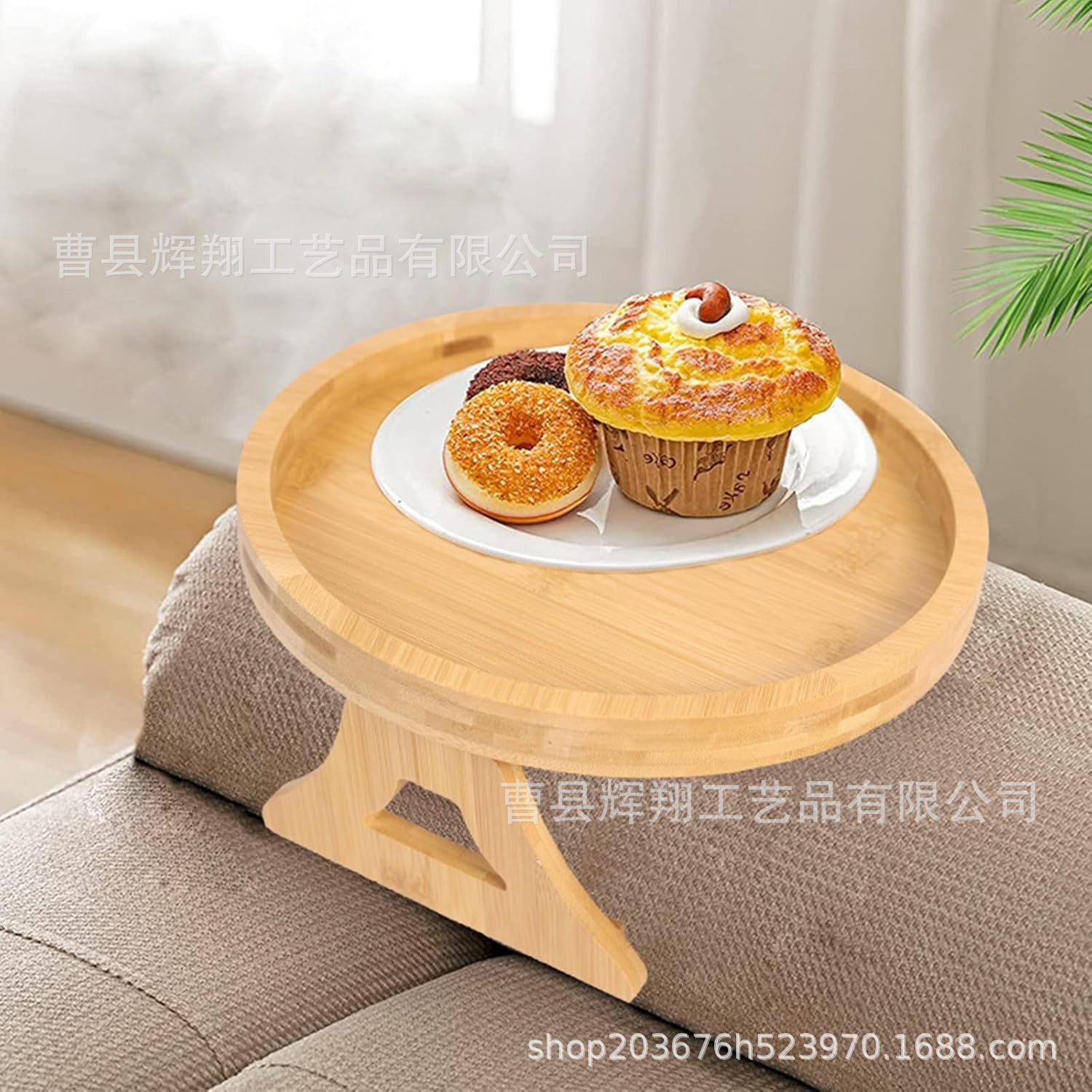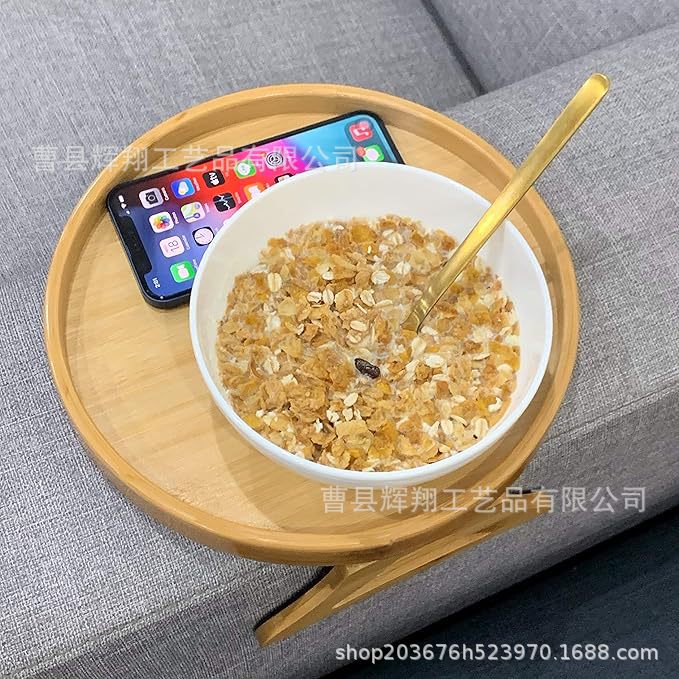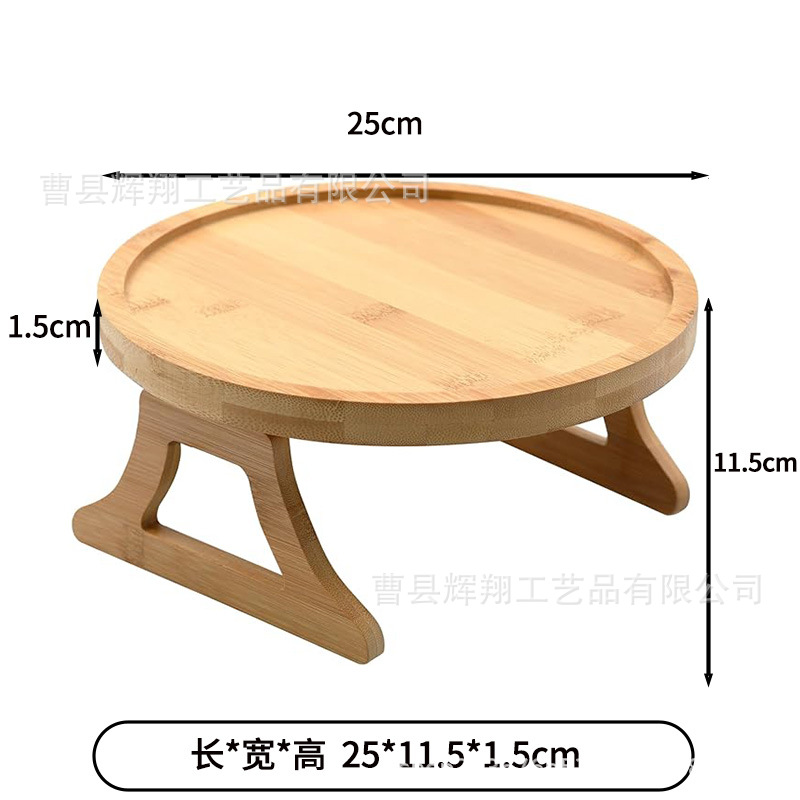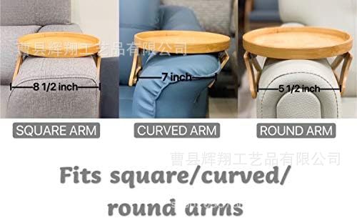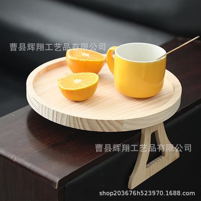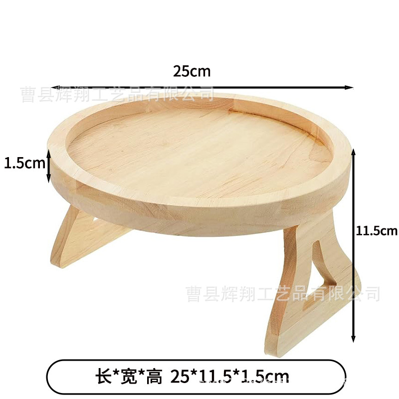 나무 소파 팔걸이 트레이 접이식 과일 스낵 거실 침실 소파 보관 랙 라운드 트레이스토어 가기