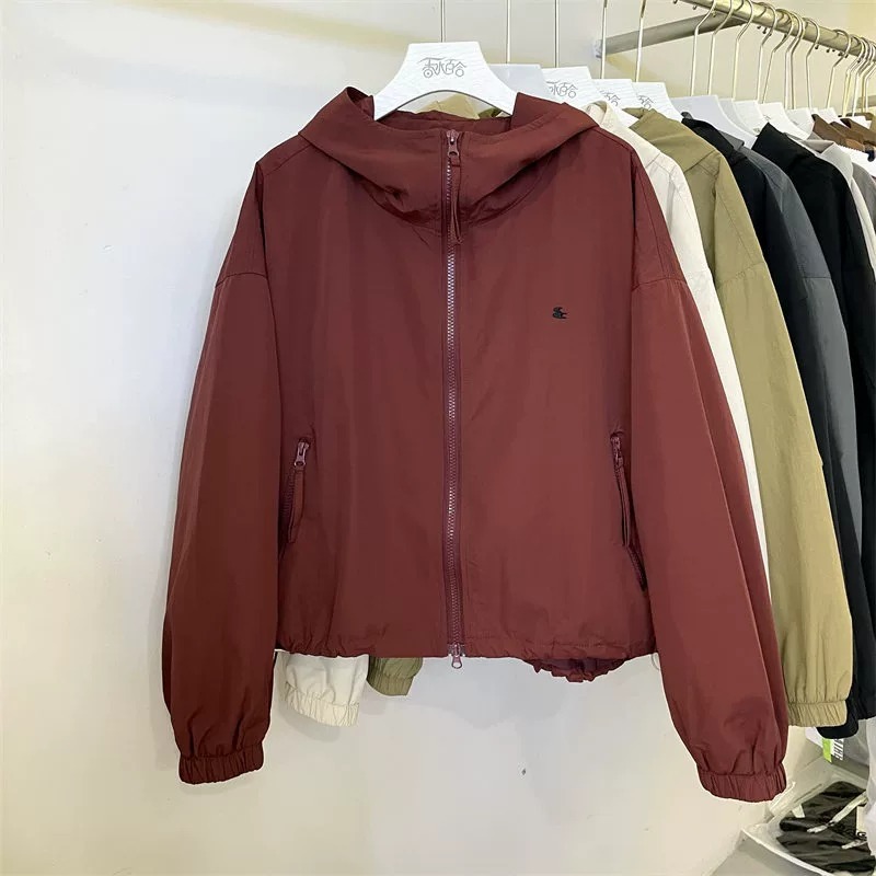 Q6J 스포츠 캐주얼 스타일 스탠드 칼라 후드 긴팔 재킷 여성용 더블 지퍼 드로스트링 밑단 솔리드 컬러 재킷 쇼트 아우터스토어 가기