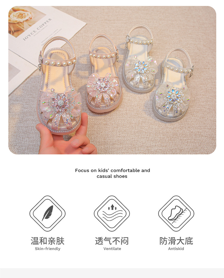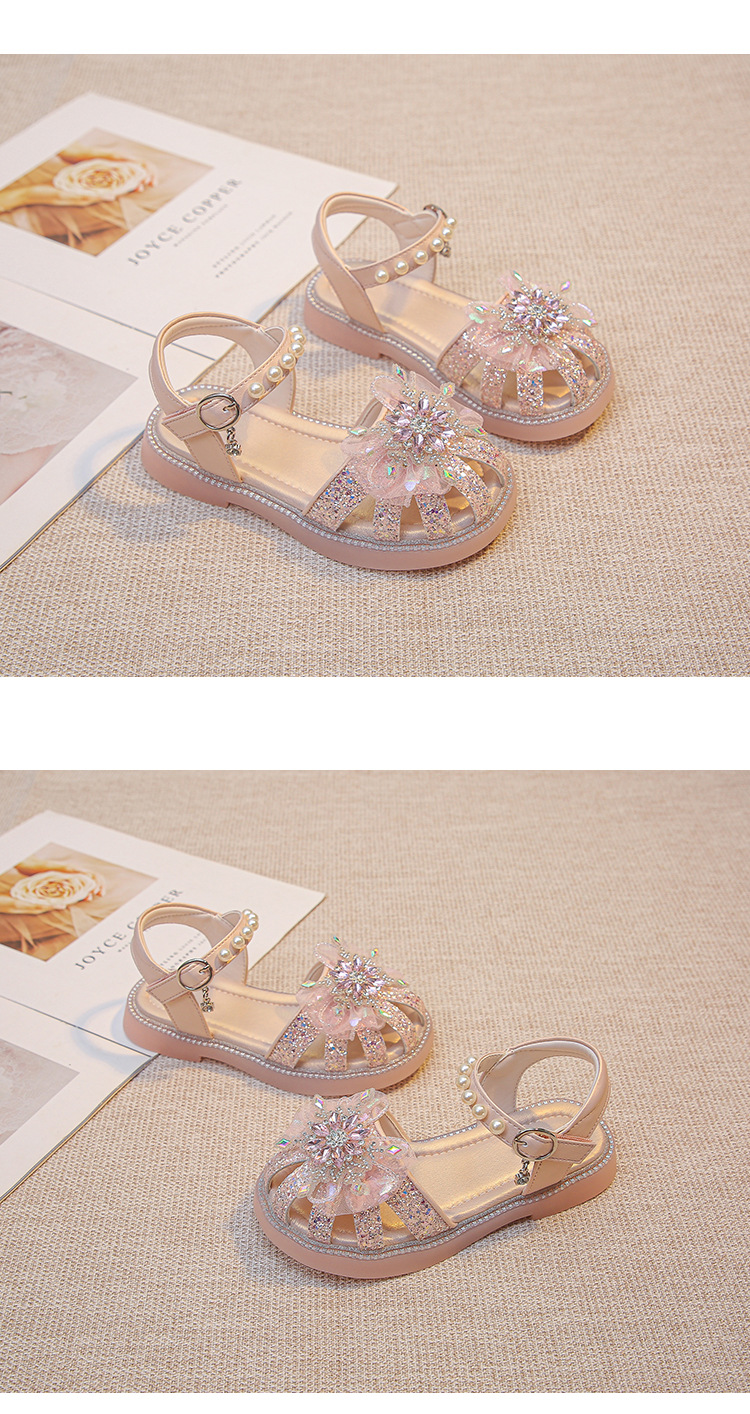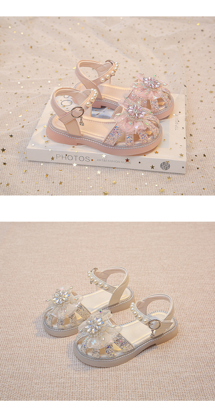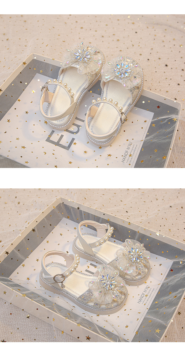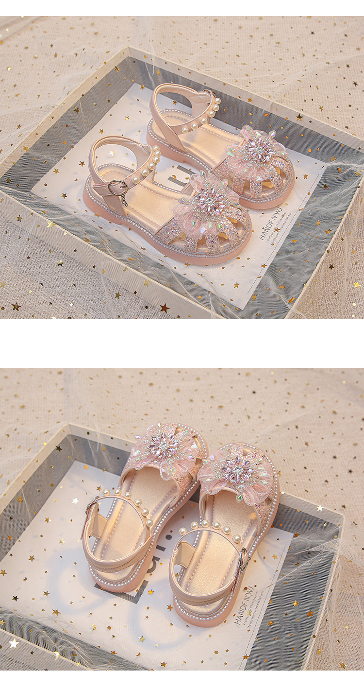 2025 여름 달콤한 스타 다이아몬드 소녀 공주 신발 6-12 세 중공 미끄럼 방지 어린이 새로운 크리스탈 샌들스토어 가기