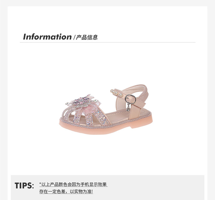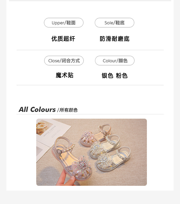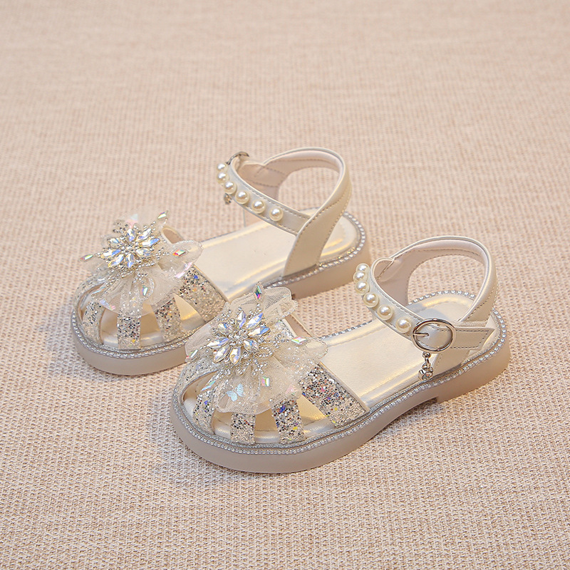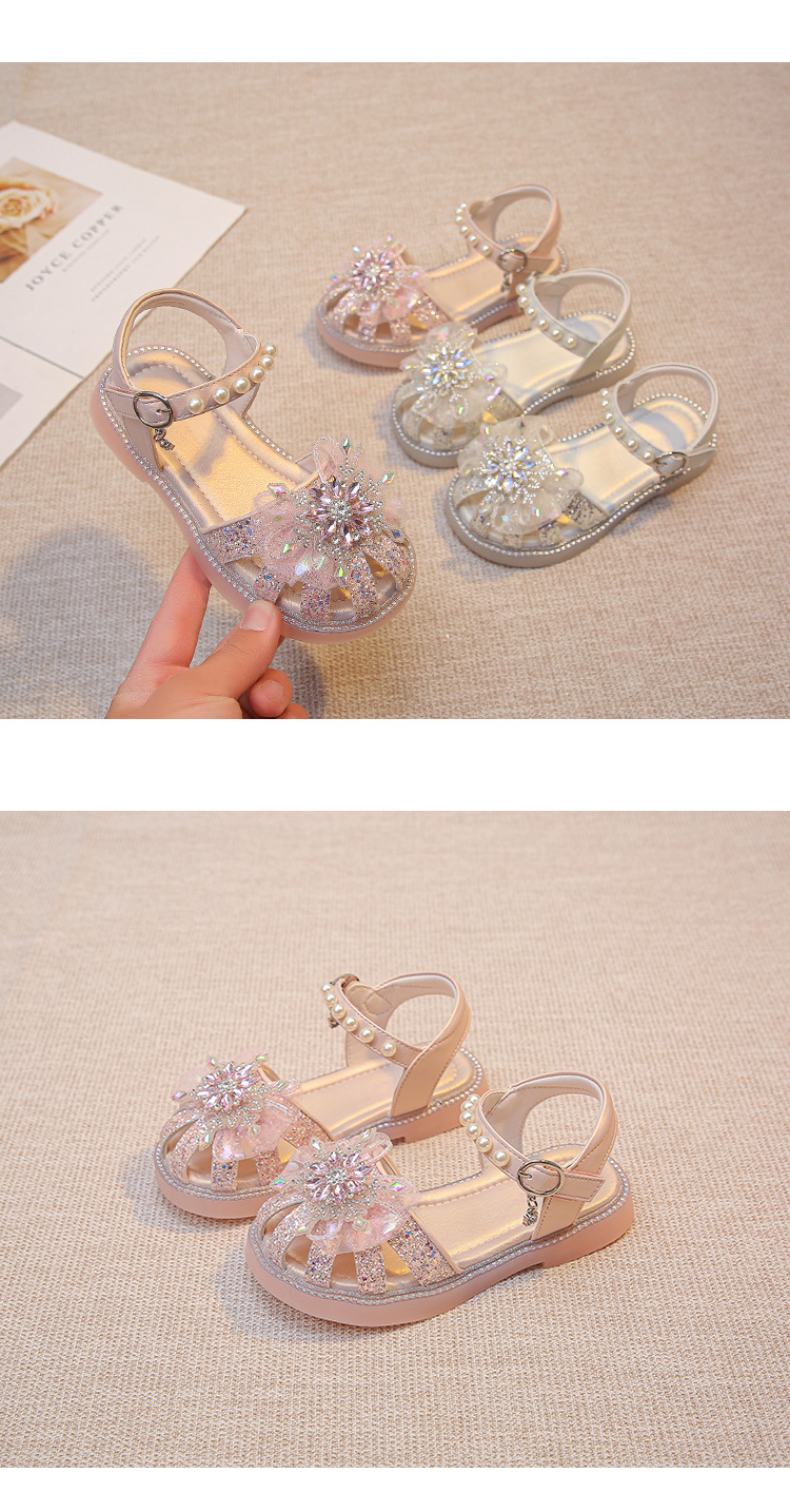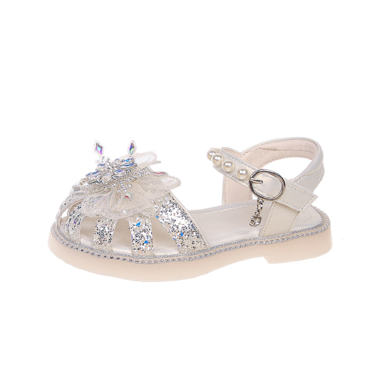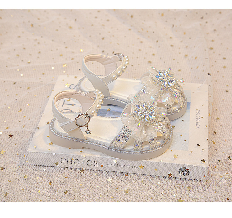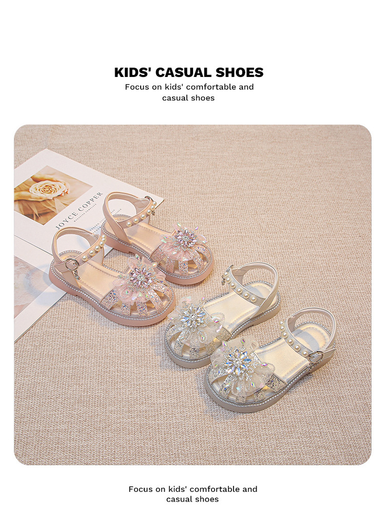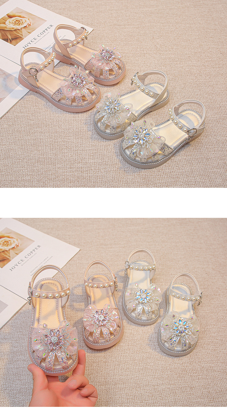 2025 여름 달콤한 스타 다이아몬드 소녀 공주 신발 6-12 세 중공 미끄럼 방지 어린이 새로운 크리스탈 샌들스토어 가기