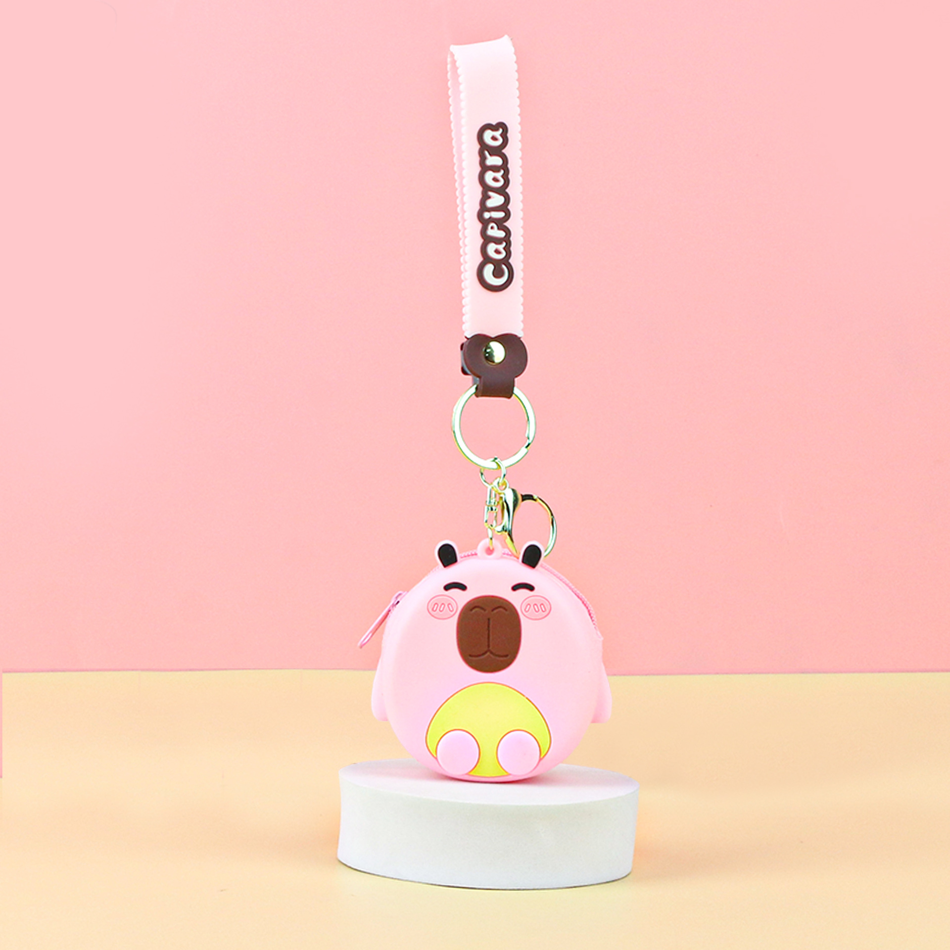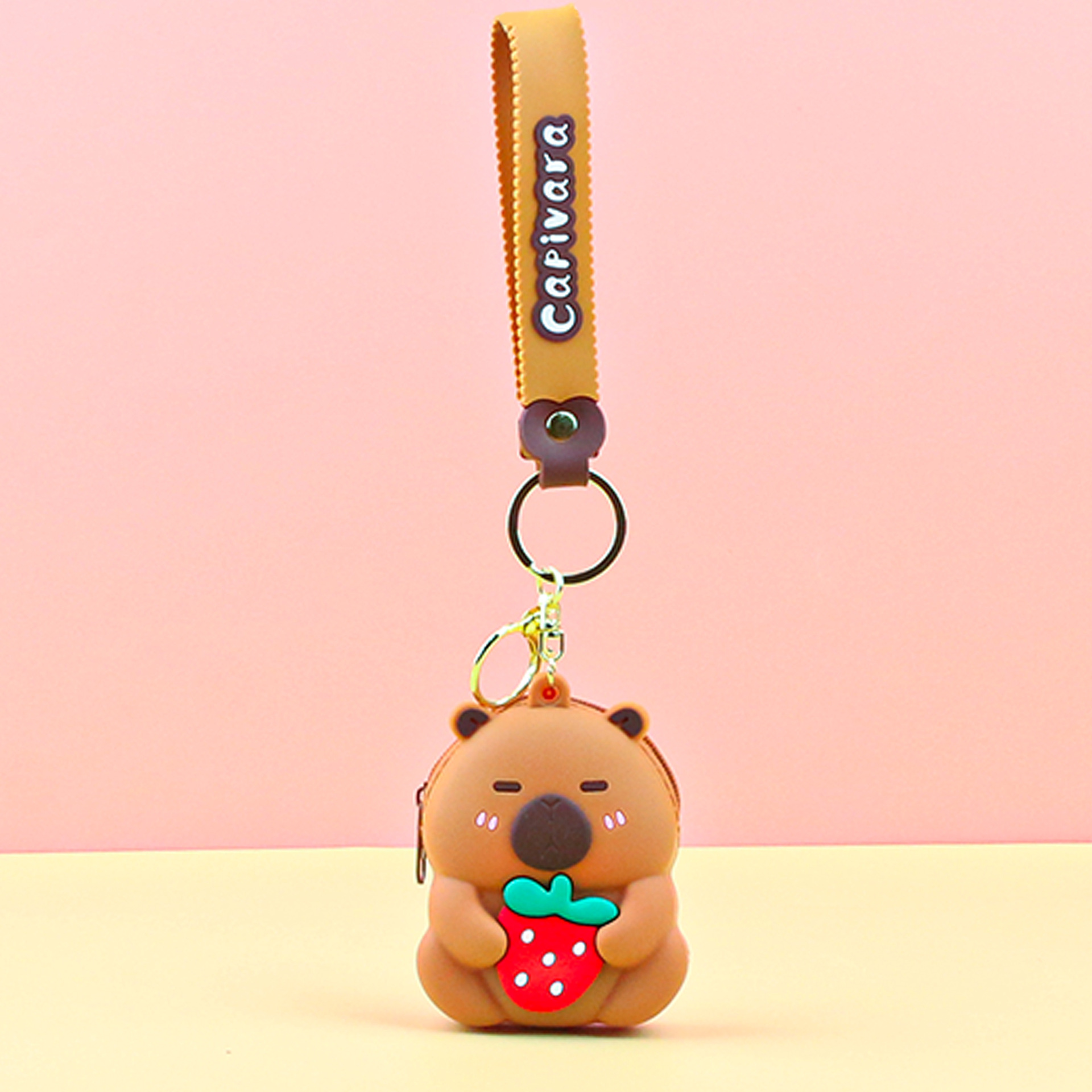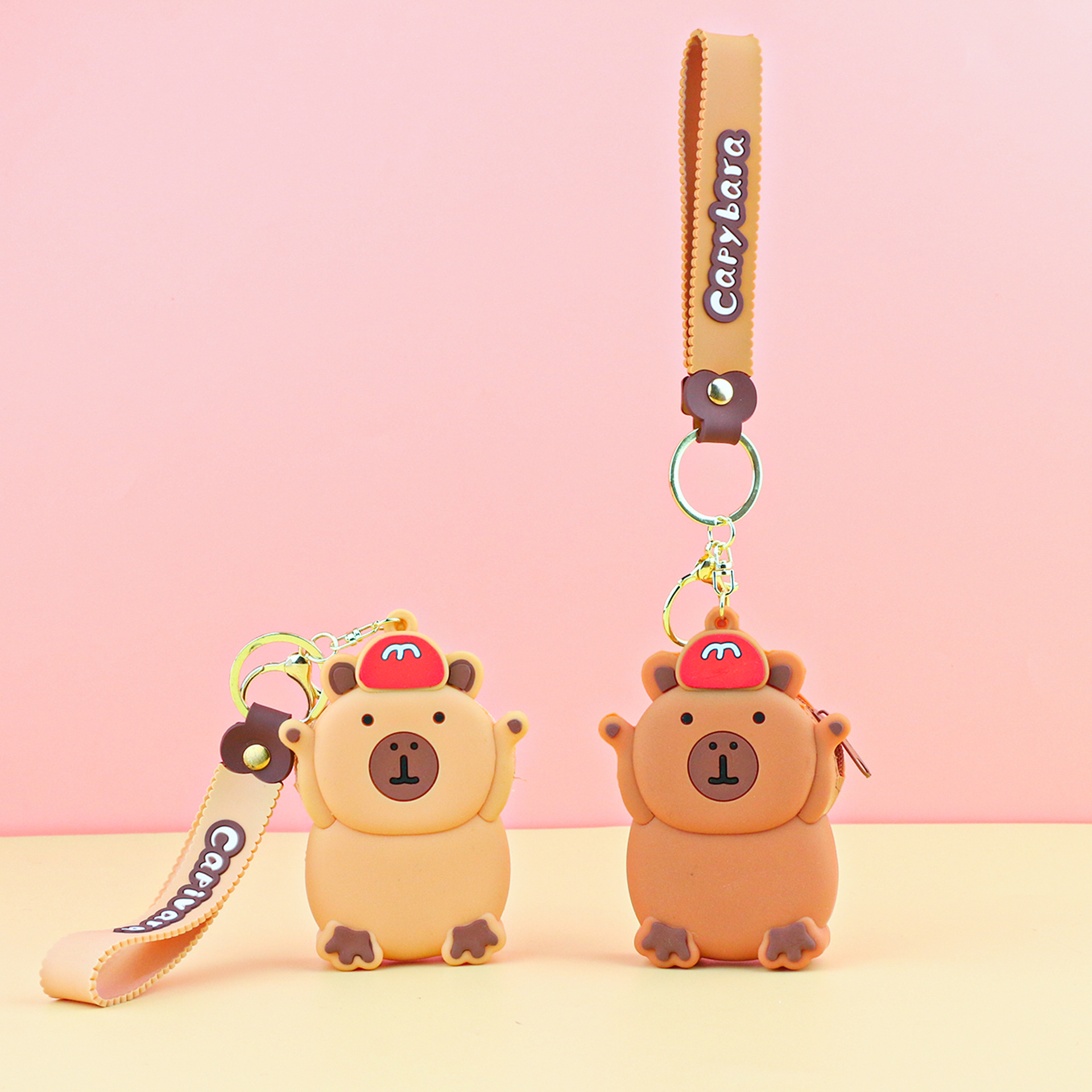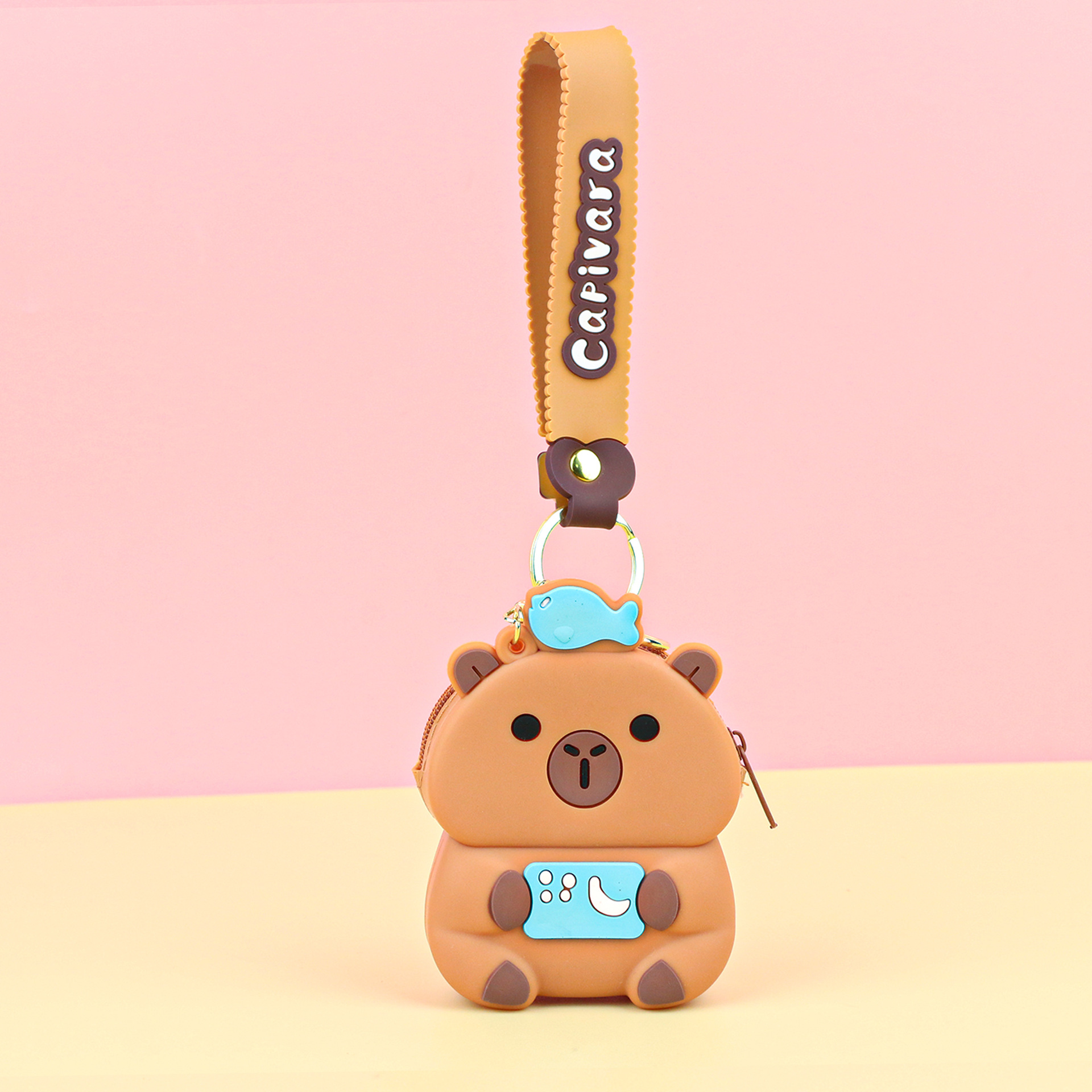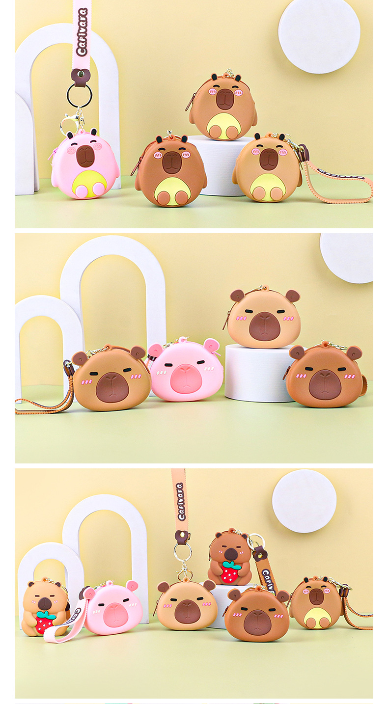 카피발라 실리콘 동전 지갑 열쇠고리 펜던트 만화 지갑 미니 수납 가방 책가방 펜던트 이어폰 가방