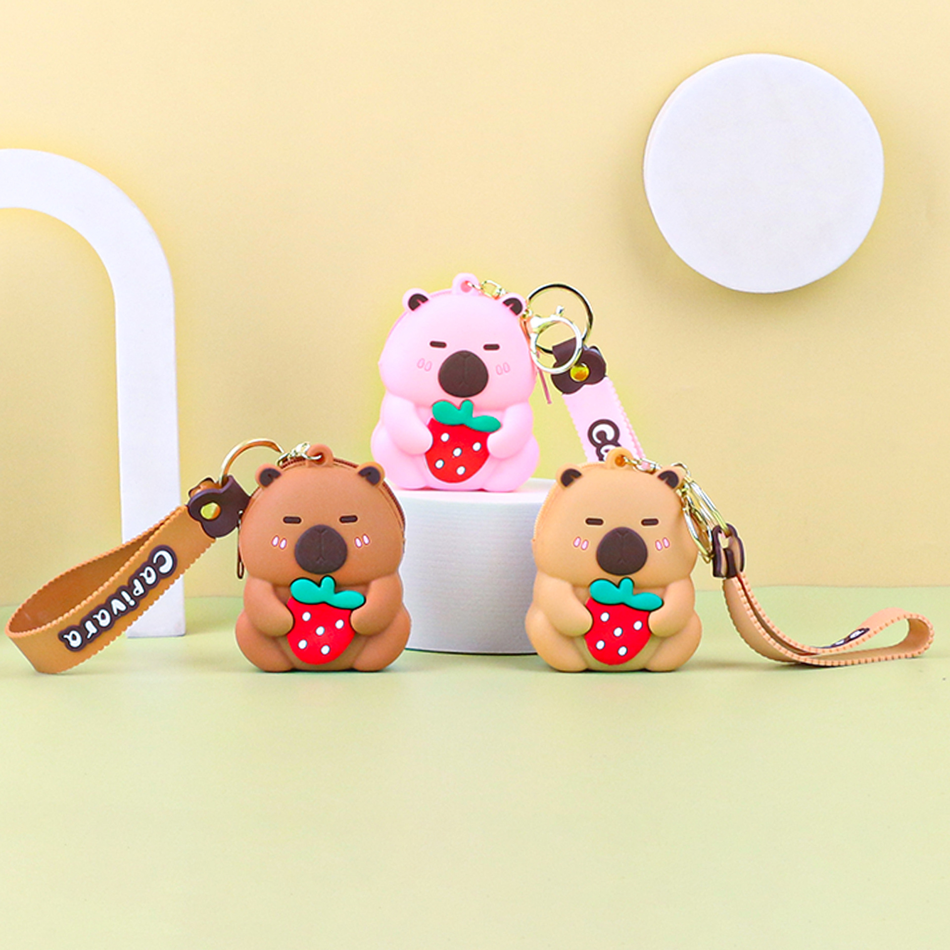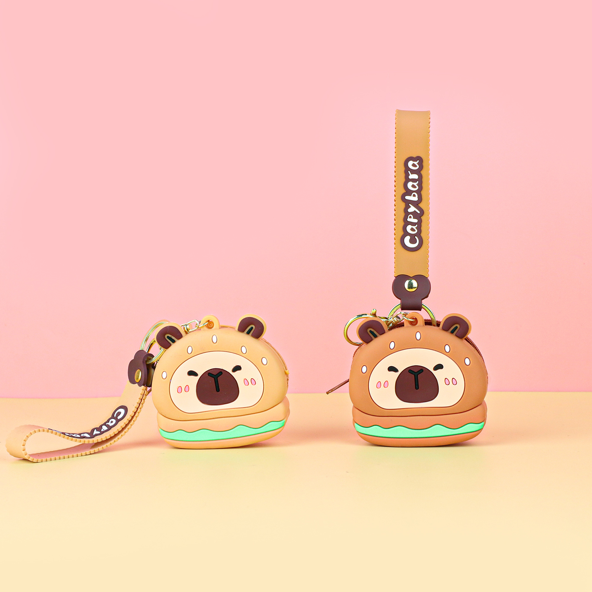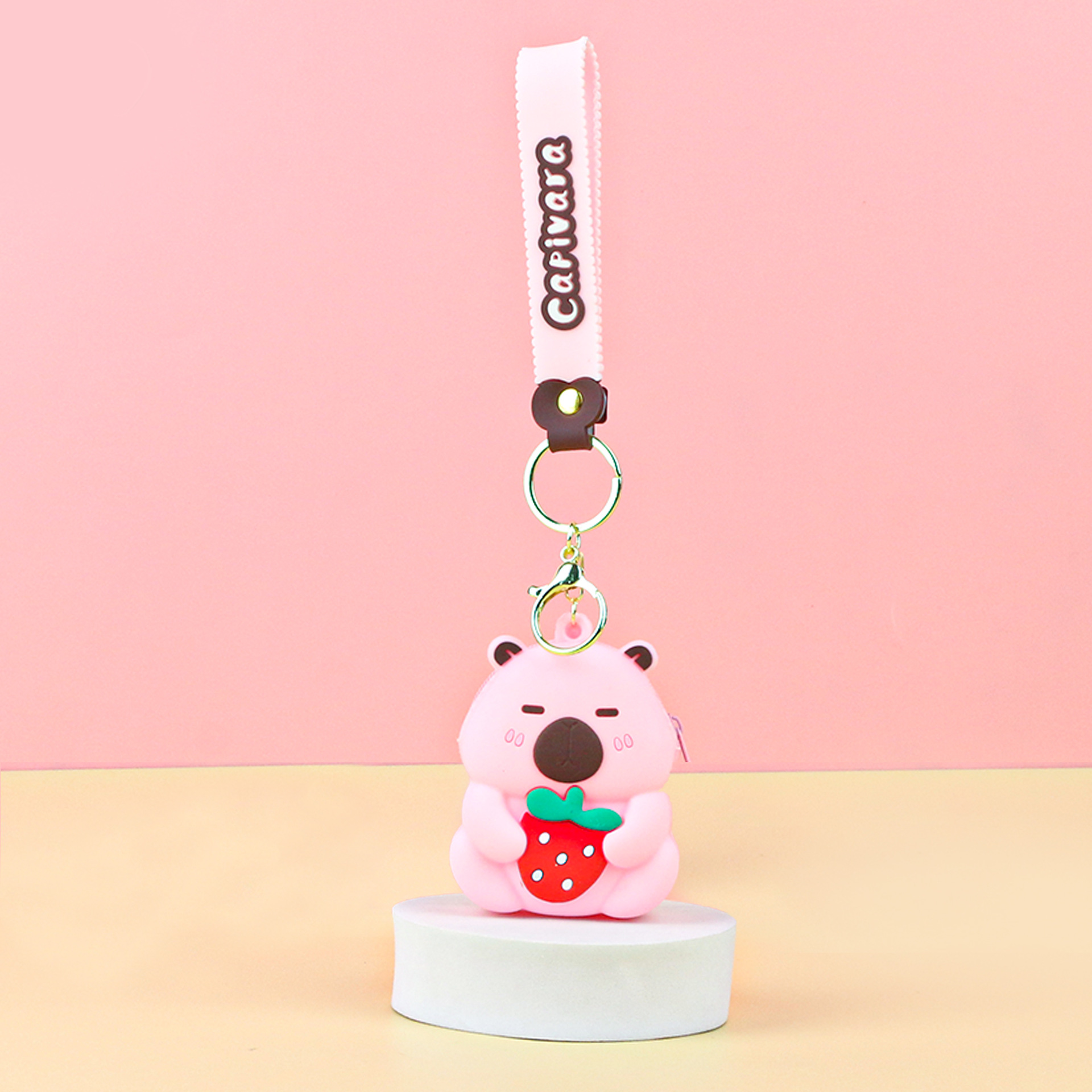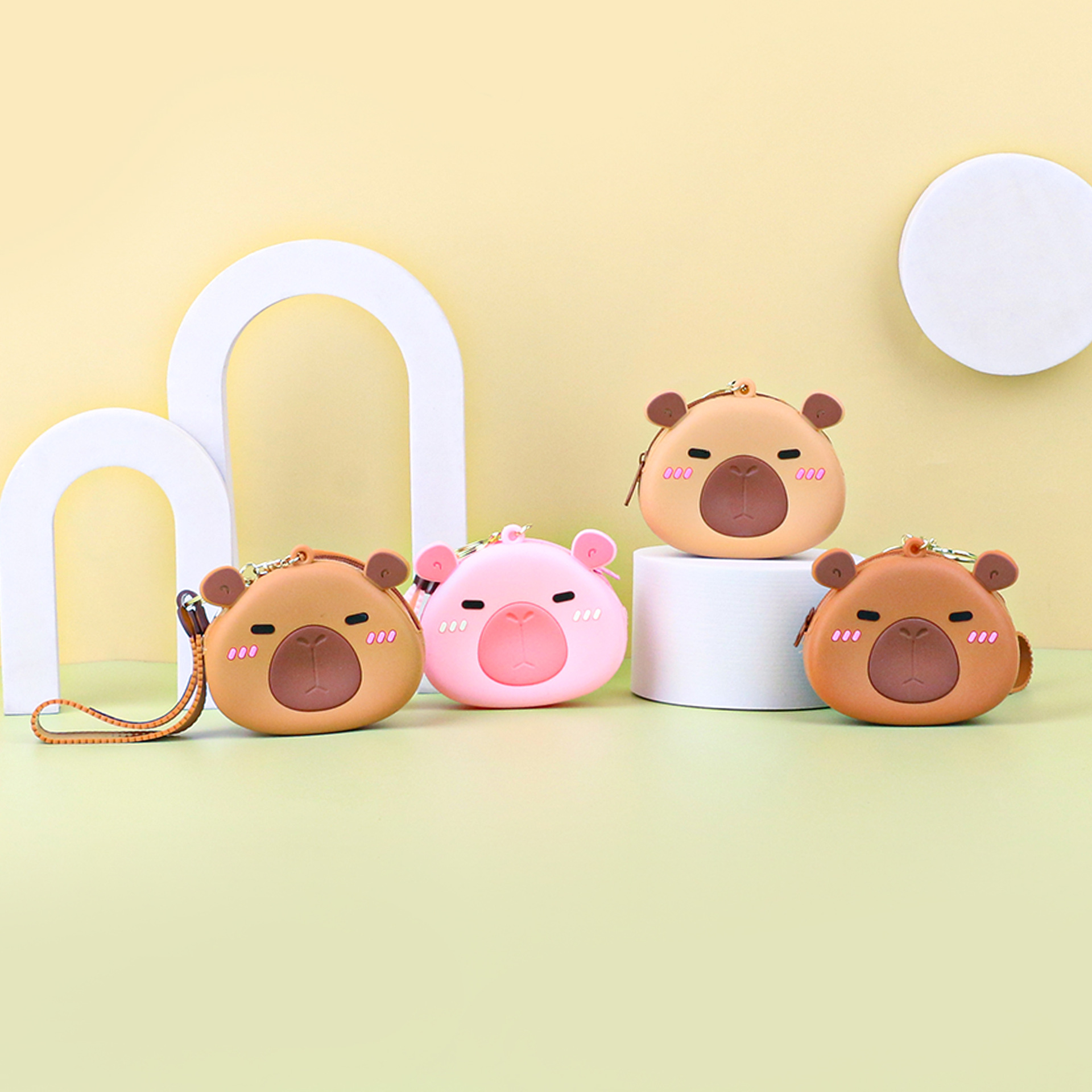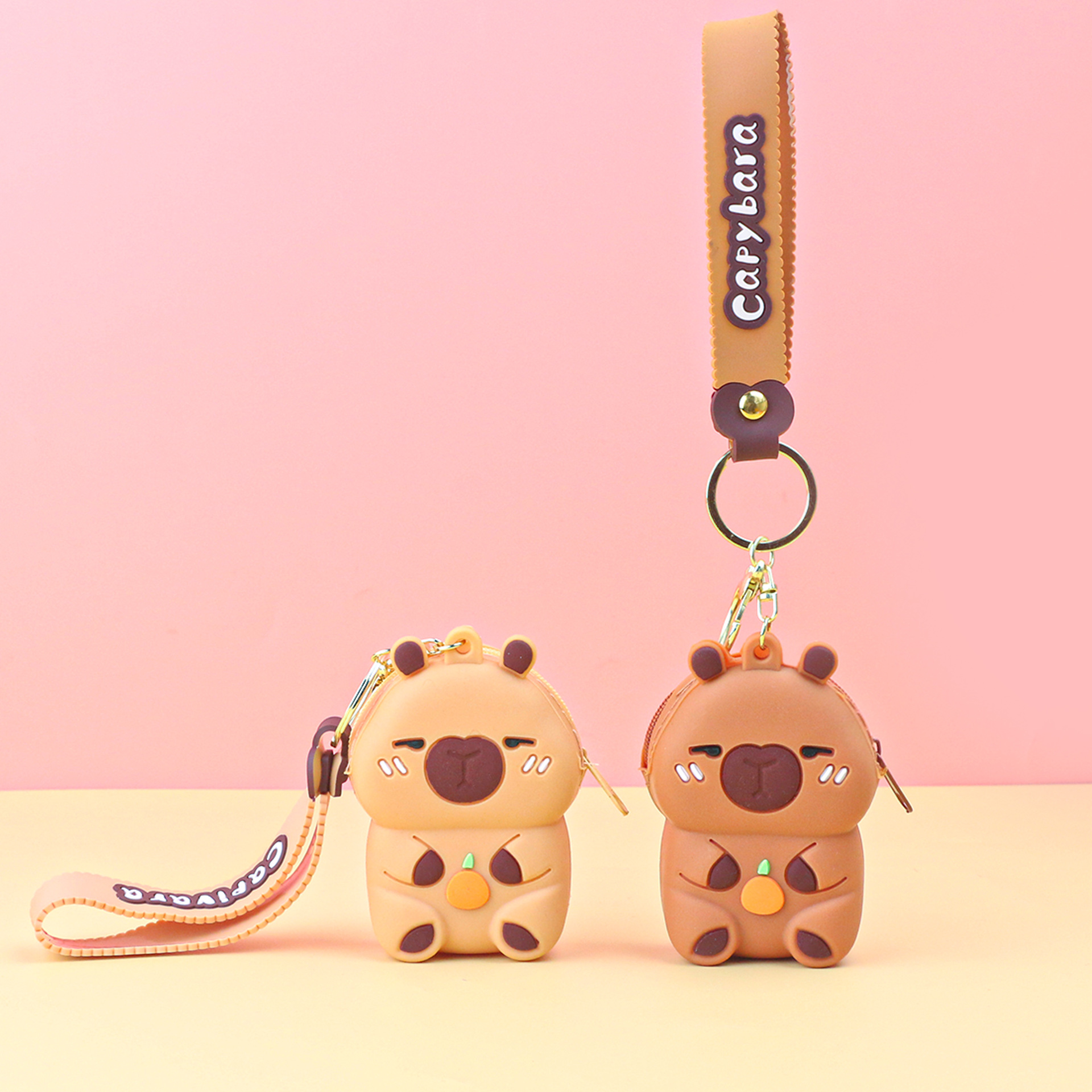 카피발라 실리콘 동전 지갑 열쇠고리 펜던트 만화 지갑 미니 수납 가방 책가방 펜던트 이어폰 가방