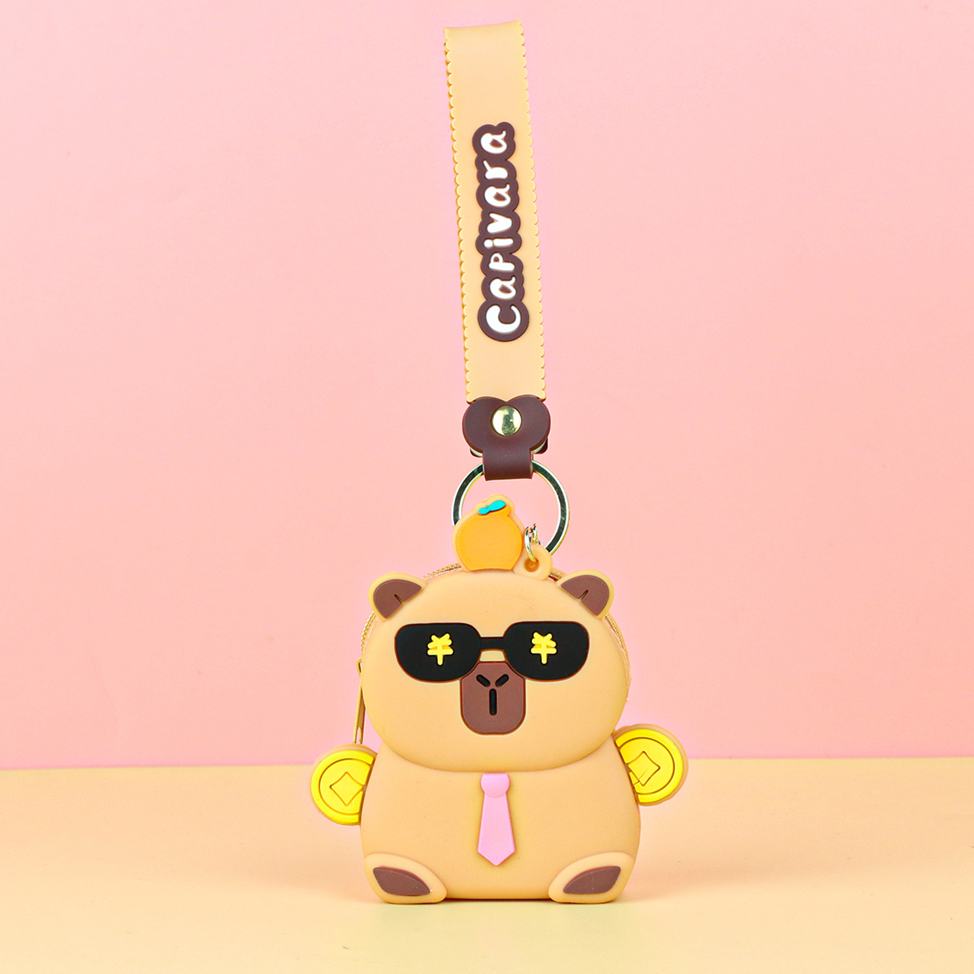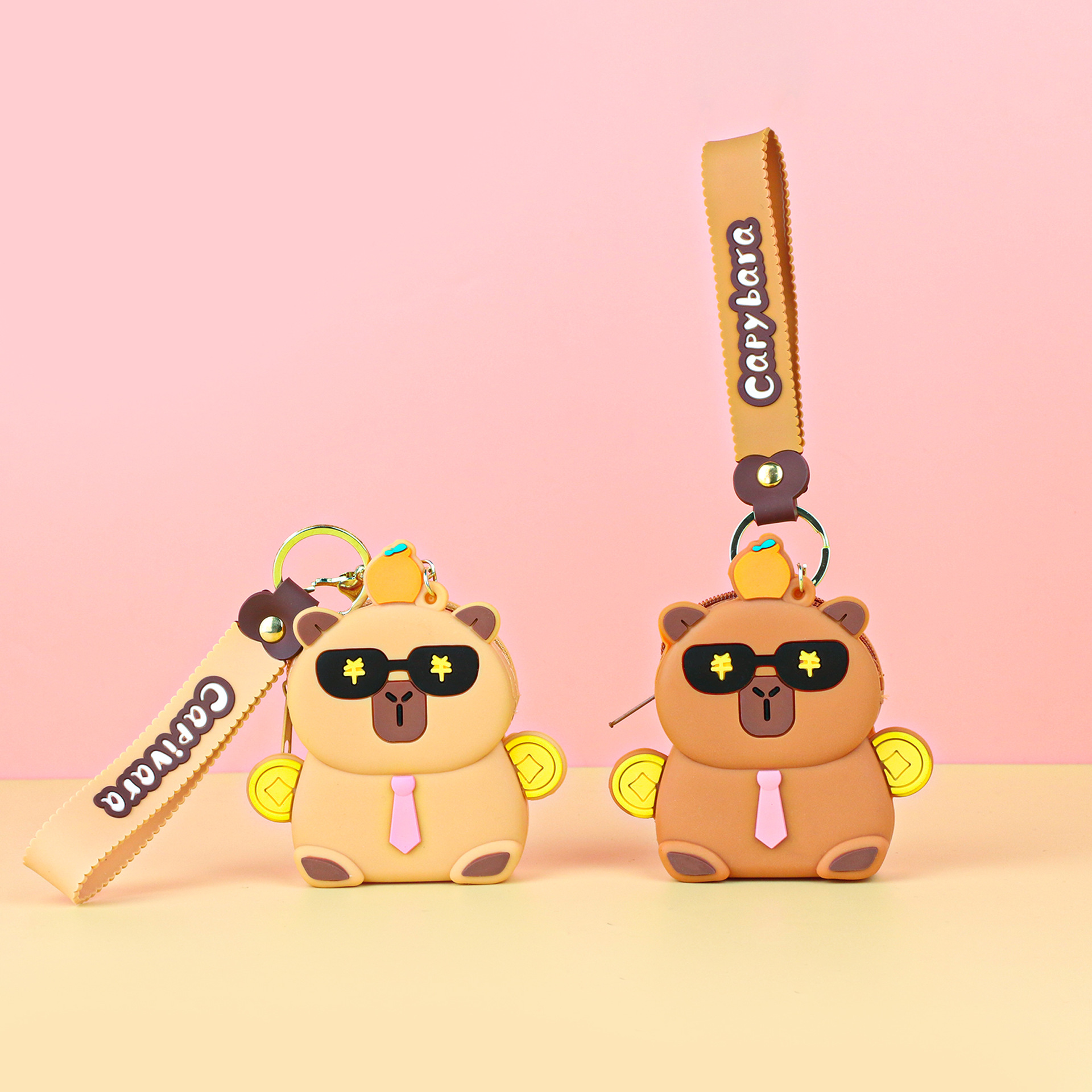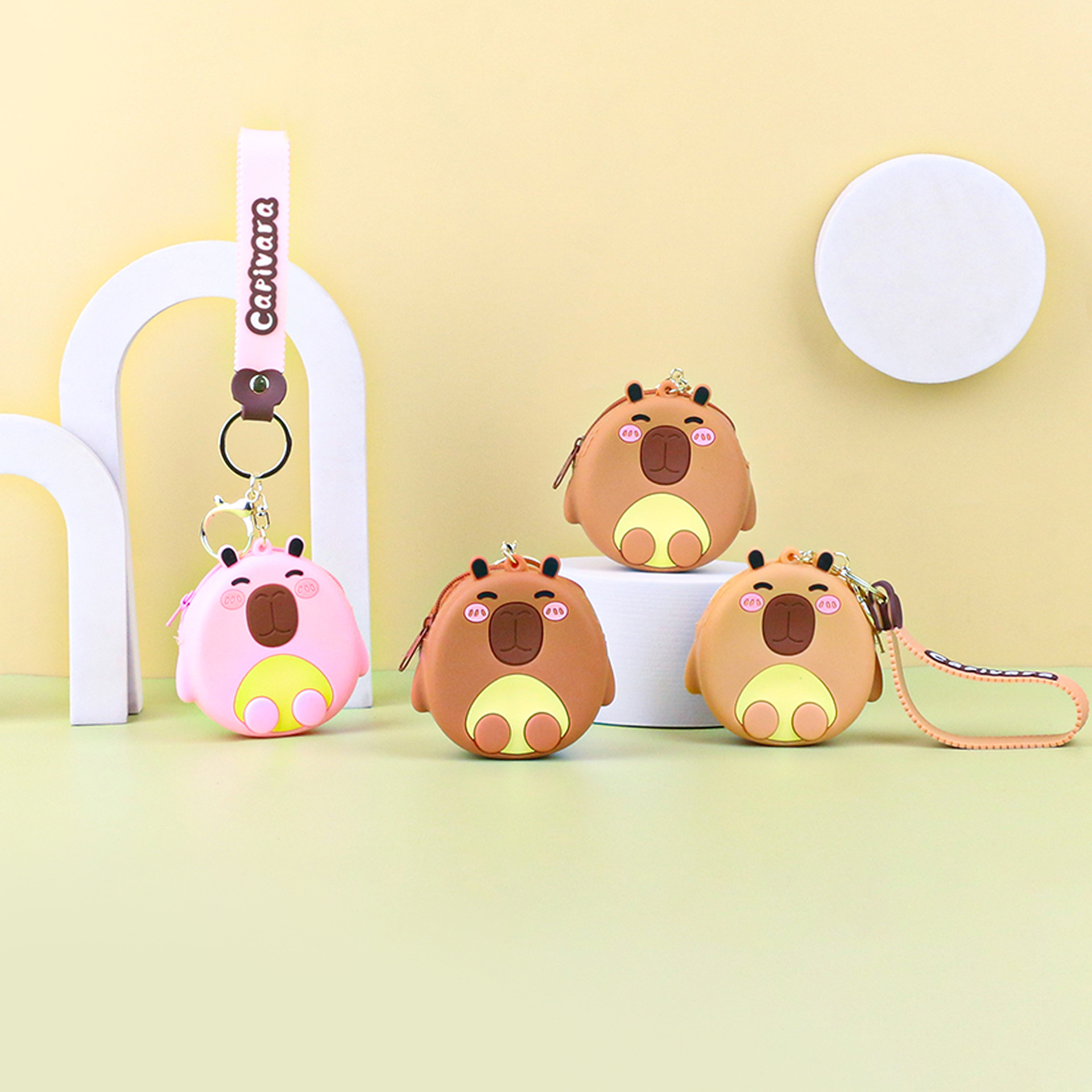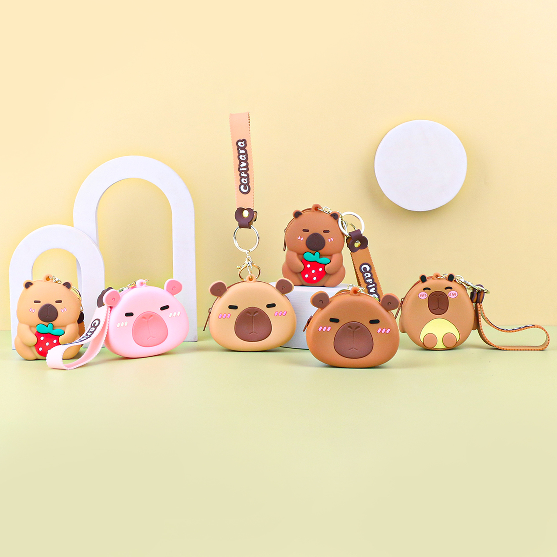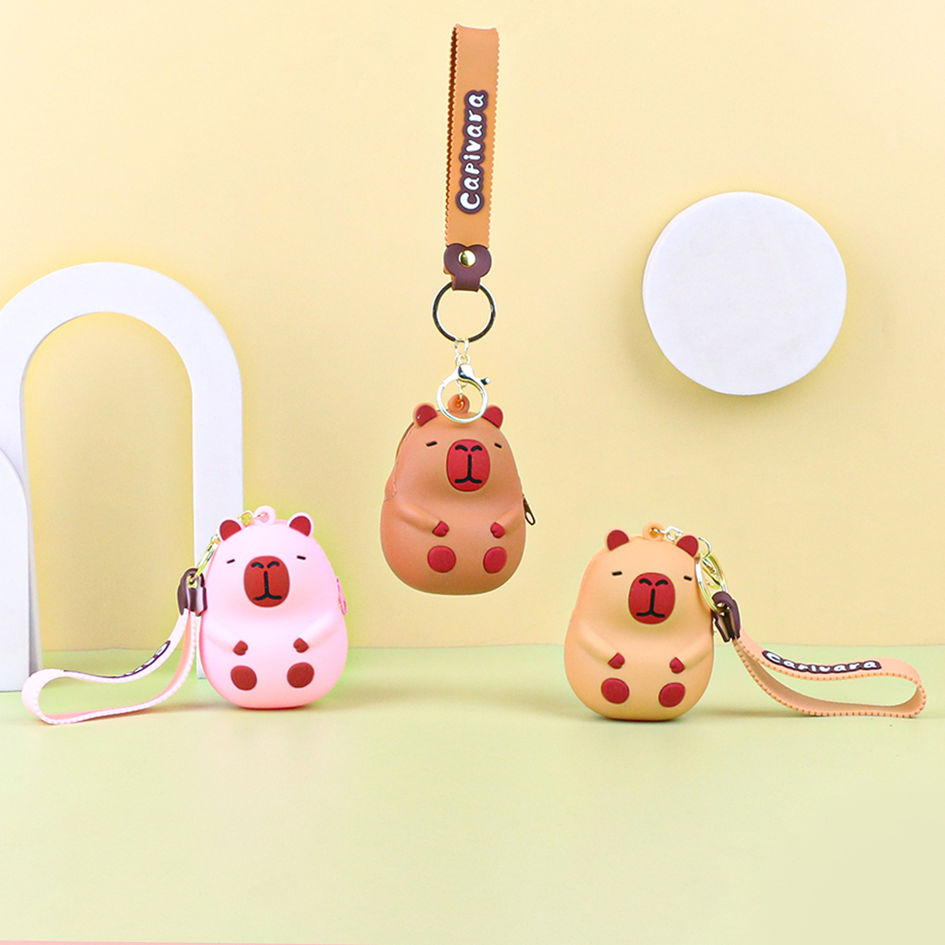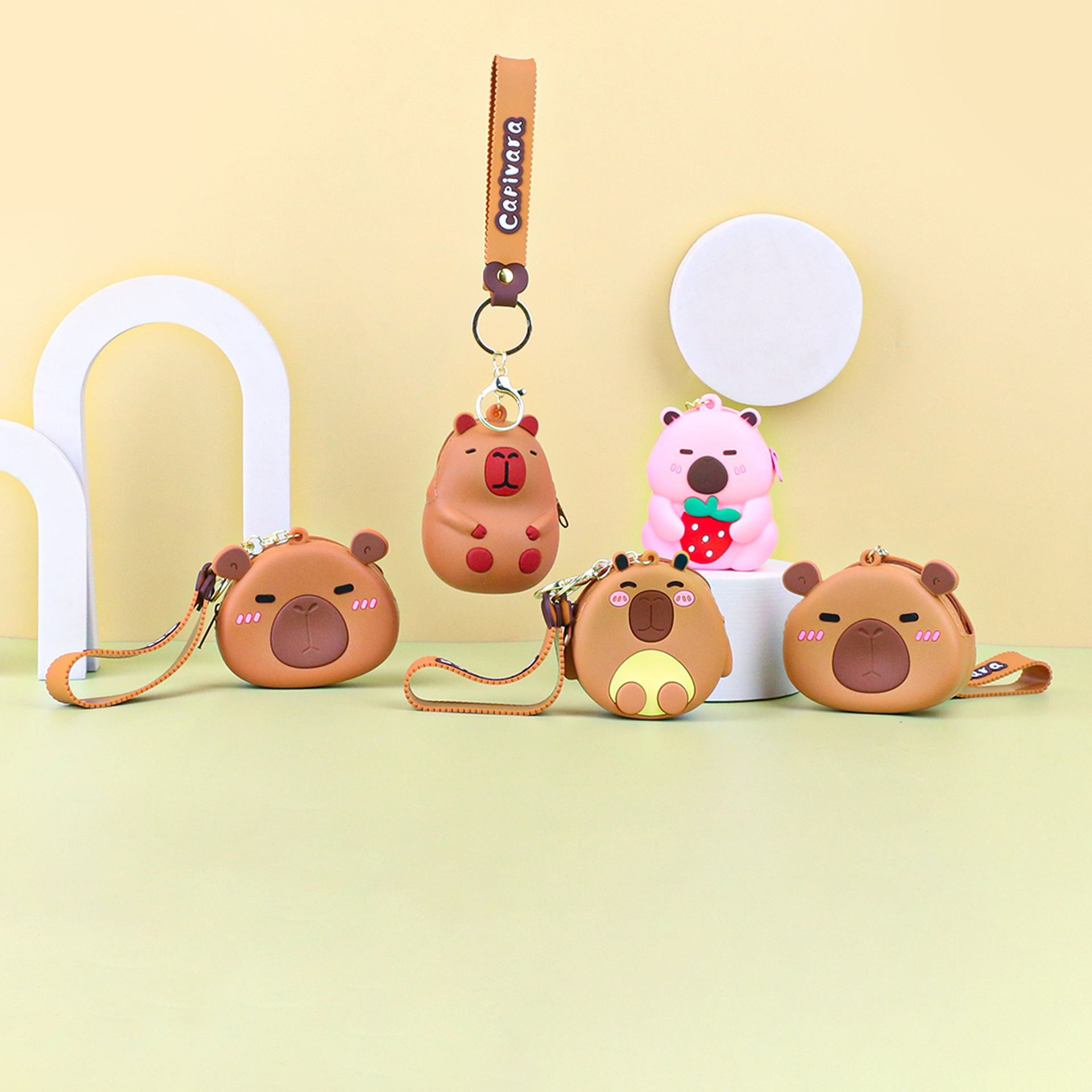 카피발라 실리콘 동전 지갑 열쇠고리 펜던트 만화 지갑 미니 수납 가방 책가방 펜던트 이어폰 가방