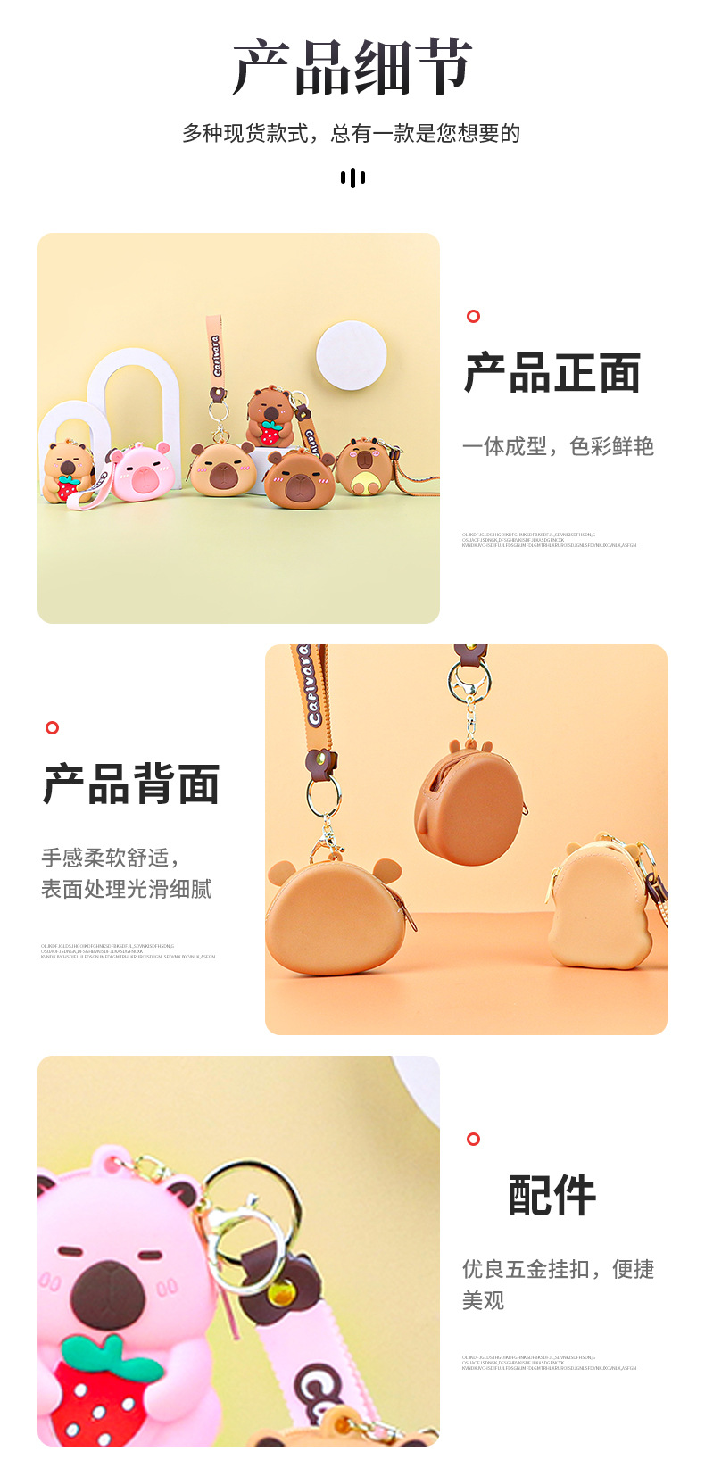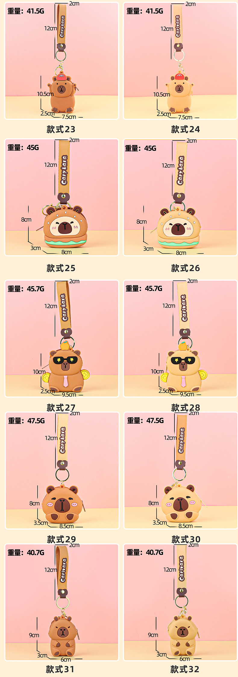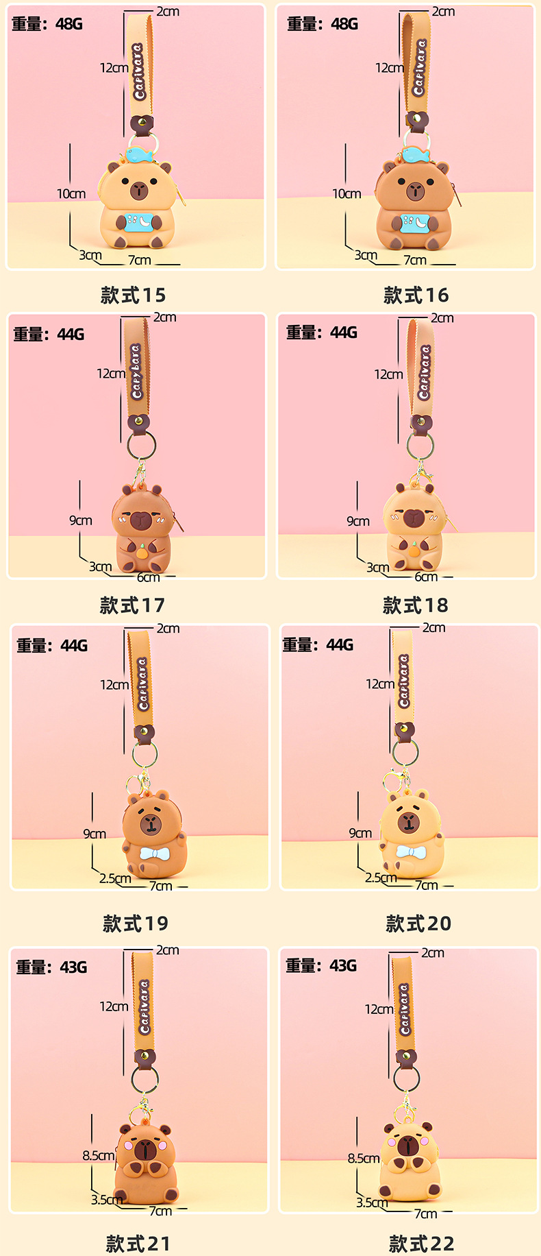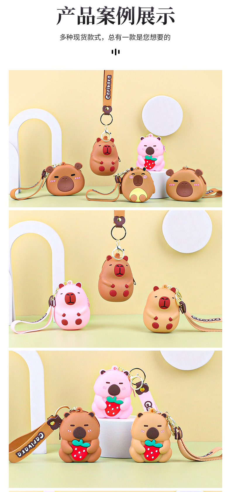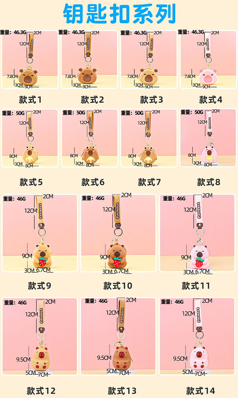 카피발라 실리콘 동전 지갑 열쇠고리 펜던트 만화 지갑 미니 수납 가방 책가방 펜던트 이어폰 가방