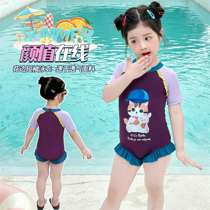 여자 반팔 원피스 수영복 속건성 통기성 여름 2025 새로운 어린이 휴가 아기 전문 훈련 수영복스토어 가기
