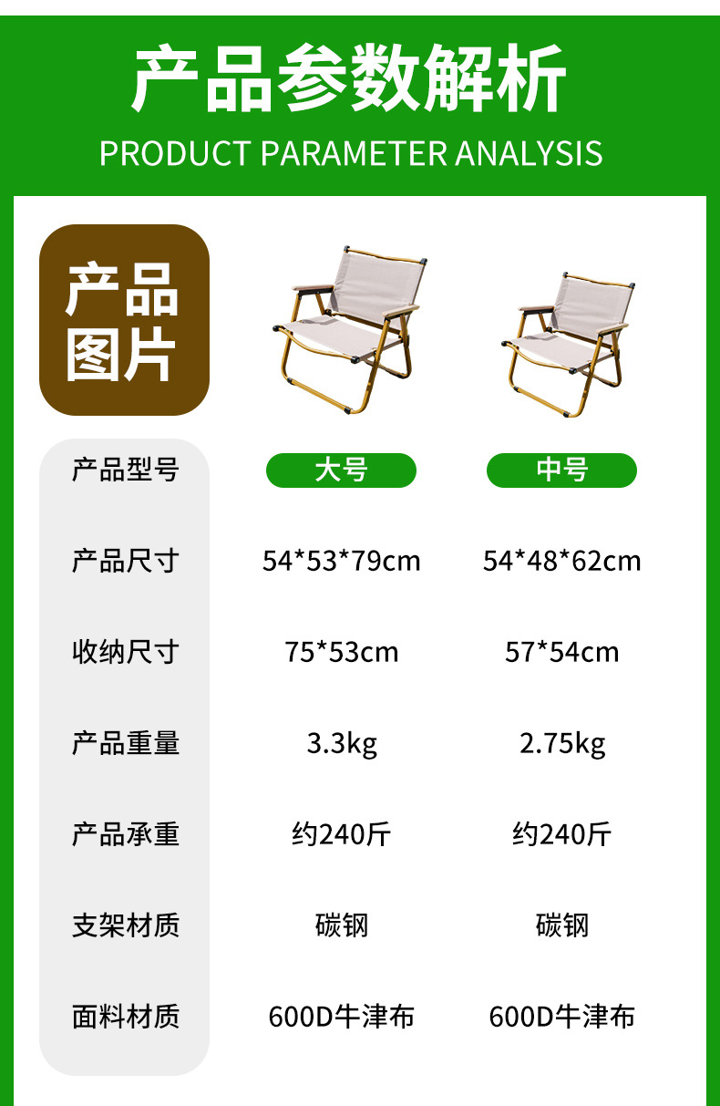 • 카키색 대형 커밋 접이식 의자