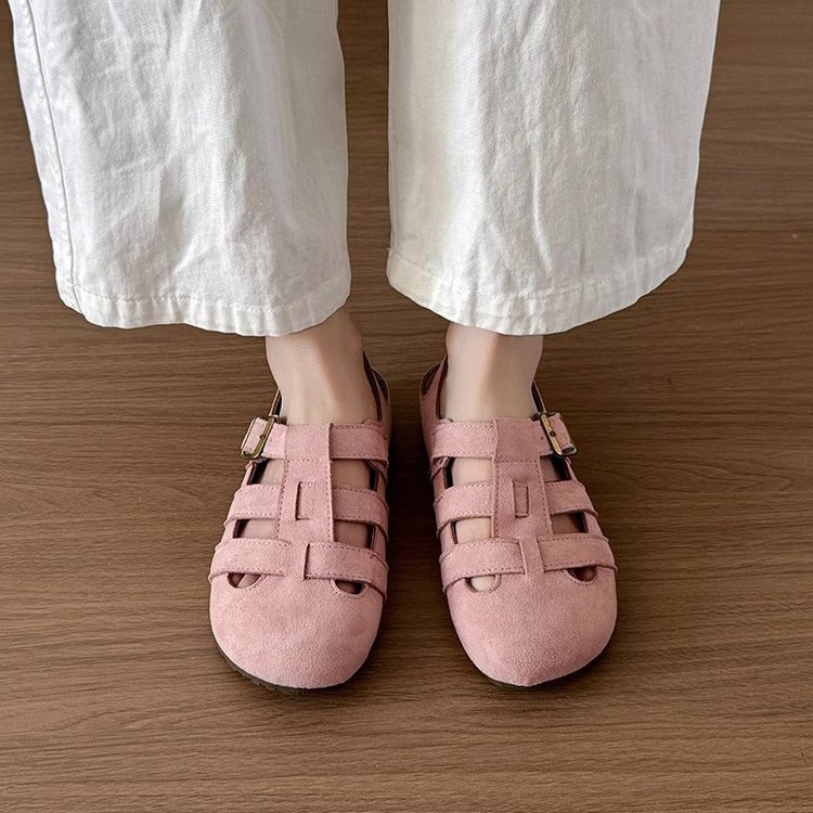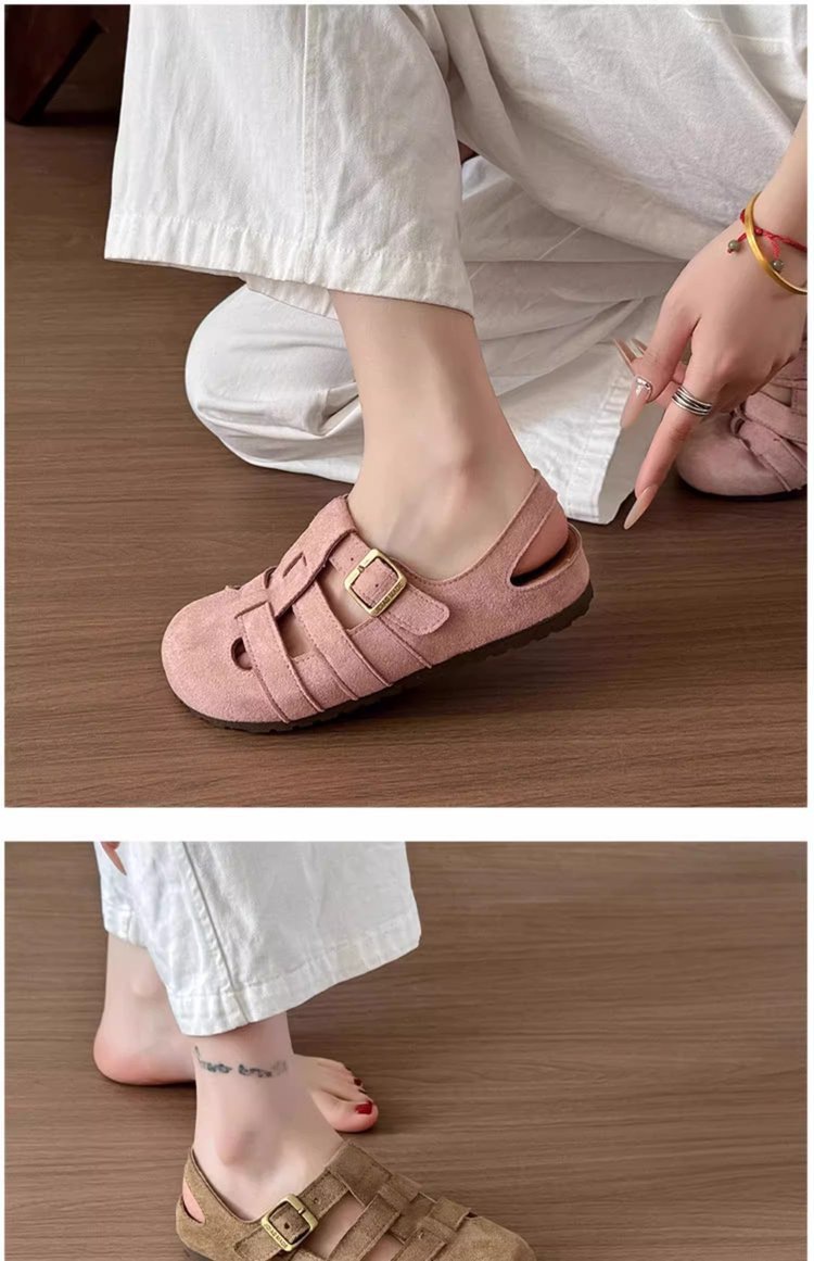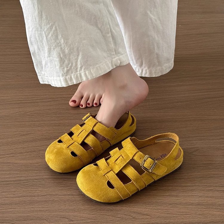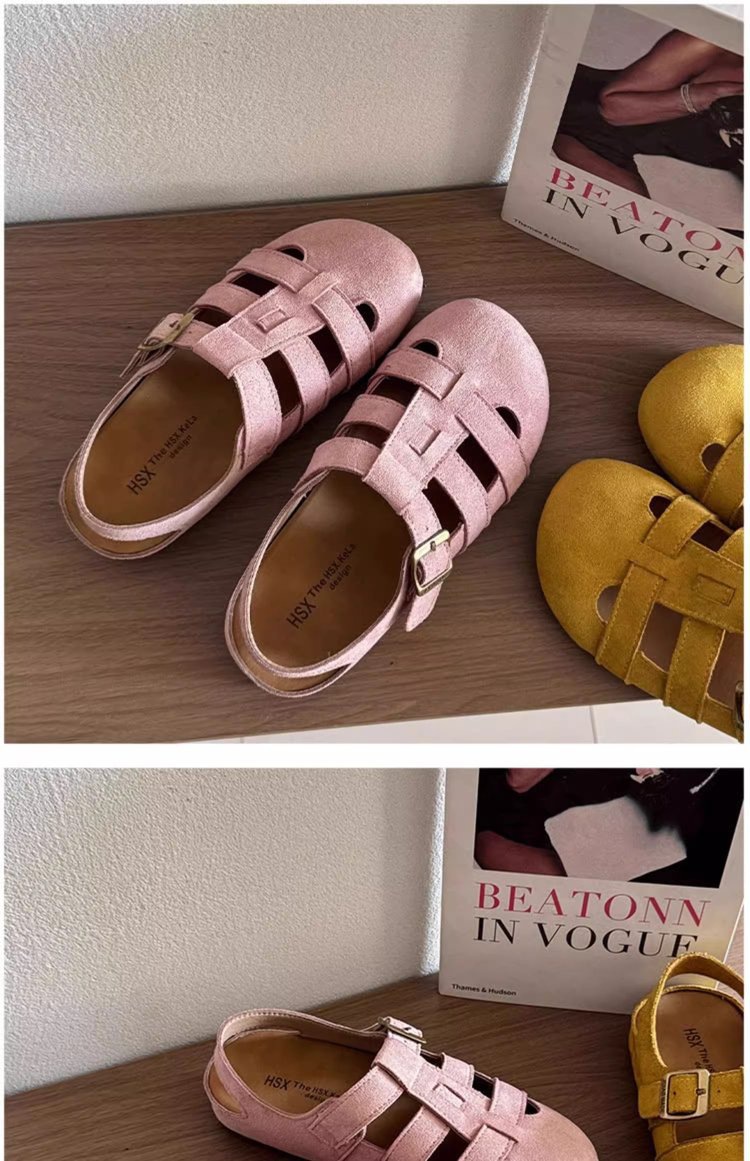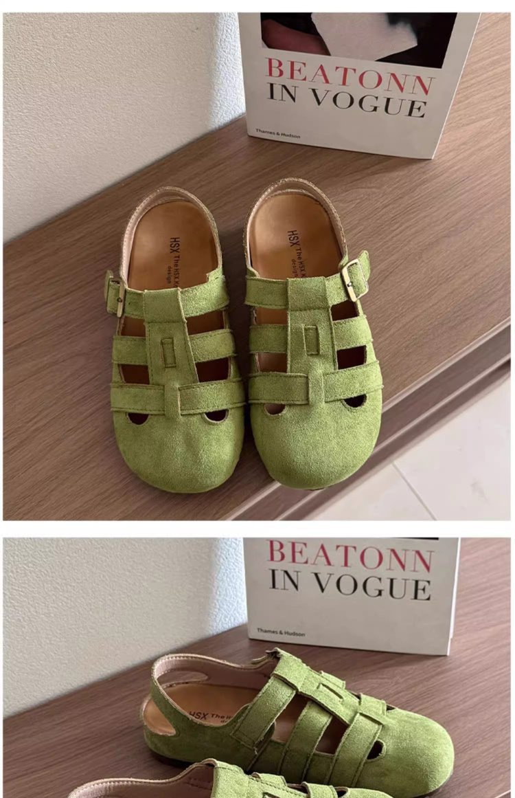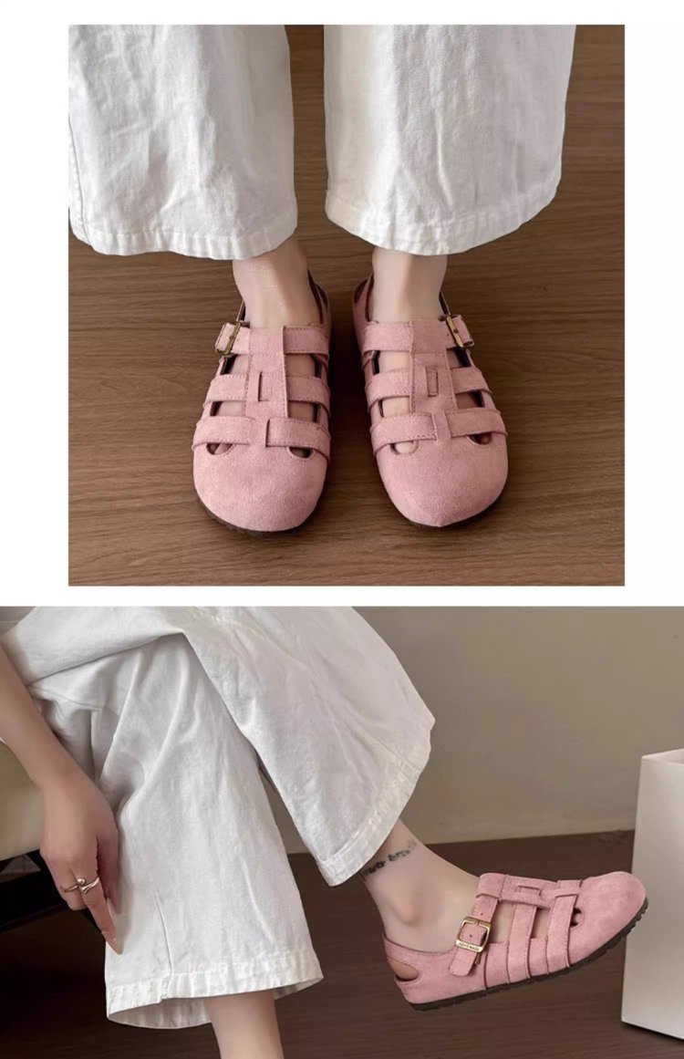여성을위한 레트로 틈새 중공 발가락 반 슬리퍼 2025 여름 새 스타일 외부 착용 두꺼운 밑창 캐주얼 Birkenstock 신발스토어 가기
