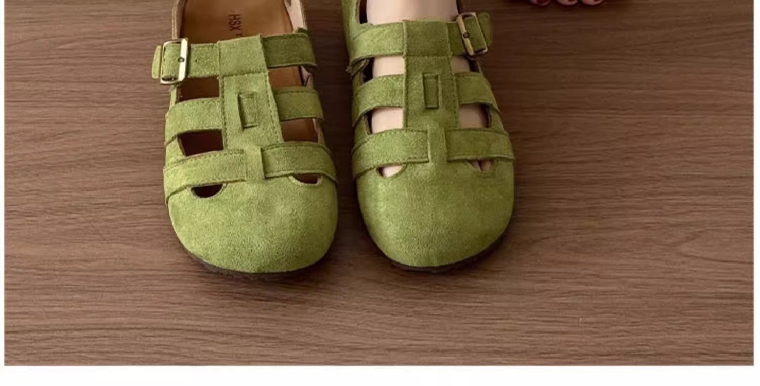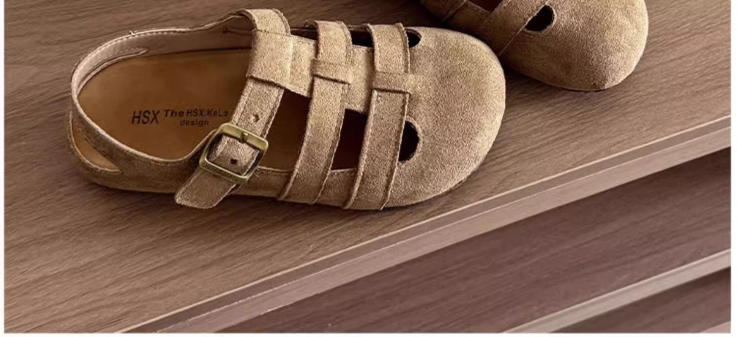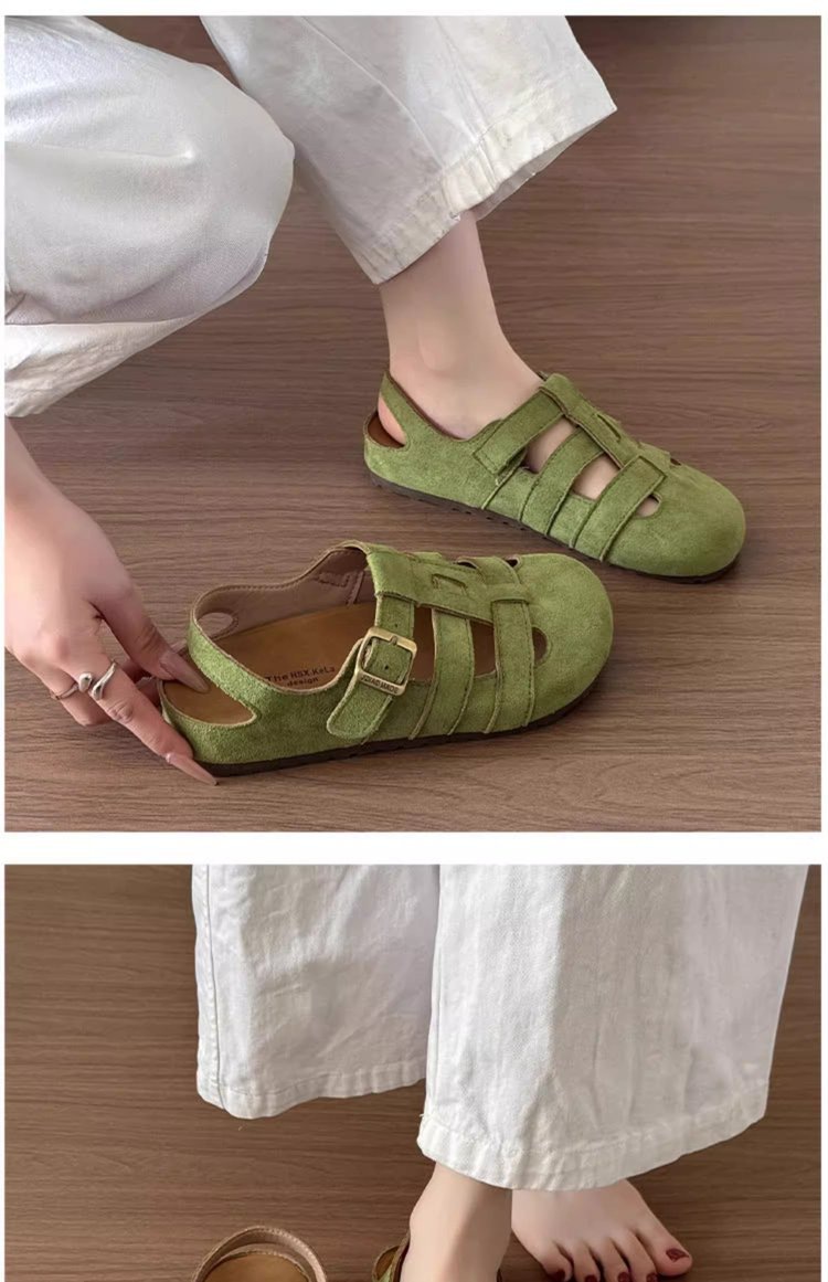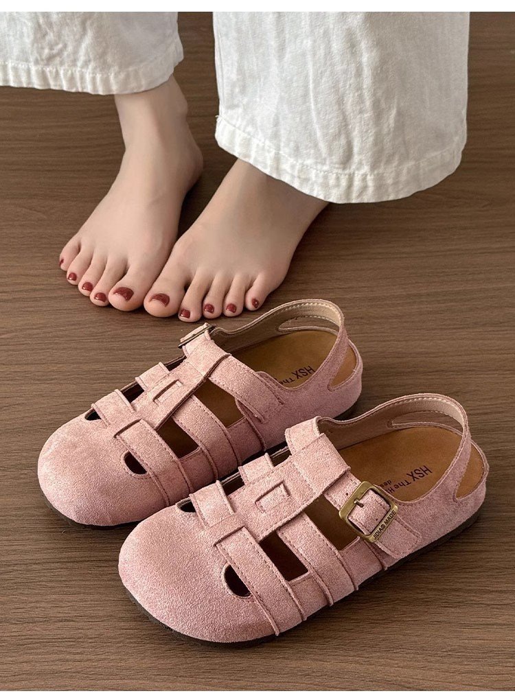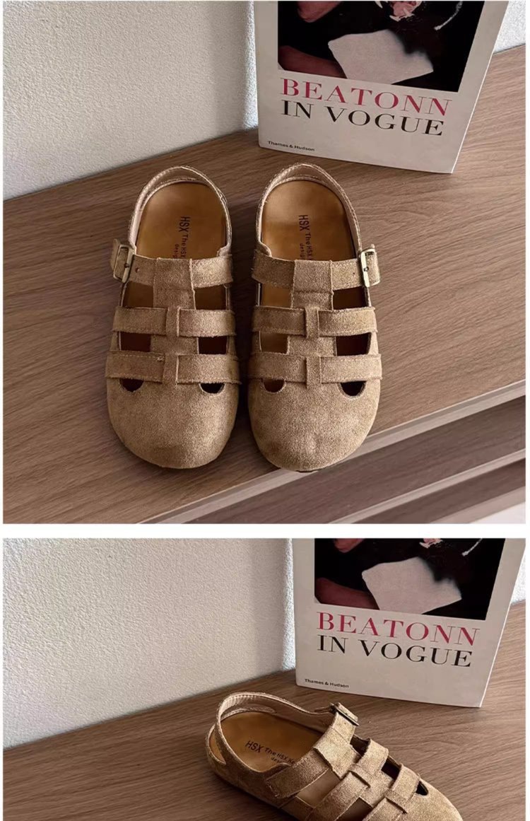 여성을위한 레트로 틈새 중공 발가락 반 슬리퍼 2025 여름 새 스타일 외부 착용 두꺼운 밑창 캐주얼 Birkenstock 신발스토어 가기