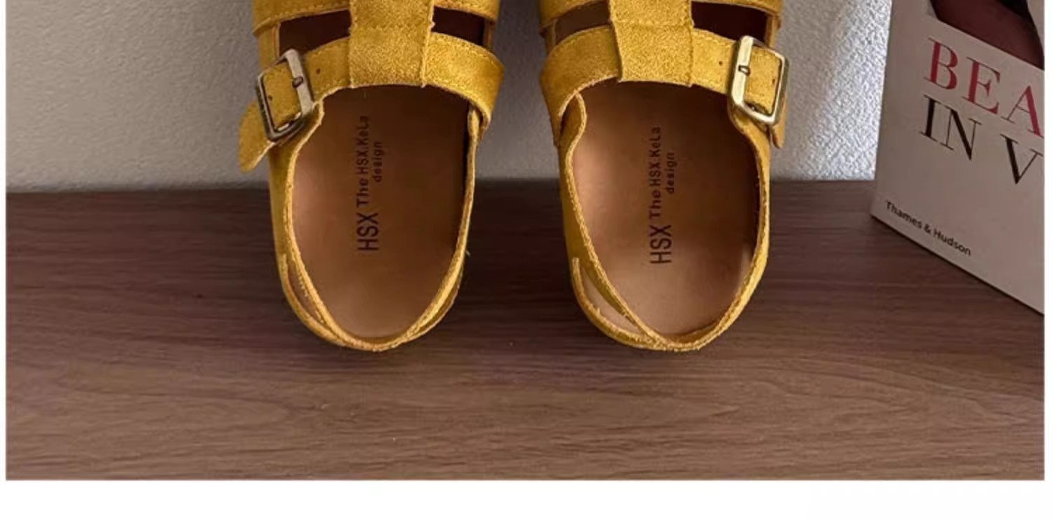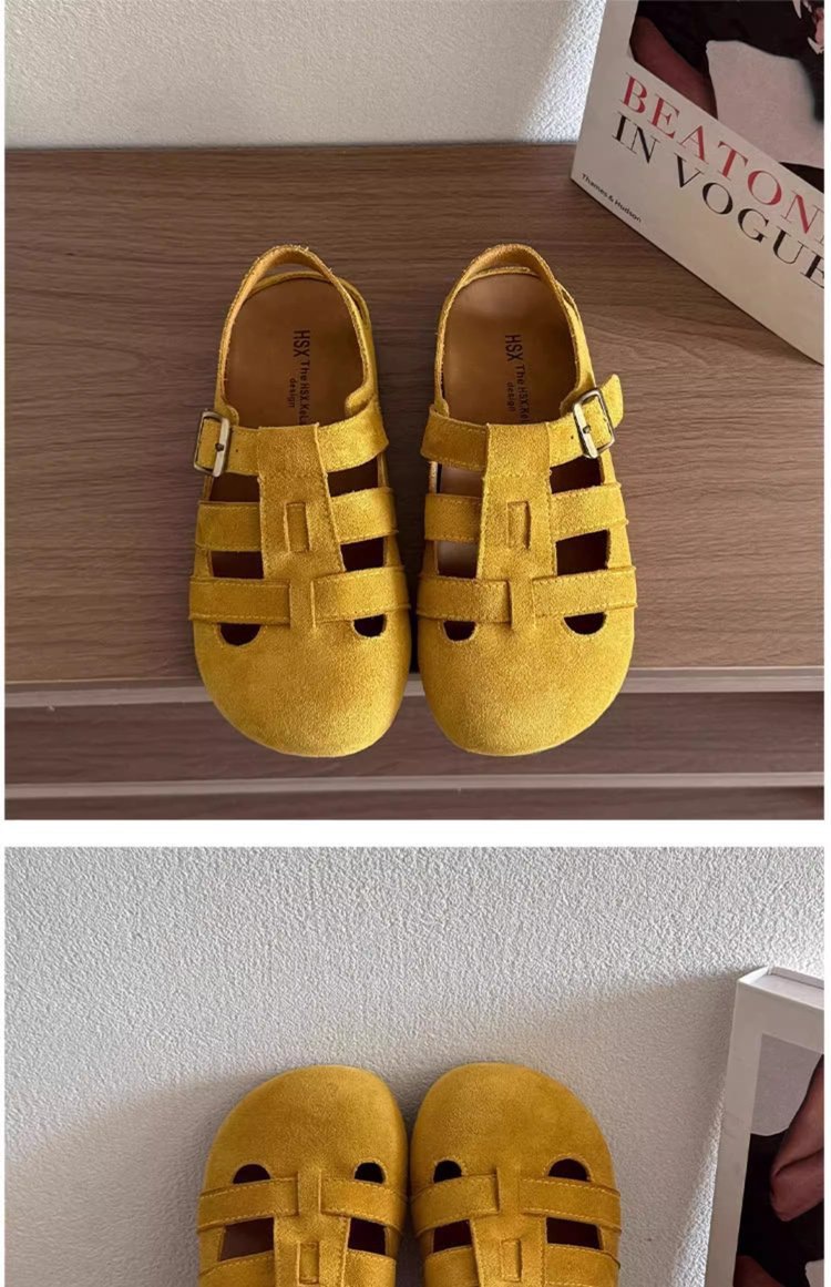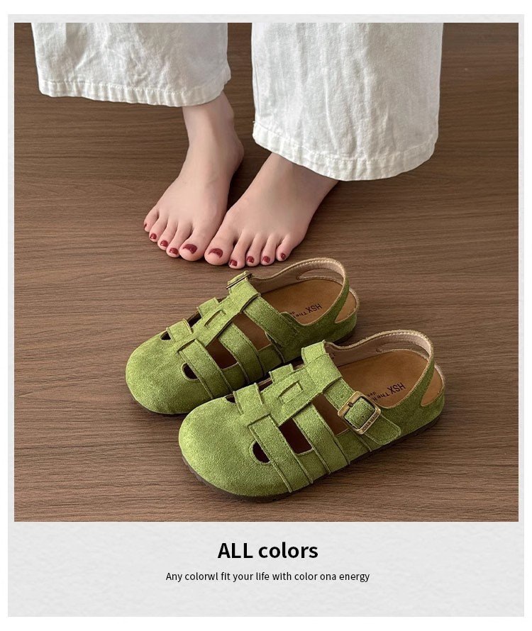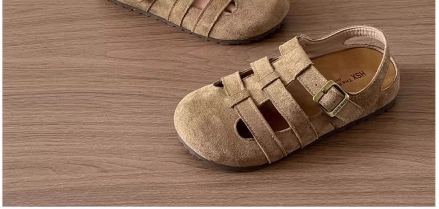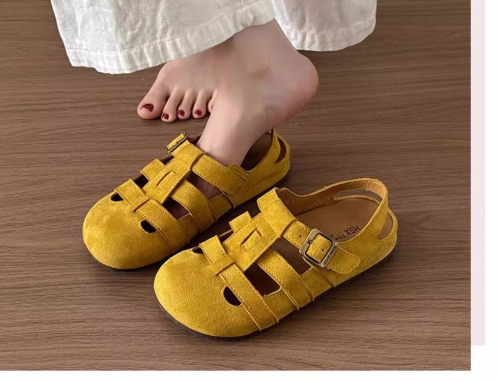 여성을위한 레트로 틈새 중공 발가락 반 슬리퍼 2025 여름 새 스타일 외부 착용 두꺼운 밑창 캐주얼 Birkenstock 신발스토어 가기