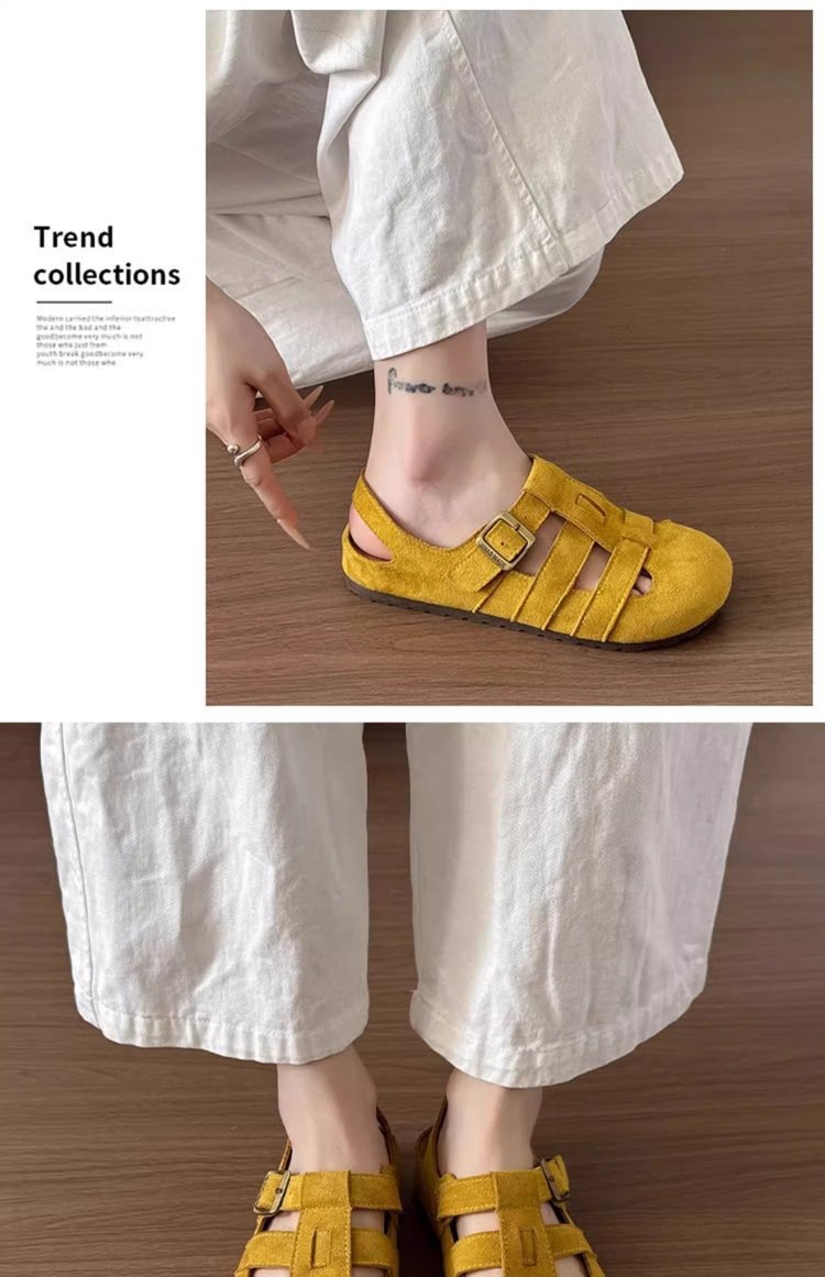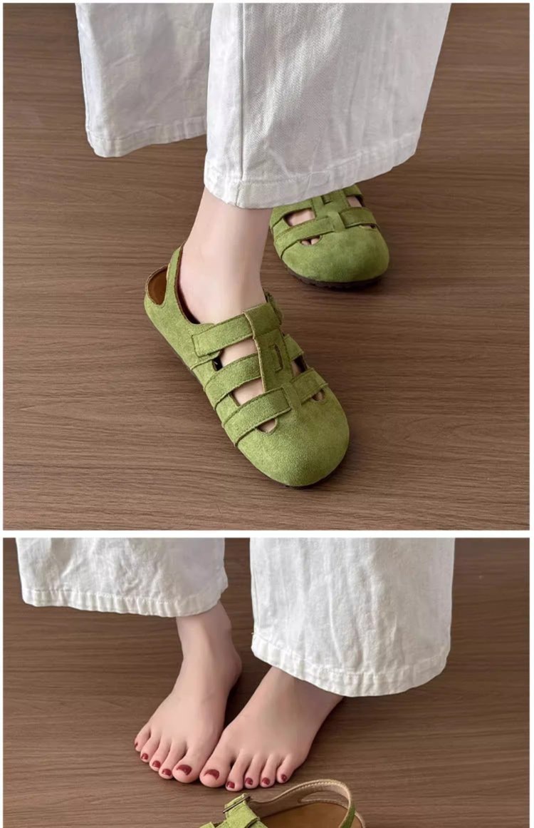 여성을위한 레트로 틈새 중공 발가락 반 슬리퍼 2025 여름 새 스타일 외부 착용 두꺼운 밑창 캐주얼 Birkenstock 신발