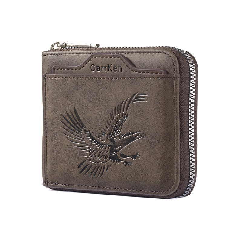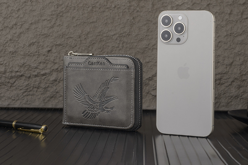 새로운 남성용 지갑, 양각 짧은 지퍼 지갑, 얇은 멀티 카드 슬롯, 대용량 가로 사진 슬롯, 부드러운 가죽 지갑