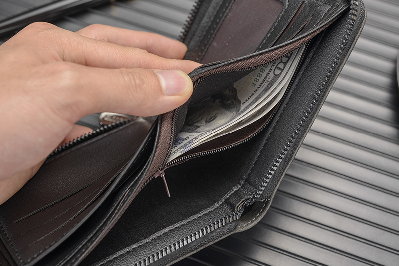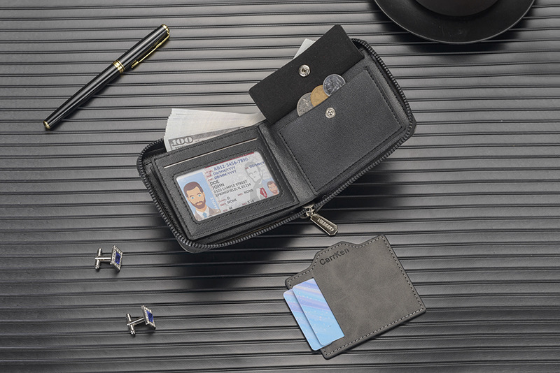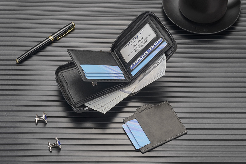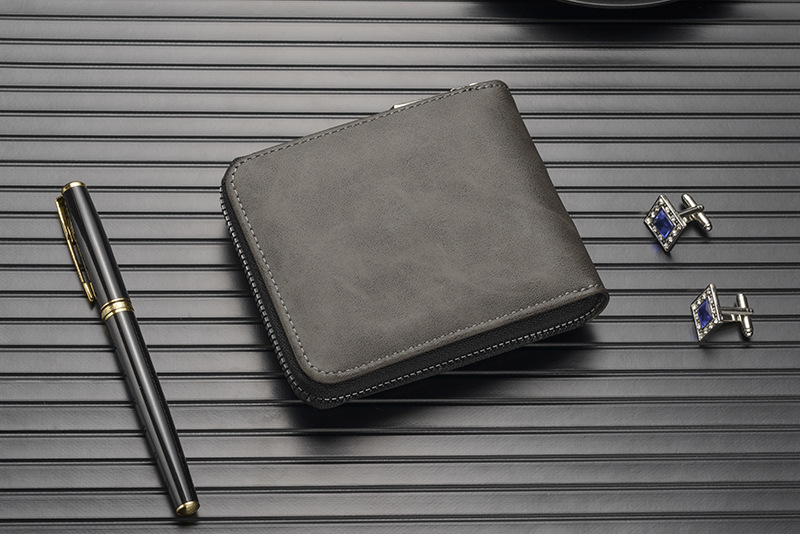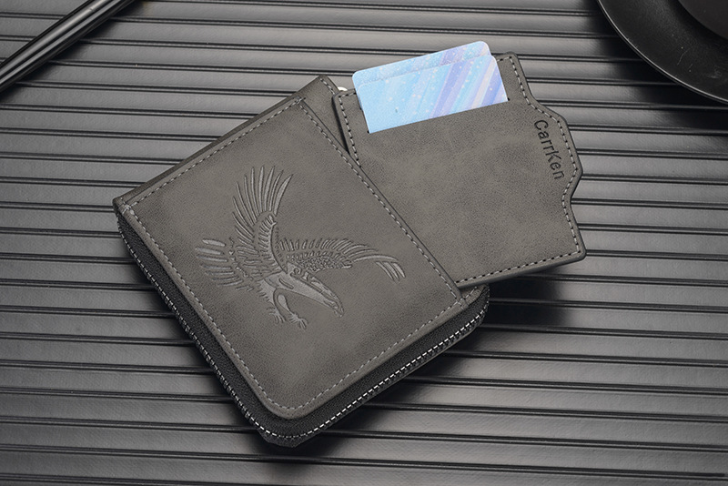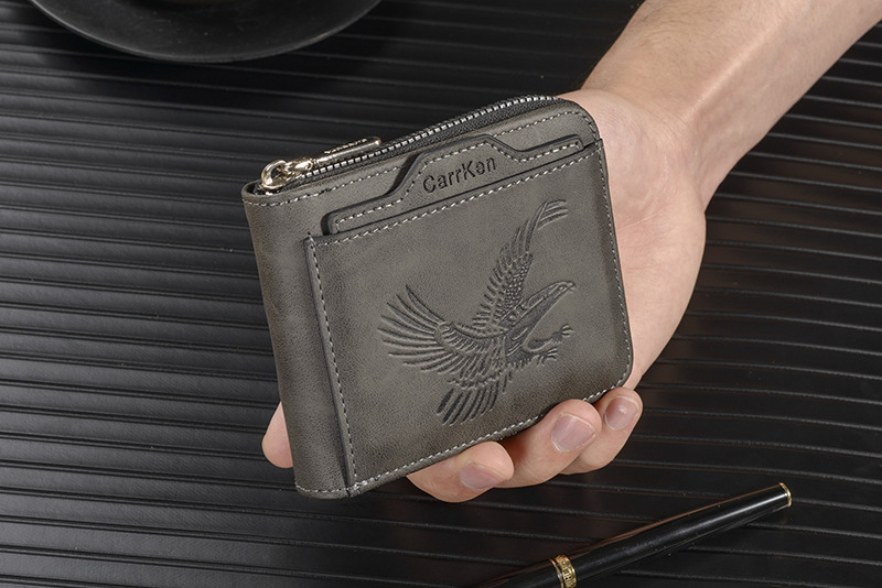새로운 남성용 지갑, 양각 짧은 지퍼 지갑, 얇은 멀티 카드 슬롯, 대용량 가로 사진 슬롯, 부드러운 가죽 지갑스토어 가기