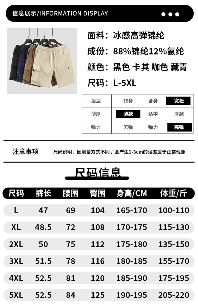 무료 배송 여름 신작 남성 일본 스포츠 및 레저 카고 반바지 패셔너블하고 다재다능한 카고 반바지 블랙 카키